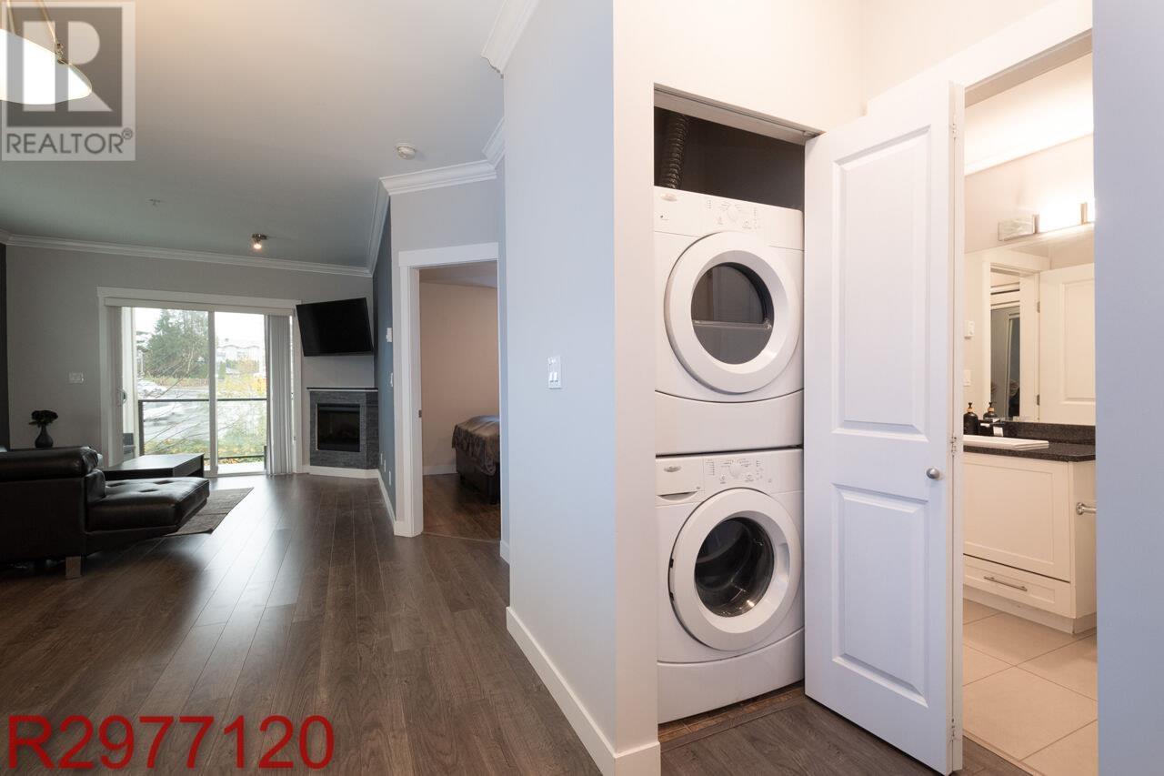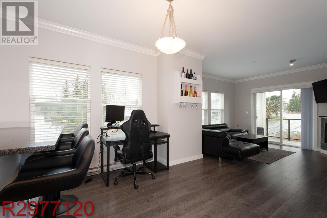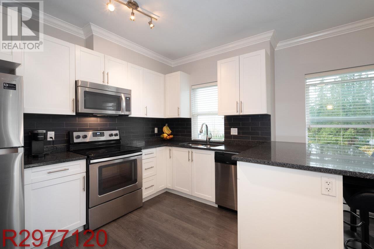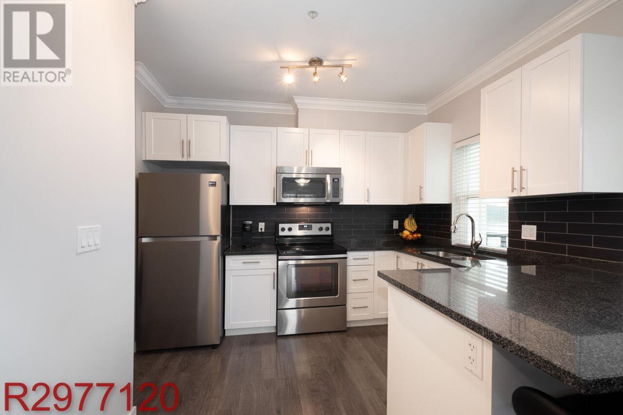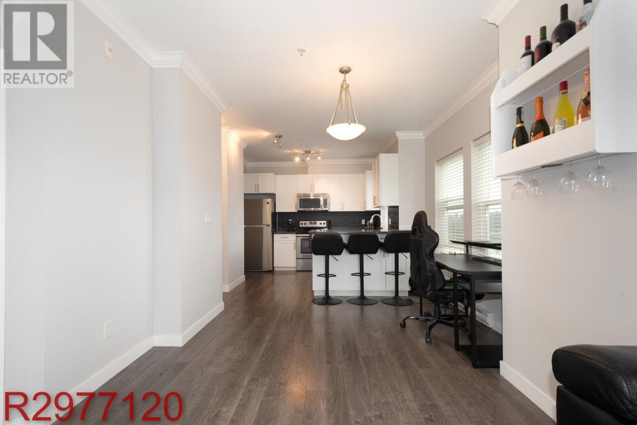 Stunning Fraser River Views in Port Haney's Boutique Waterfront Community Welcome to this bright and spacious corner unit offering nearly 700 sq. ft. of open-concept living. Large windows bathe the space in natural light, showcasing picturesque Fraser River views and breathtaking sunsets. The thoughtfully designed floor plan maximizes comfort and functionality, featuring 8'10" ceilings, sleek laminate flooring, and elegant crown molding. The stylish kitchen boasts crisp white cabinetry, dark granite countertops, and stainless-steel appliances. Enjoy the convenience of in-suite storage, plus a dedicated parking stall. Located just steps from the West Coast Express, transit, and minutes from shops, dining, parks, and recreation - this is the perfect blend of style, comfort, and convenience. (id:48970) Show More