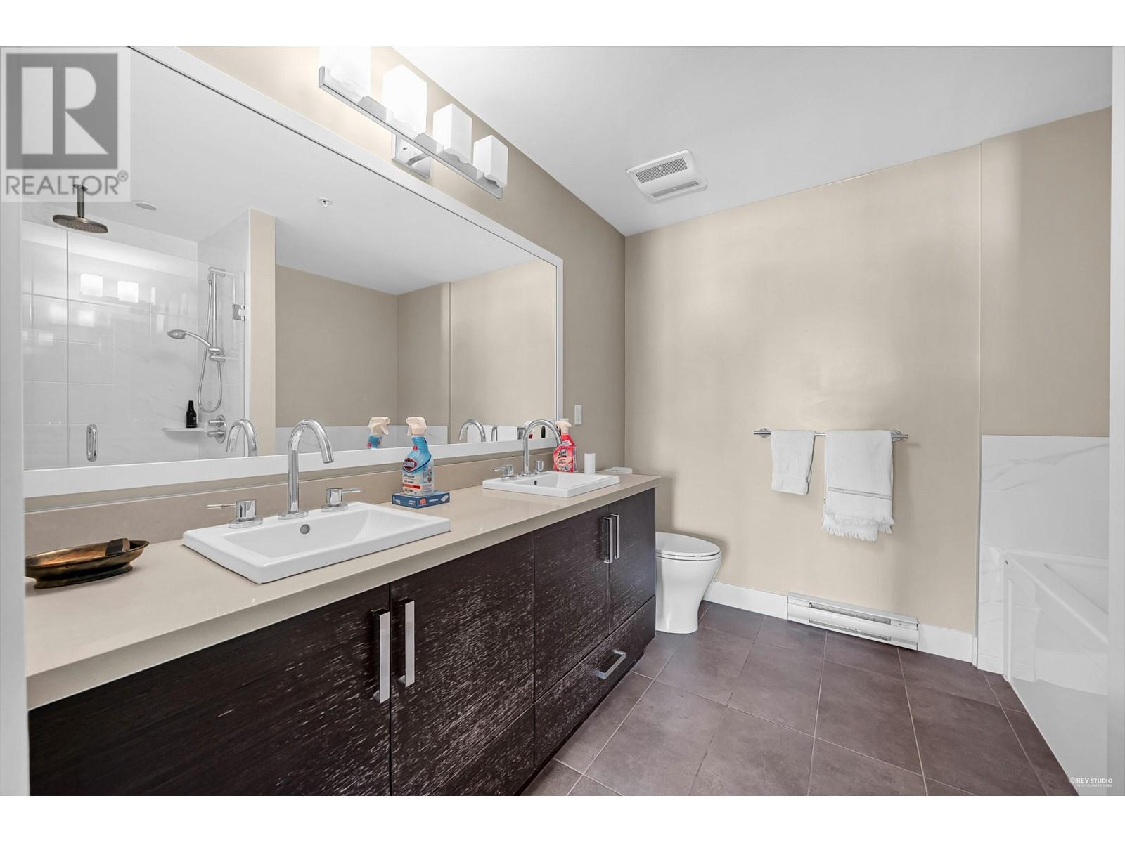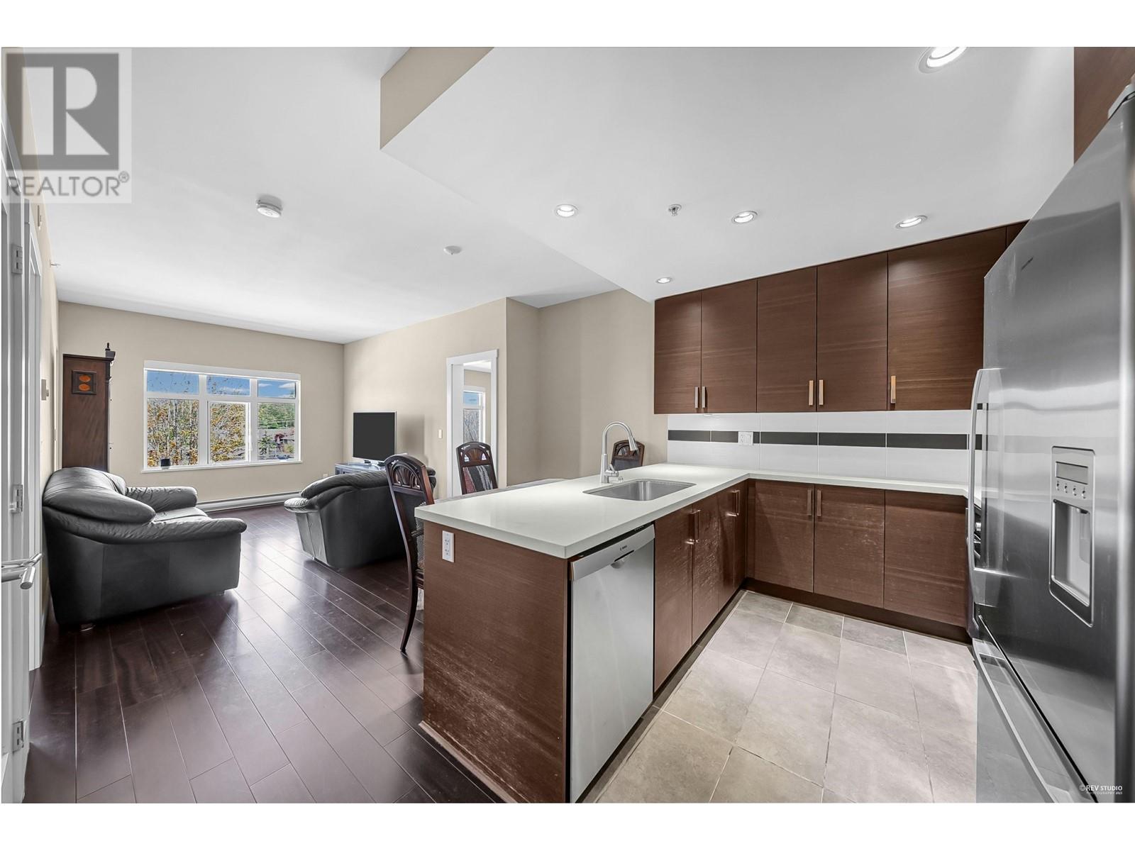 Welcome to the Altezza-this rarely offered 2-bedroom, 2-bathroom suite boasts a spacious, efficient layout with no wasted space, 9-foot ceilings, and stunning North Shore mountain views. The modern kitchen features sleek stainless steel appliances, quartz countertops, and a gas cooktop, while the spa-inspired bathroom includes a double-sink vanity and a relaxing soaker tub. Additional highlights include in-suite laundry, secure underground parking, a storage locker, and access to a large common-area terrace and party room-perfect for entertaining. Ideally located just steps from coffee shops, restaurants, public transit, the Eileen Daily Rec Centre, and more. Pet- and rental-friendly, this home includes one secured parking stall, one storage locker, and visitor parking. (id:48970) Show More