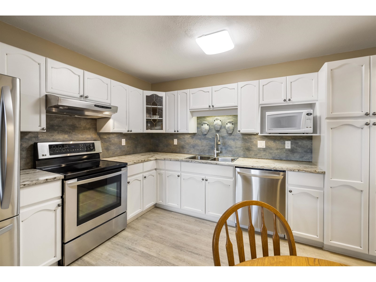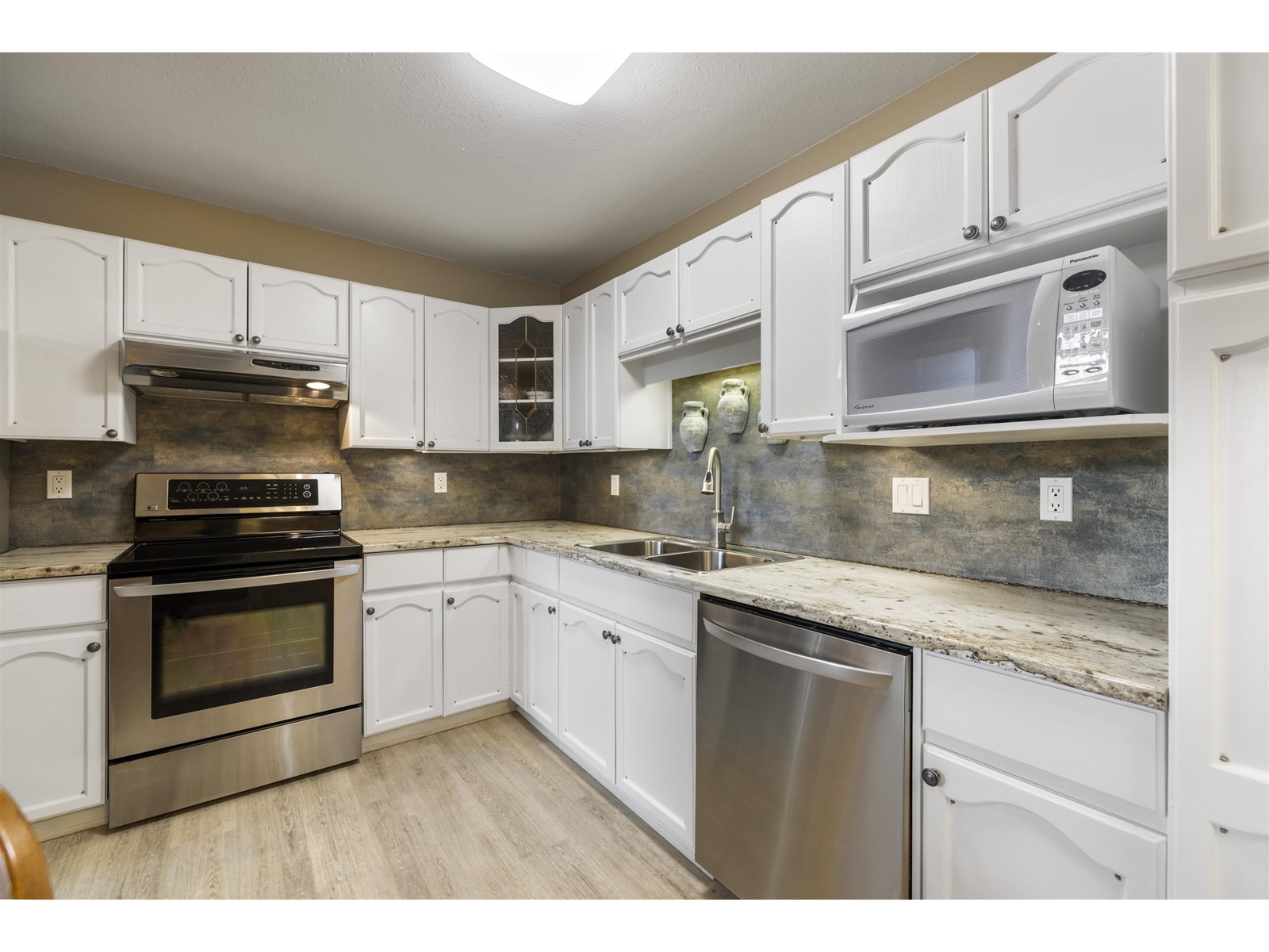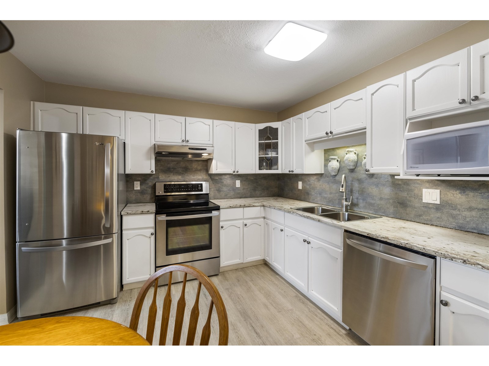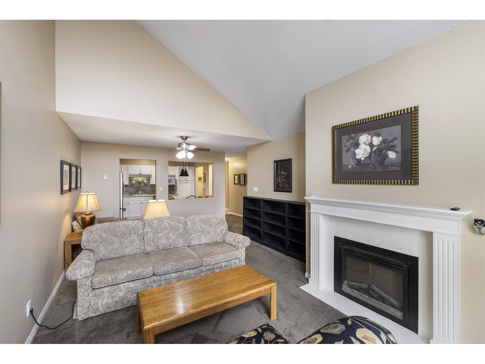 Welcome to Highgate Terrace! This bright and spacious 2 bedroom, 2 bathroom TOP FLOOR PENTHOUSE condo offers over 1,100 sq ft of well-designed living space. Soaring vaulted ceilings and large windows flood the home with natural light, creating an open and airy feel. Enjoy an fireplace in the living room and a large SOUTH facing balcony perfect for year-round use & enjoying a morning Coffee. Fantastic kitchen with stainless steel appliances & bonus eating area. The generous primary suite features a walk-through closet and full ensuite. Well-maintained complex centrally located near Willowbrook Mall, transit, and restaurants. Secured parking stall and storage locker included on same floor for ultra convenance. A quiet, secure building in a fantastic location-don't miss this opportunity! (id:48970) Show More