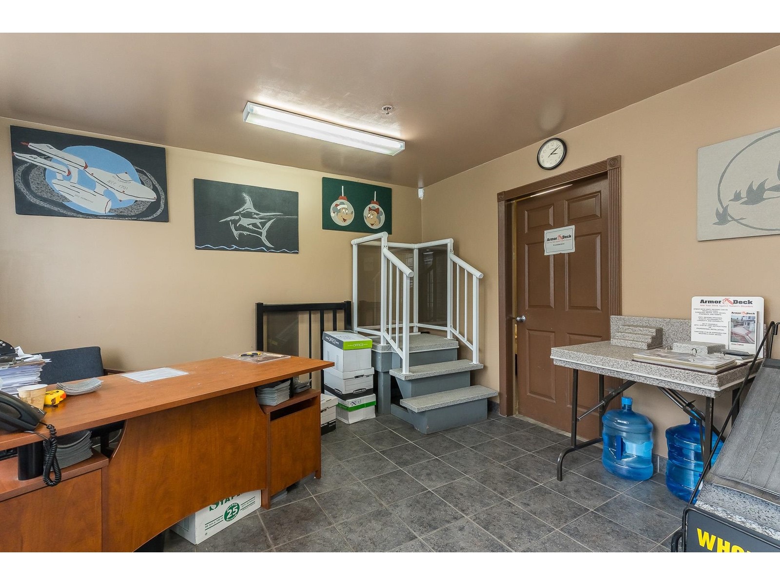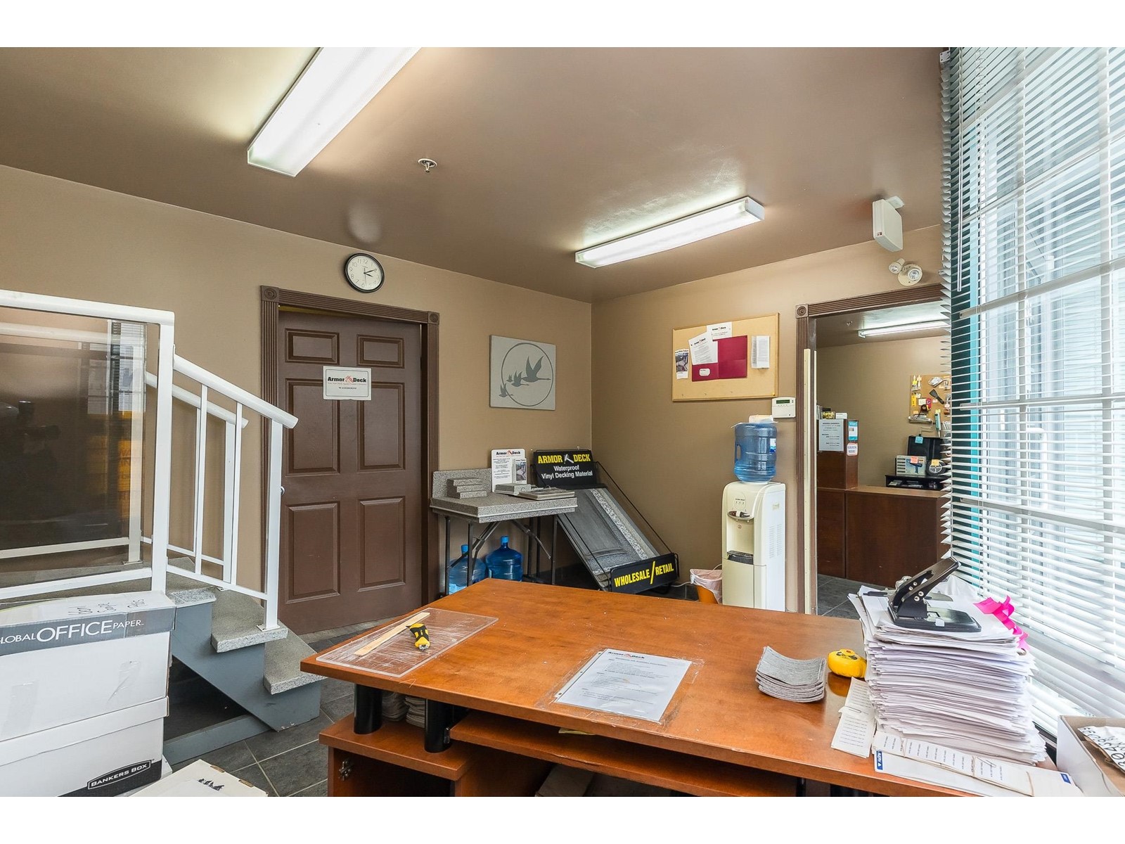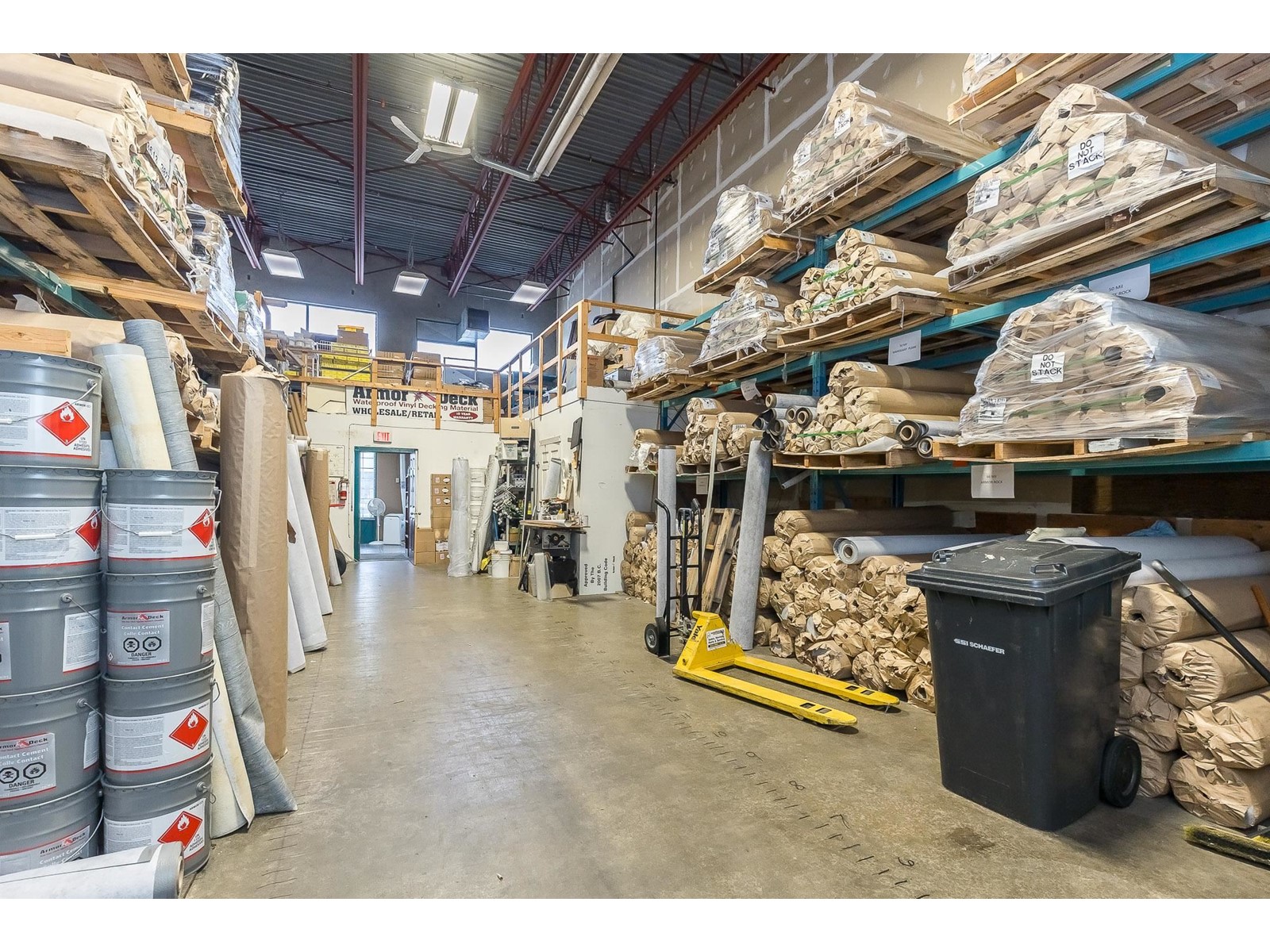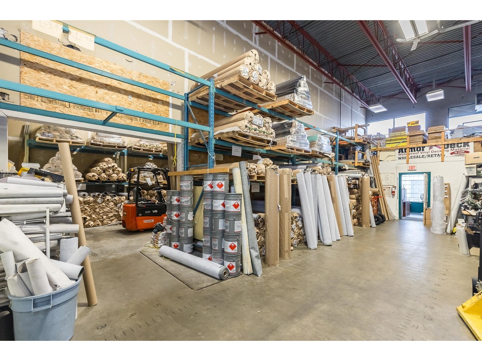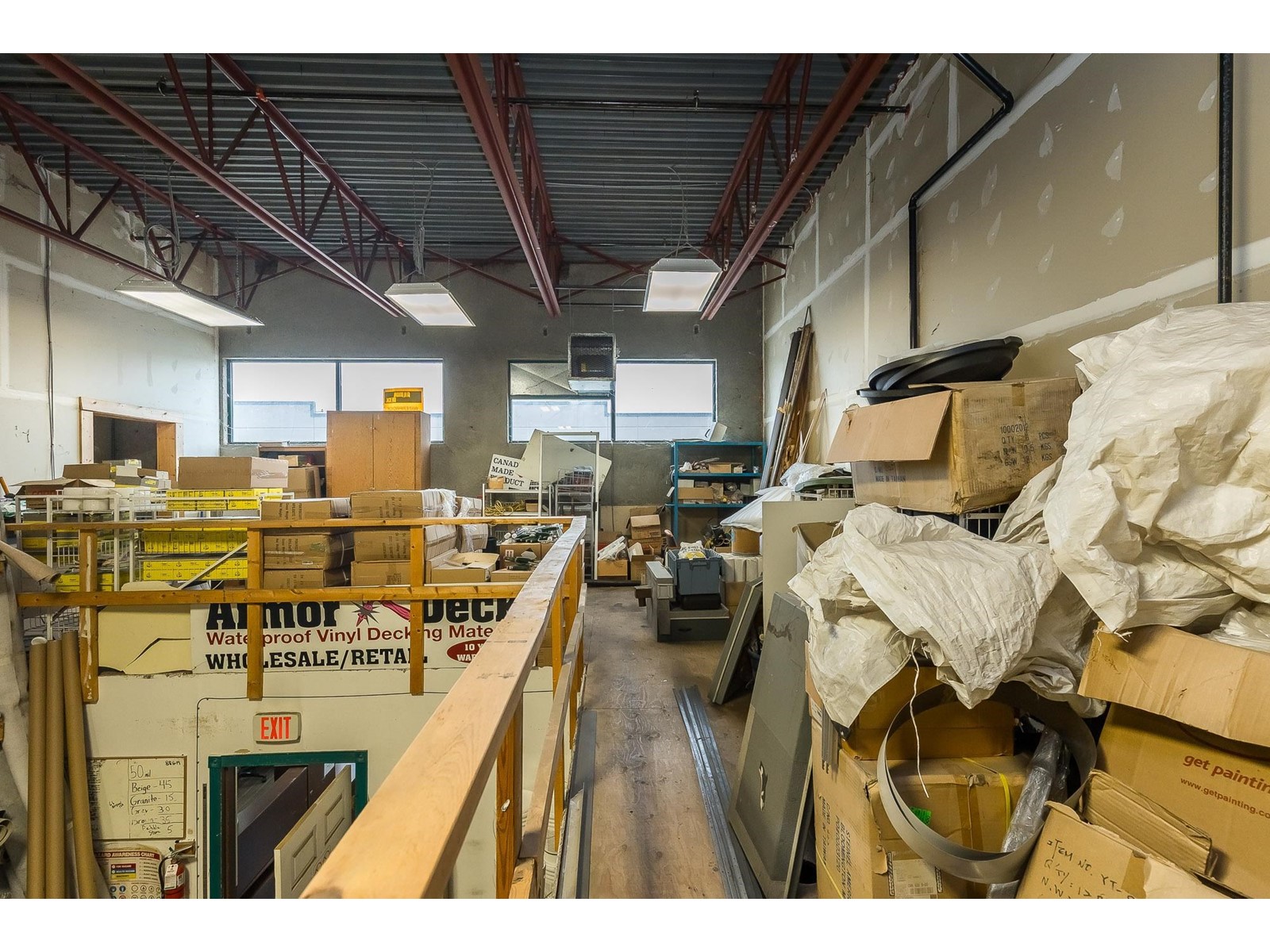 ARMOR DECK LTD. has been providing quality wholesale supply of vinyl decking supplies with the same owner and same phone number since 1993. Consistently turns a profit. Solid client list. Many opportunities to increase sales and annual income. 3 year lease rate very favourable @ $4000 per month plus triple-net. based on 3350 sqft. ($14.33 sqft + 5.46 TNET) Strata space includes: reception, showroom, office, training room, accessible washroom, warehouse with racking, and approved mezzanine storage space. Additional features include 200 amp 120/208v 3 phase power supply, 20' clear ceiling height, 2 rear 10x12 grade loading doors and 2 exclusive parking stalls (currently occupied by a 40 ft storage container...included in the sale). Front access includes 4 dedicated parking stalls. This property is centrally located in Port Kells with direct access to 192 St and is in close proximity to Golden Ears Way, Hwy 1, Hwy 15 and the SFPR. SHARE SALE. (id:48970) Show More
