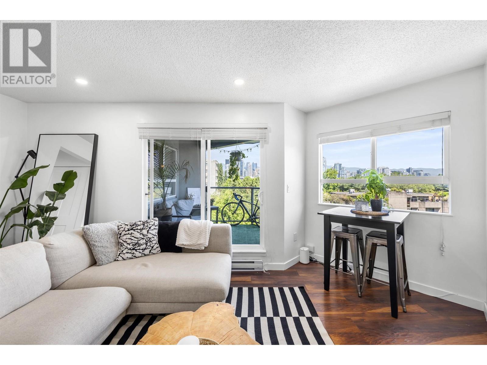 Rare freehold 1 bed/1 bath near Granville Island with stunning mountain, city & water views from every window! Spanning 647 sf, the layout is thoughtfully designed for both comfort and function. The home was fully renovated in 2018 with in-suite laundry, full sized S/S appliances & smart home thermostats just to name a few. Wake up to breathtaking sunrises over False Creek in the generously sized bedroom. Every room flows effortlessly into the next, creating a sense of calm and spaciousness. The open living area features a spacious layout, cozy wood-burning fireplace, and beautiful sunrises over False Creek. Includes 1 parking, 1 locker & bike room. Just steps to the Seawall, Kitsilano, shops, restaurants & transit. A rare find in an unbeatable location! (id:48970) Show More