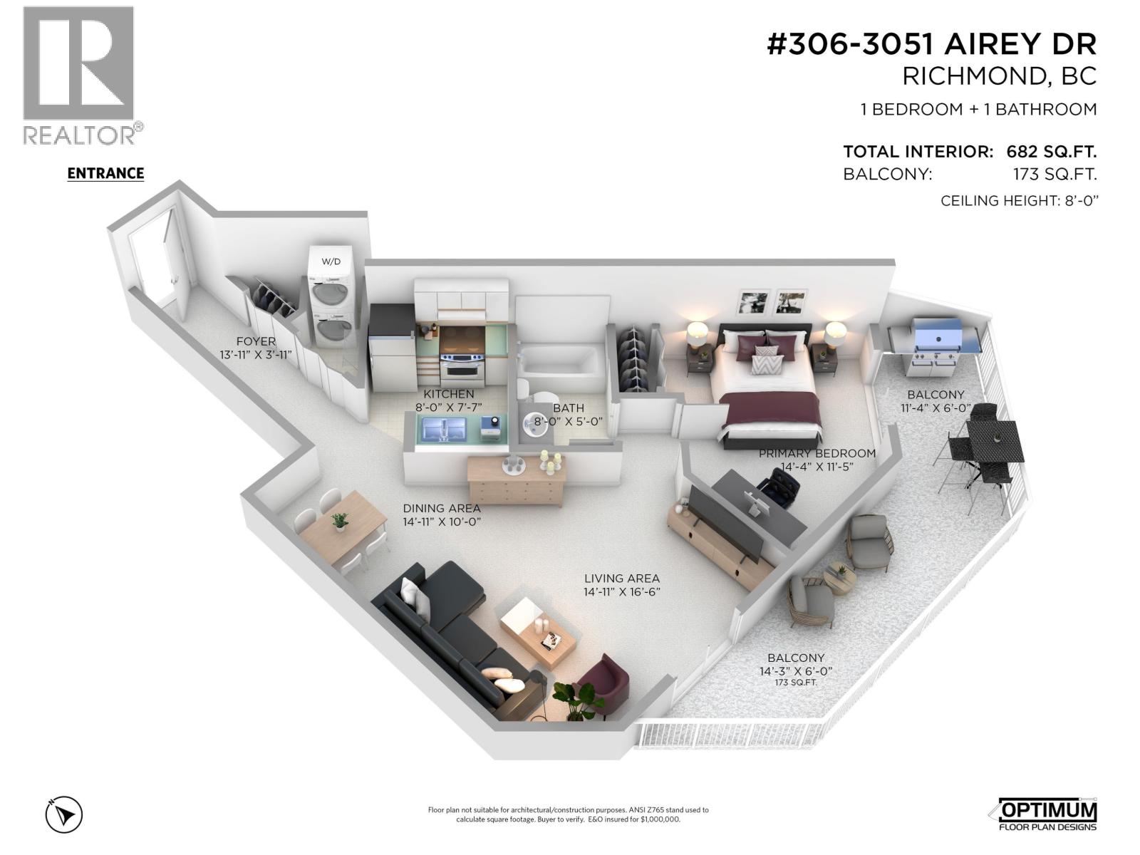 - Area 682 sq ft