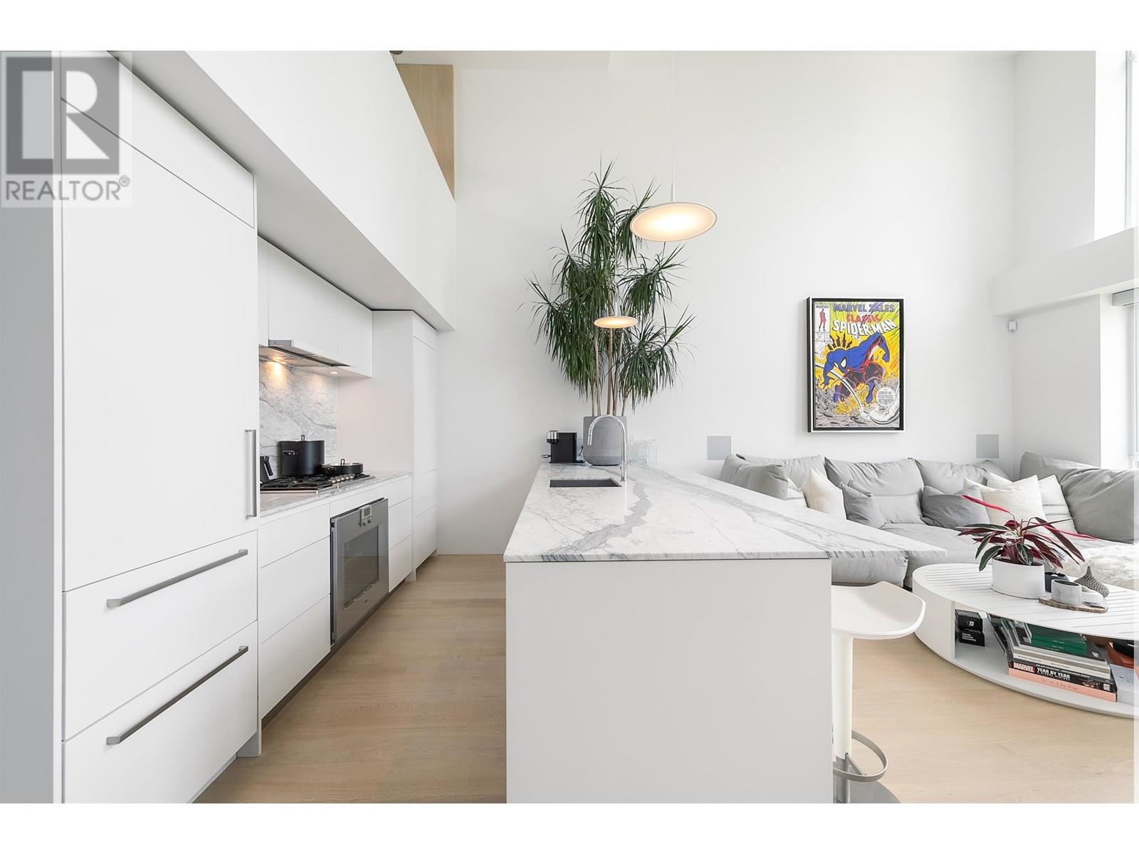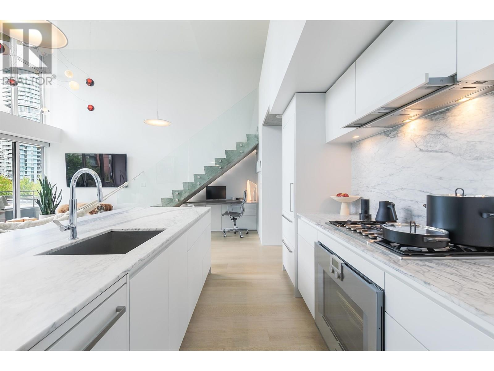 Stunning show-home LOFT in Yaletown's Waterfront District! Tons of natural light coming into this South facing, two level, 1 bedroom + den, 2 bathroom loft with 2 decks and 2 parking spaces! Completely renovated, top to bottom, featuring Wide white oak hardwood floors, Sub zero fridge, Gaggenau gas stove and oven, Thermador dishwasher, Marvel wine fridge, Custom kitchen cabinets with Blum s/s drawers, Honed Carrera marble counters and window sills, Bocci flush electrical plugs, Wood core oak doors, Built-in surround sound system with 3 Sonance invisible speakers & Electric hardwired roller blinds. No expense spared here! Fantastic building with incredible amenities, including bowling alley, pool/tub, steam room, theatre, etc. Just a few steps to the seawall from your door. Don't miss out! (id:48970) Show More