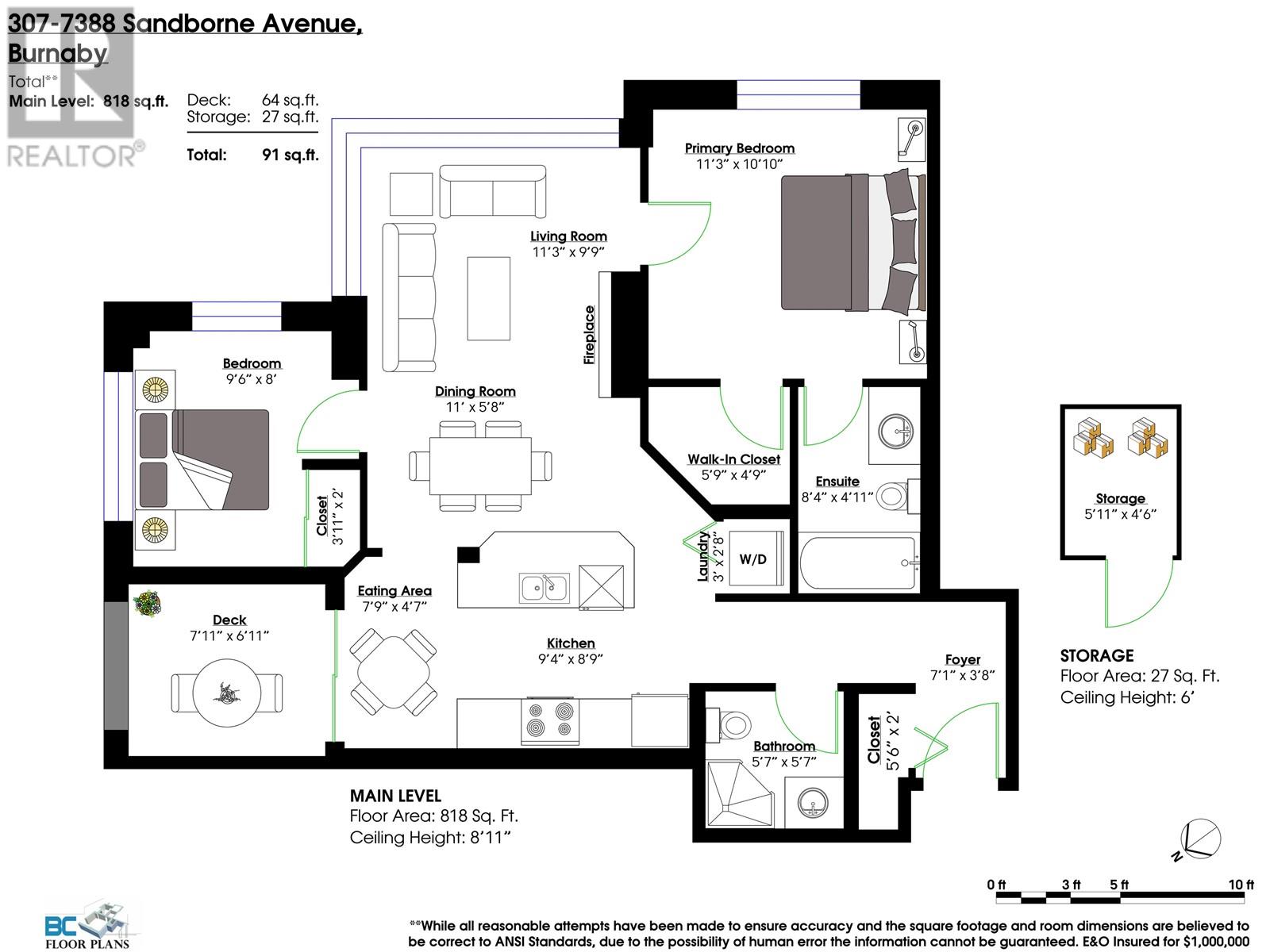 - Area 818 sq ft