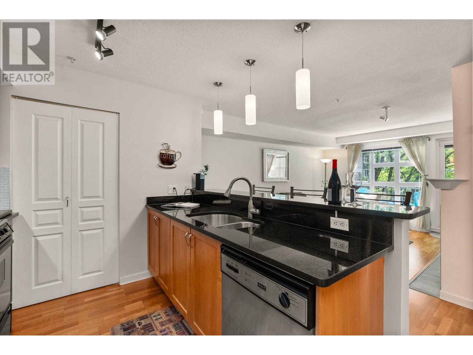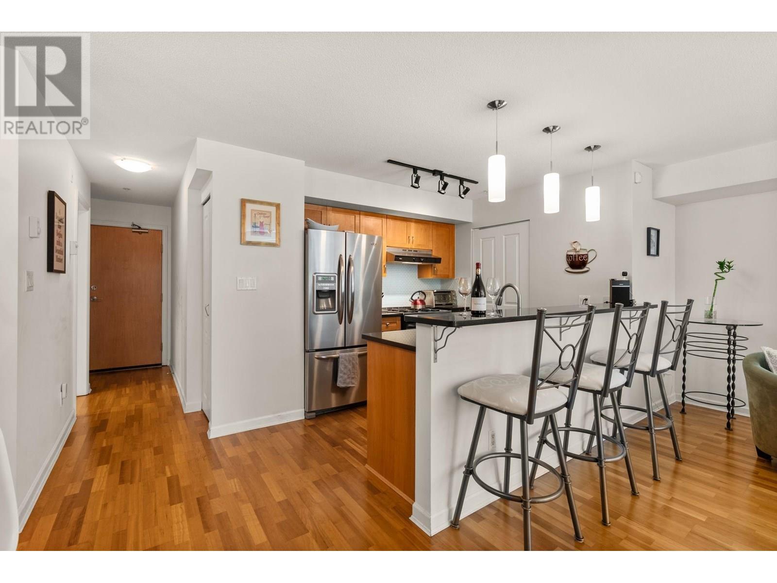 The Carlings in the heart of Kitsilano, a sought-after location in Arbutus Walk. Stay cool in summer with full air conditioning. A spacious and bright 1 bedroom, 1 bath home with a cozy fireplace and sunny south-facing balcony on a tree-lined street. Huge bedroom, large walk-in closet, tasteful kitchen updates, and a Murphy bed for visitors. Enjoy the convenience of the new Broadway subway station opening in a couple of years just blocks away, and steps from all the best amenities, Broadway and West 4th shops, parks, and the Arbutus Greenway. Well-maintained building, a fully rain-screened, re-piped, and new roof. 1 parking and huge storage locker included. Open House Sunday, July 13, 1-3pm. (id:48970) Show More