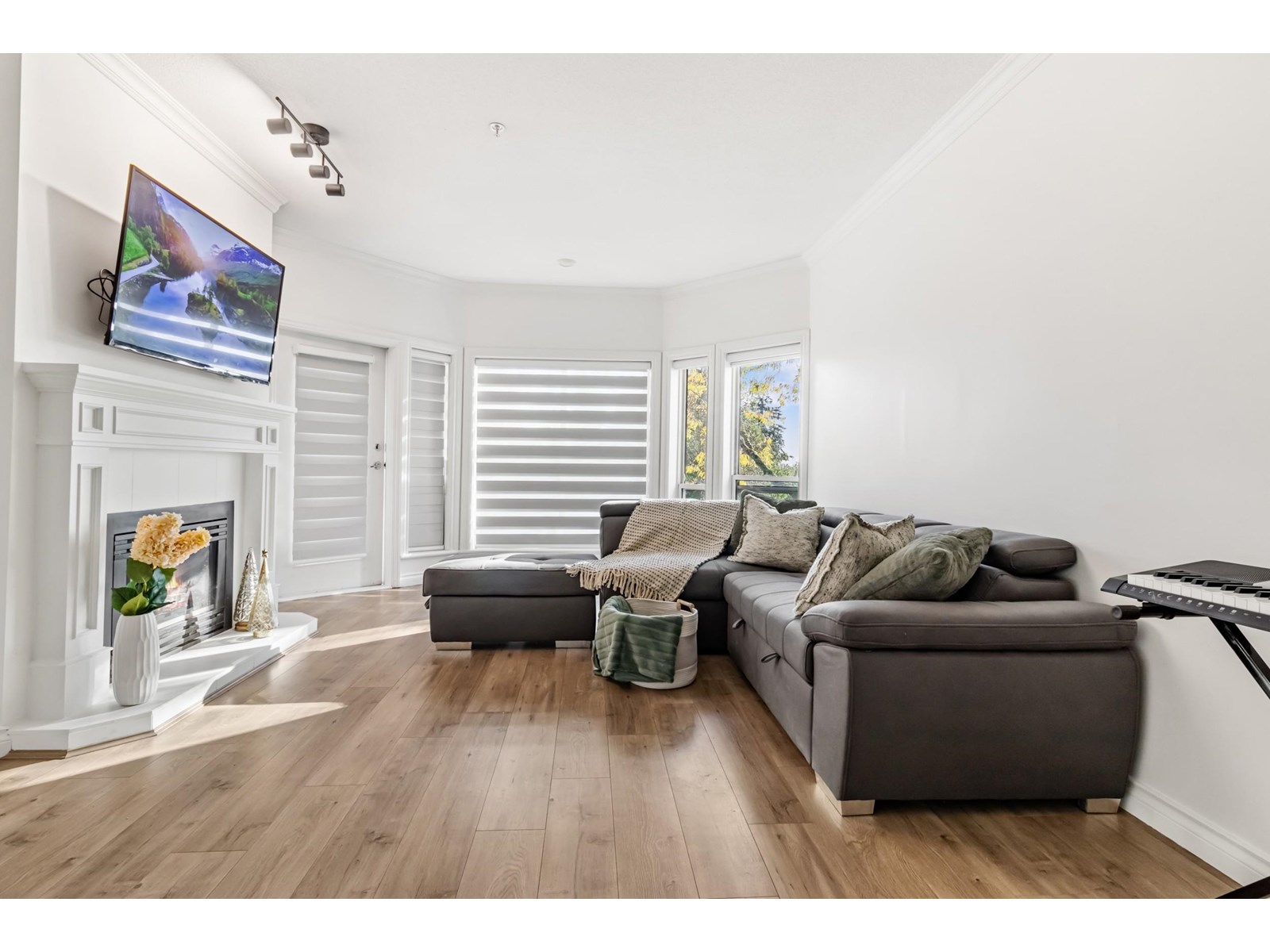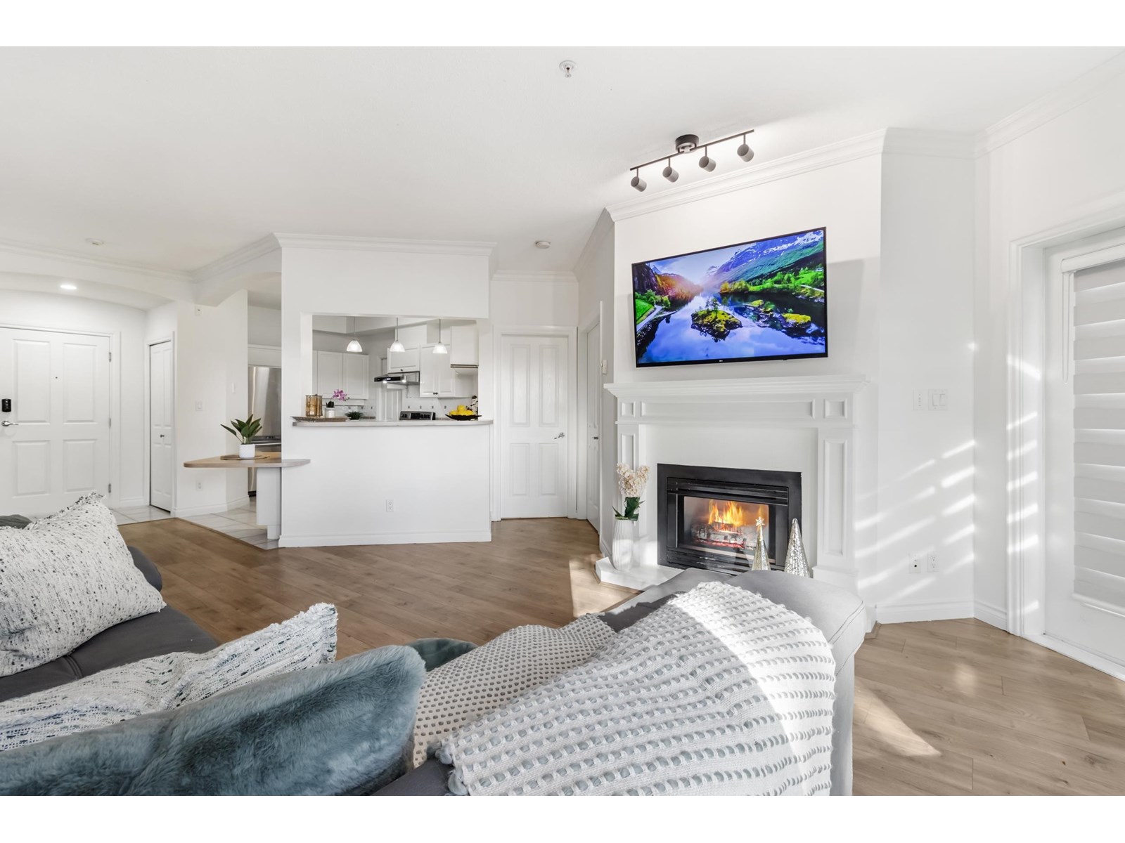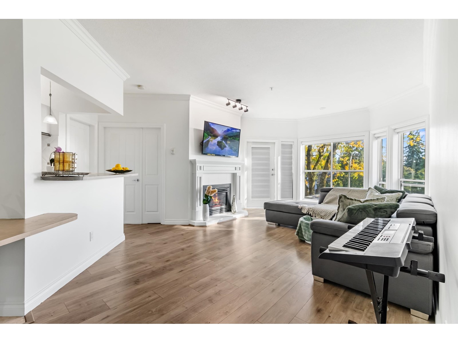 Welcome to bright cozy family home featuring 2 bedrooms & 2 baths with enormous window, 9' ceilings & crown moulding. Both bedrooms on opposite side of unit which showcase great floorplan. Cold winters you get Gas Fireplace (gas & hot water included in strata). Wonderful covered patio to enjoy tea and coffee. "Yale Terrace" is Good building with lots of updates done in past years. Unit is right off the elevator. Bonus 2 Underground parking spots, one storage locker & Pets welcome (dogs & cats with restrictions).Unit has some upgrades New flooring, New appliances, window covering, Paint & some light fixtures. Central location for shopping/ restaurants in Abbotsford downtown and easy access to Highway. Lets do deal together, Make it your home. (id:48970) Show More