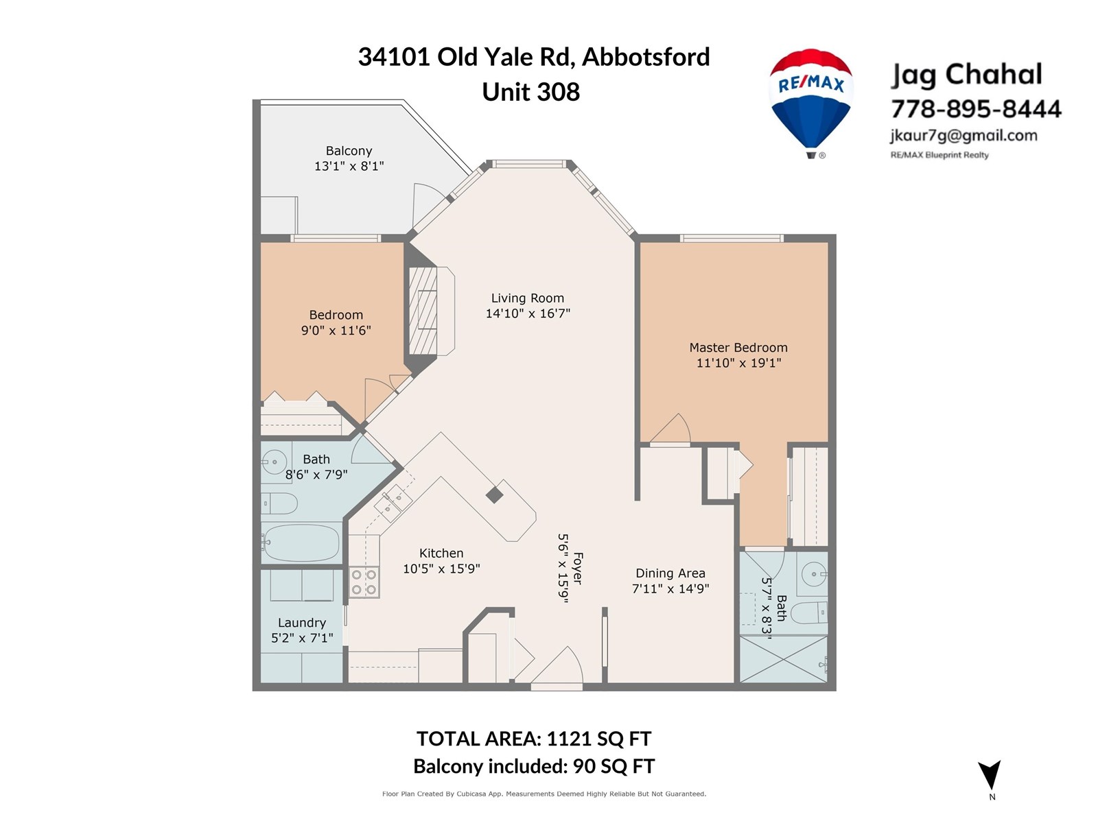- Area 1121 sq ft