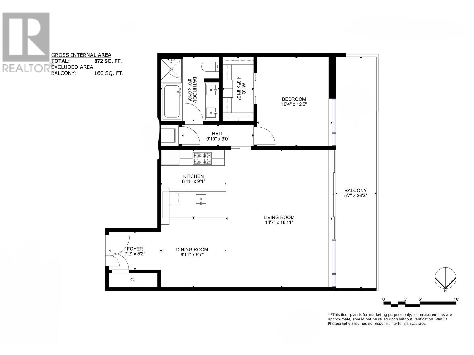 - Area 869 sq ft