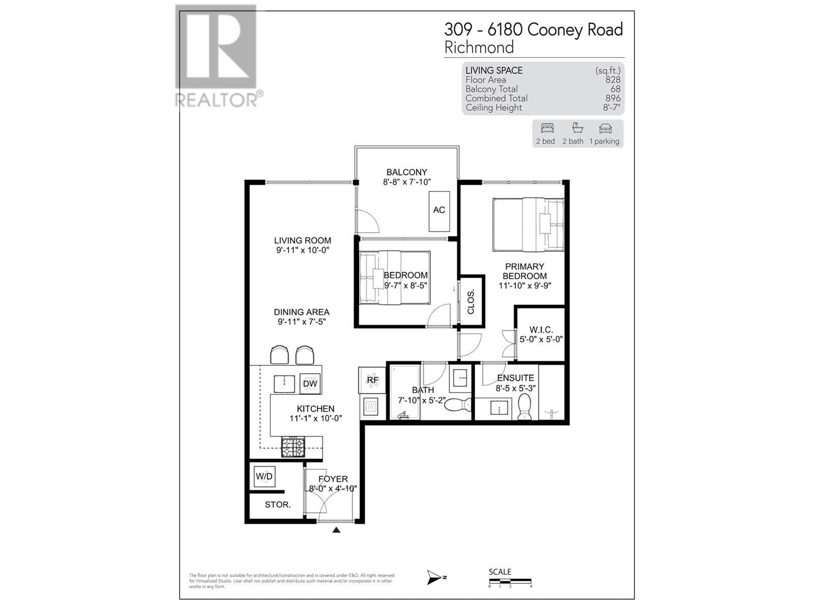 - Area 828 sq ft