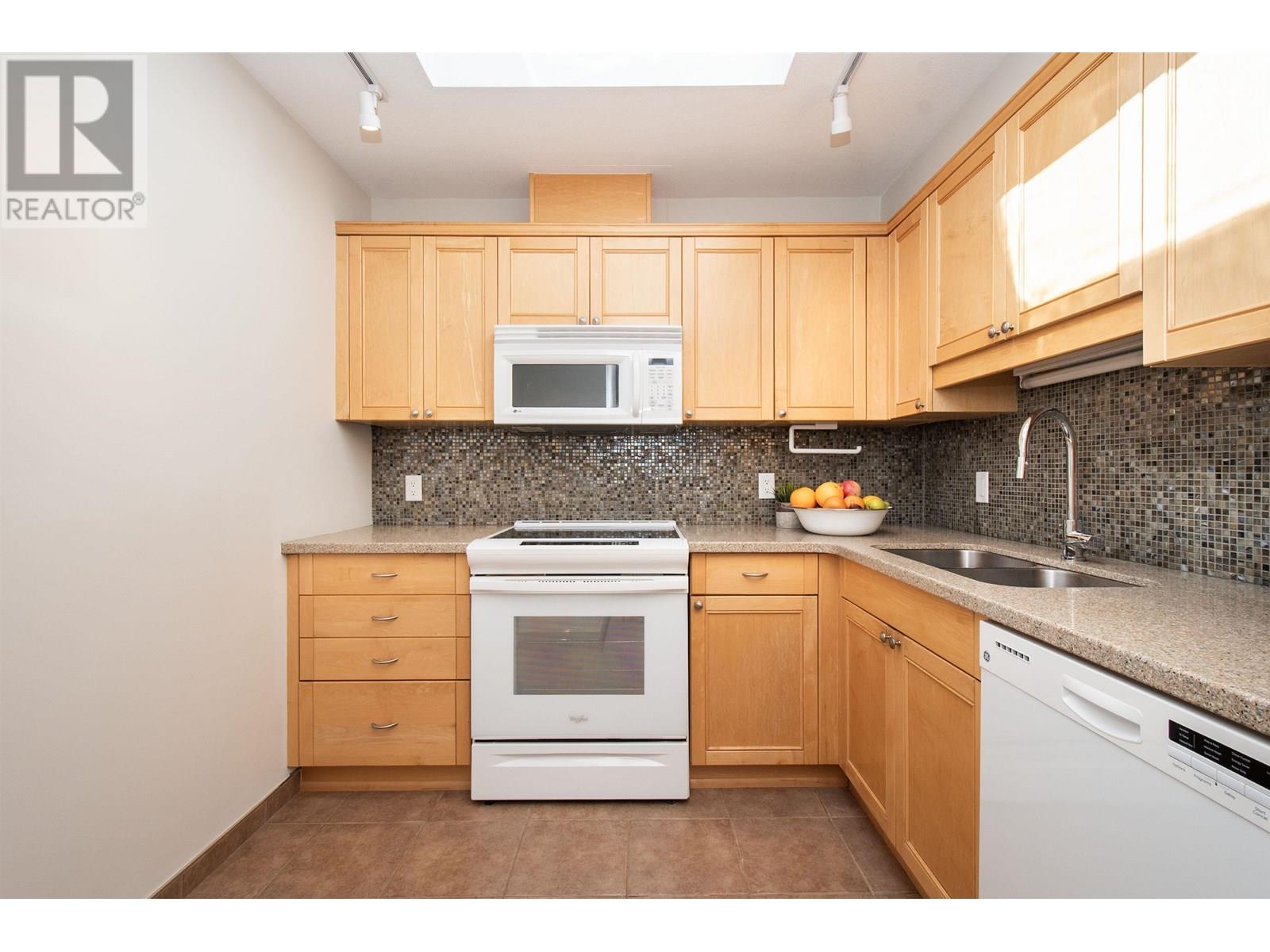 Prominently placed in Tudor Gardens, an exclusive 55+ community, this sophisticated 2-bedroom penthouse offers airy vaulted ceilings, opening skylights, and a private balcony to enjoy ocean-kissed breezes. Bathed in natural light, it also features a cozy gas fireplace that creates a warm, inviting ambiance. Renovated kitchen and house sized living space is designed for comfort and quiet luxury. Located just 1.5 blocks from the iconic West Vancouver Seawall, 4 blocks to the charming shops and cafés of Dundarave Village, and directly across from the West Van Rec Centre-this is a rare opportunity to enjoy refined coastal living in WV's most walkable enclaves. Bonus features include a massive, secure private storage room and easy access parking. Stunning common areas and courtyards! (id:48970) Show More