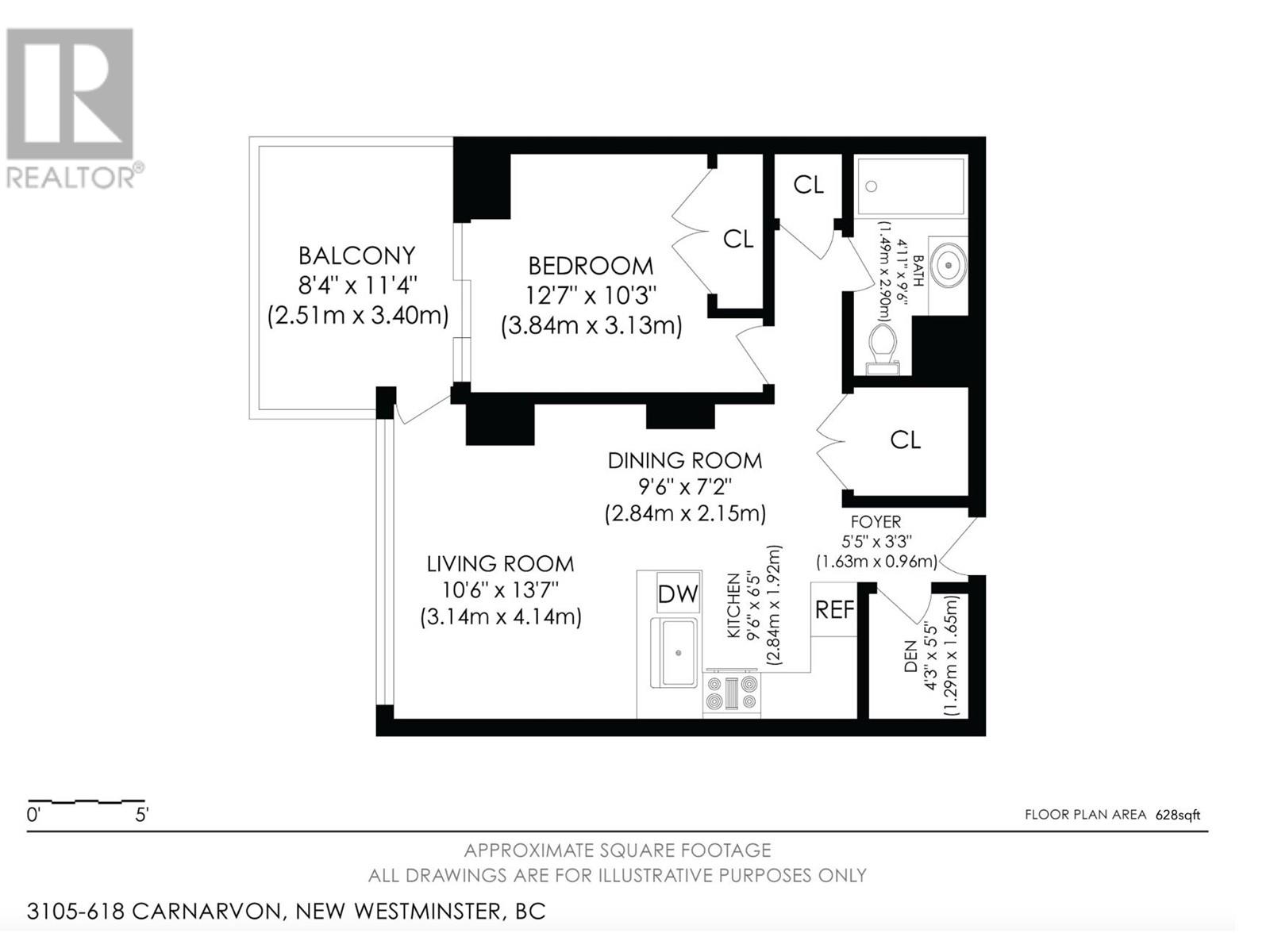 - Area 628 sq ft