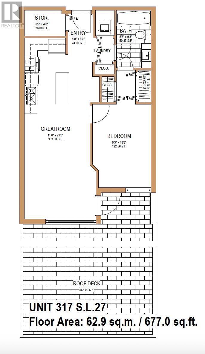 - Area 677 sq ft