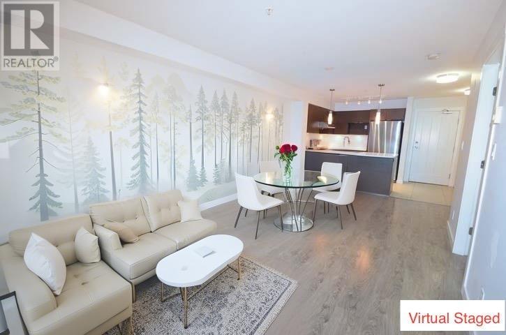 "Magnolia" at the beautiful "Gardens" by renowned Townline! 747sf, 2-bedroom / 1-bath shows like new, inside-facing unit. Efficient layout with no wasted space. Sunny 12´ x 5´ south-facing balcony with quiet courtyard view. Spacious 18´ x 11´ living/dining area. Open kitchen: peninsula quartz counter for max prep space (serves as 3-seat eating bar as well) + stainless steel 5-burner gas range, fridge & dishwasher. High-end laminate floor in living/dining & tiled kitchen/bath/foyer. Equipped gym, indoor sports court & outdoor patio. Walk to shopping & restaurants at Ironwood Plaza. Minutes to SilverCity cinemas, Watermania & Richmond Ice Centre. Fresh paint & shows like new. A must see! Pets friendly (dogs: max 60cm/23.6" tall @ shoulders & no "vicious" breeds). No smoking/vaping building. (id:48970) Show More