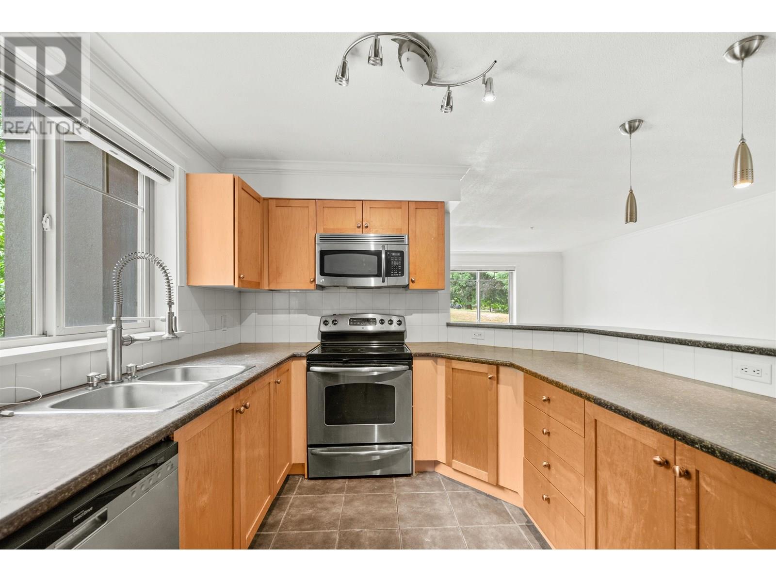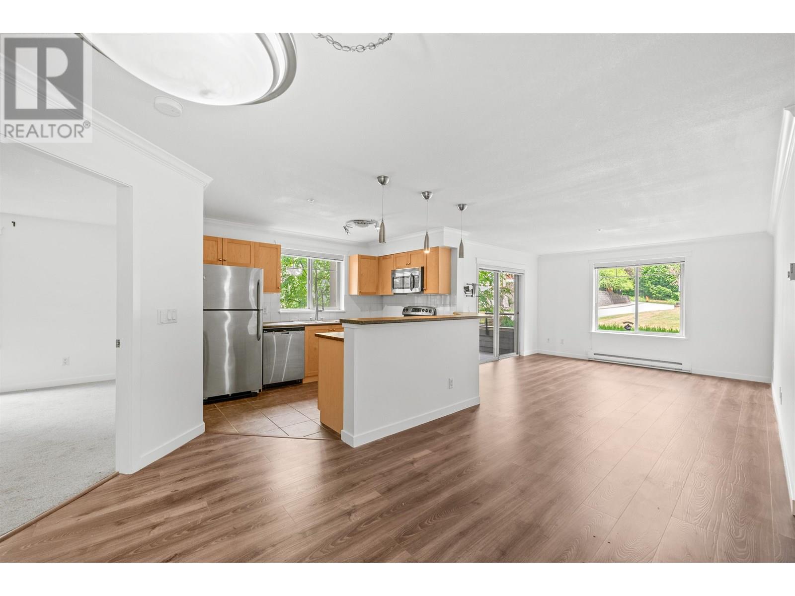 Fantastic 2 Bed, 2 Bath, 1043 sf, Corner Unit with large covered balcony overlooking greenspace at the Copperstone in Sapperton! Features incl: laminate flooring, crown moldings, new paint, new carpet, spacious kitchen with Stainless Steel appliances, in-suite laundry. Enjoy the afternoon sun on the private covered 9'x12' balcony. Built in 2008, spacious living area & open floor plan. Faces NW onto the quiet treed courtyard with a glimpse of snow-capped mountains. Walk to Hume & Sapperton Parks, shops on Columbia Street, Save-on-Foods, Starbucks, restaurants, cafes & more. Quick freeway access & only a 3 minute walk to the Sapperton Skytrain. Built in 2008, 2 parking & 1 locker!! Pets & Rentals welcome. (id:48970) Show More