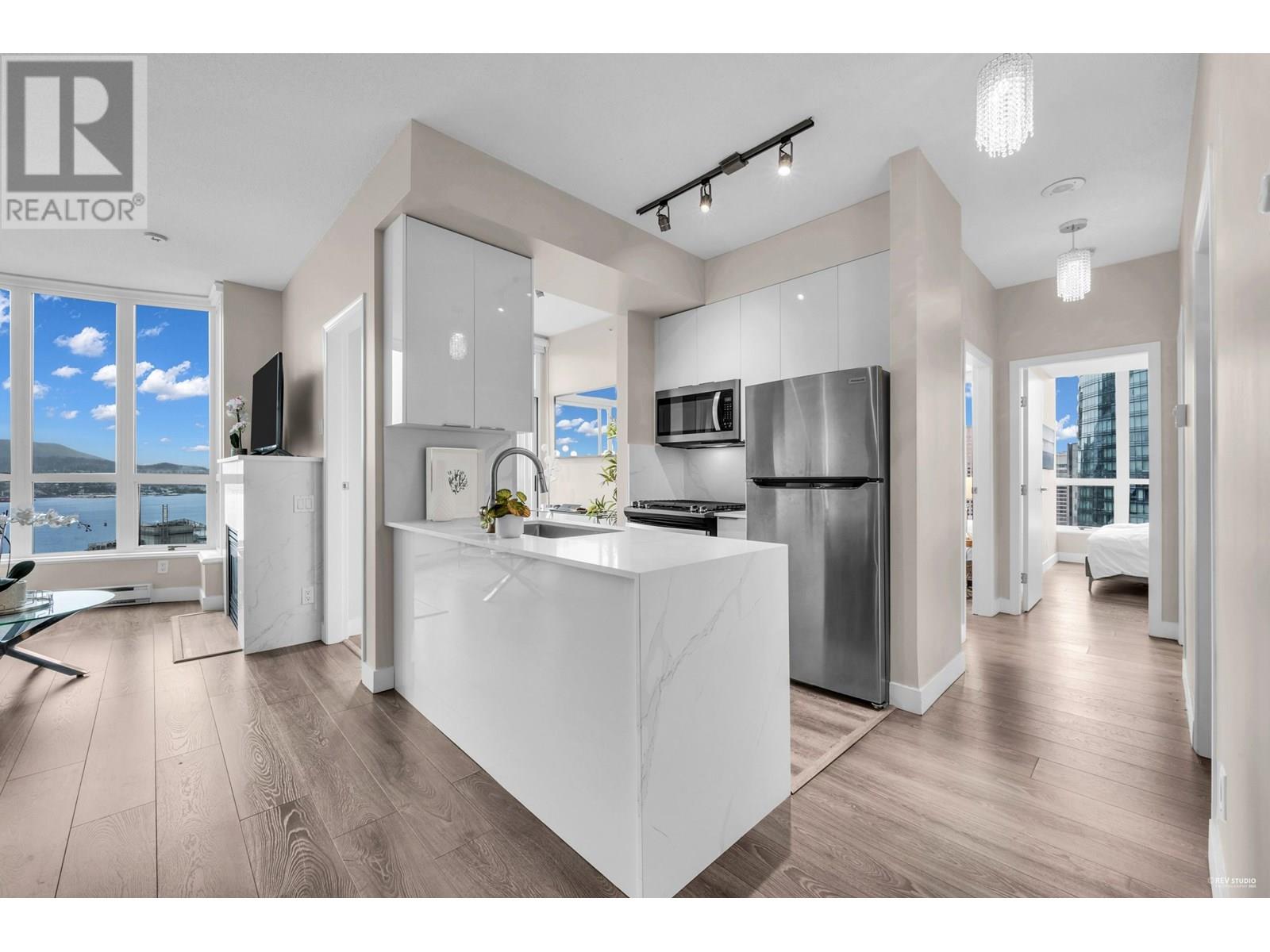 Perched on the 32nd floor of Venus in Coal Harbour, this renovated 2 bed + den + solarium home offers unobstructed views of the ocean, city, and North Shore mountains. Featuring 9' ceilings, floor-to-ceiling windows, modern flooring, updated bathroom, new light fixtures, newer paint, newer laundry set, and a gourmet kitchen w/quartz counters & s/s appliances. The well-designed layout and abundance of natural light make the space feel significantly larger. Gas for the fireplace/stove is included in the strata fees. Enjoy 24-hour concierge and great amenities: indoor lap pool, hot tub, sauna, gym, party room, guest suites, and visitor parking. 1 parking & 1 locker. Steps to seawall, Stanley Park &SkyTrain. Open House July 12 Saturday 3:30-5:00 PM (id:48970) Show More