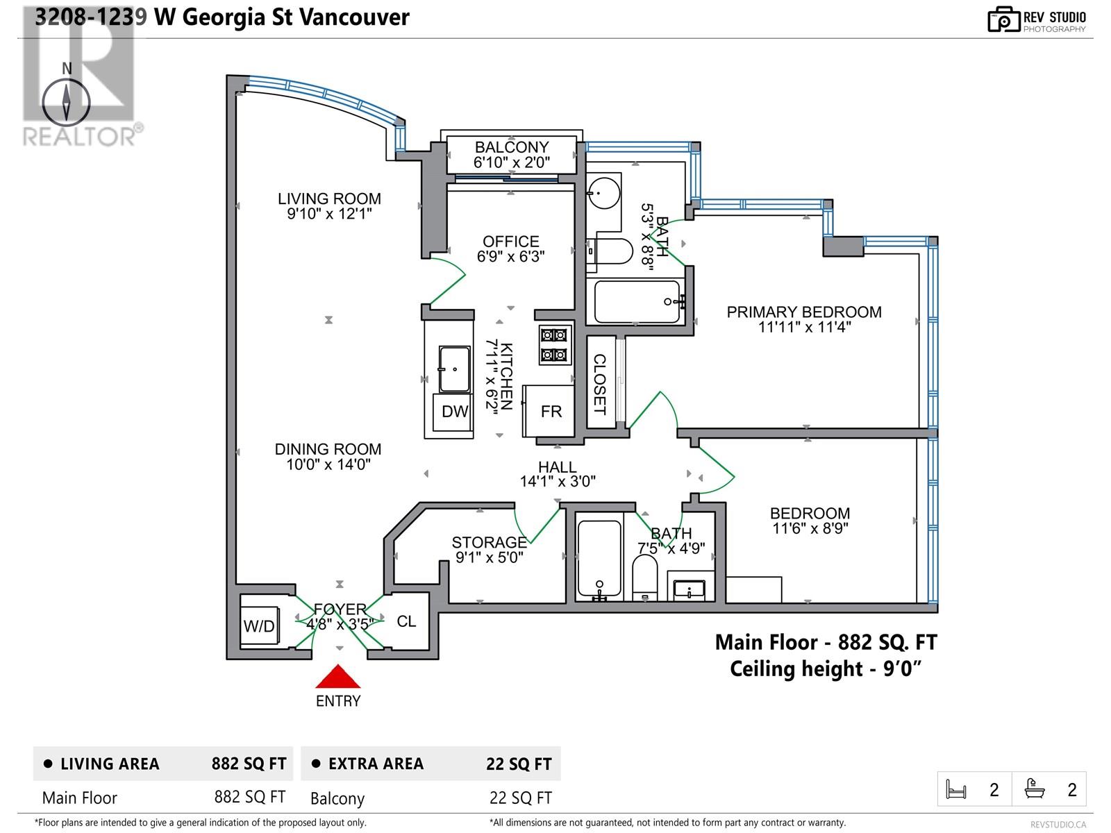 - Area 882 sq ft