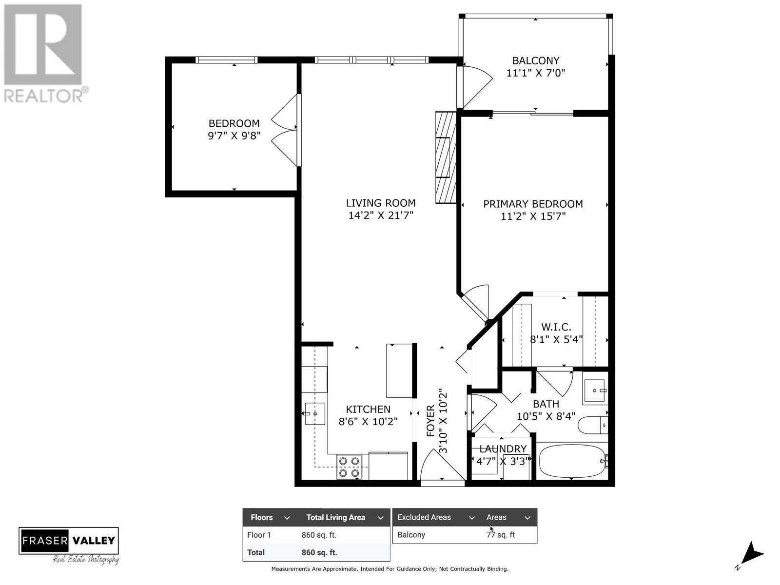 - Area 860 sq ft