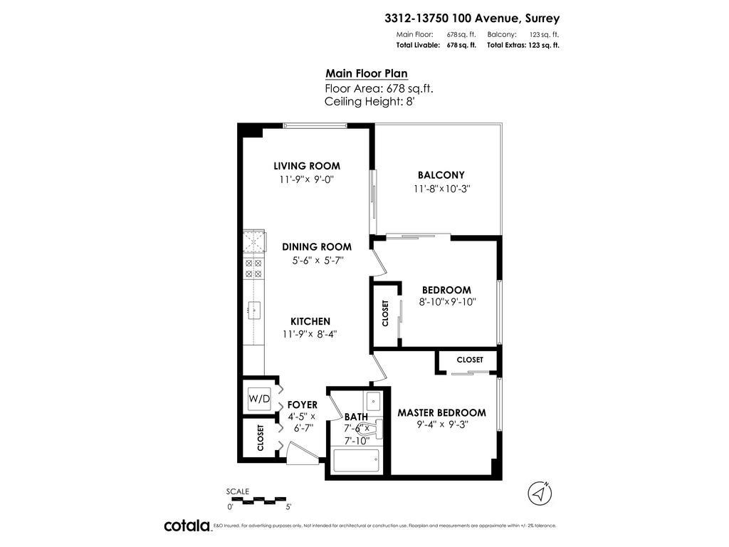 - Area 678 sq ft
