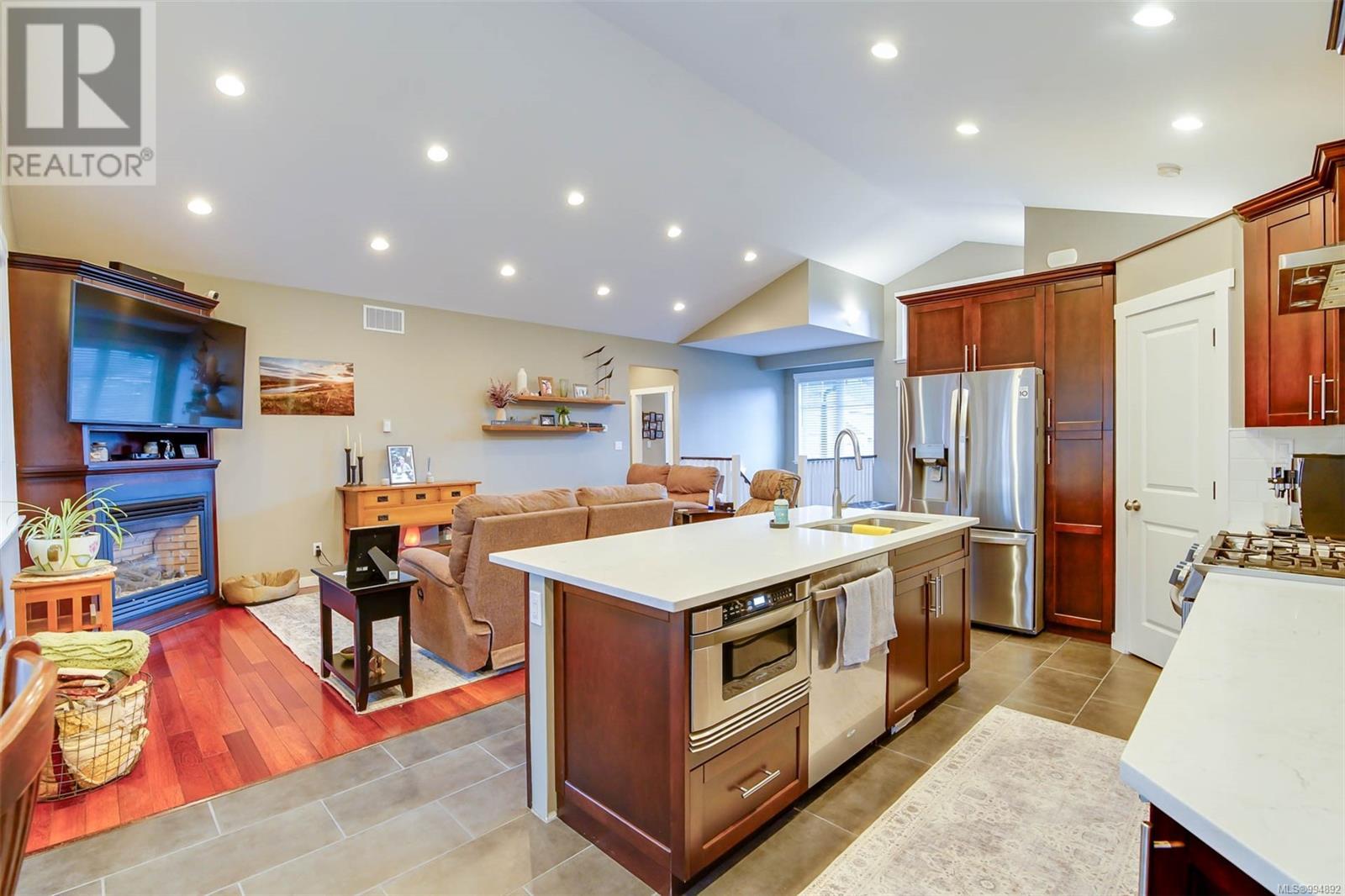 3000+ Sqft Home in UPLANDS, With an open-concept floor plan, a vaulted great room, hardwood floors, & a cozy corner gas fireplace. The kitchen is equipped with stainless steel appliances, Granite tops, a pantry, & an adjoining dining area—perfect for both everyday living & entertaining. The primary bdrm offers a walk-in closet & a beautifully appointed ensuite with a luxurious soaker tub & a separate tiled shower. On the opposite side of the main floor, you'll find two additional bdrms, a full bathroom, & a convenient laundry room located just off the entrance. The walk-out basement is a blank canvas ready for your ideas, with one fully finished bathroom already in place. There is excellent potential to add a 2- or 3-bdrm suite with the installation of window wells. Additional highlights include a heat pump, Hardie plank siding, fenced yard, double garage, & hardwood floors throughout. This charming home backs onto a peaceful greenbelt, offering both privacy & a scenic backdrop. (id:48970) Show More