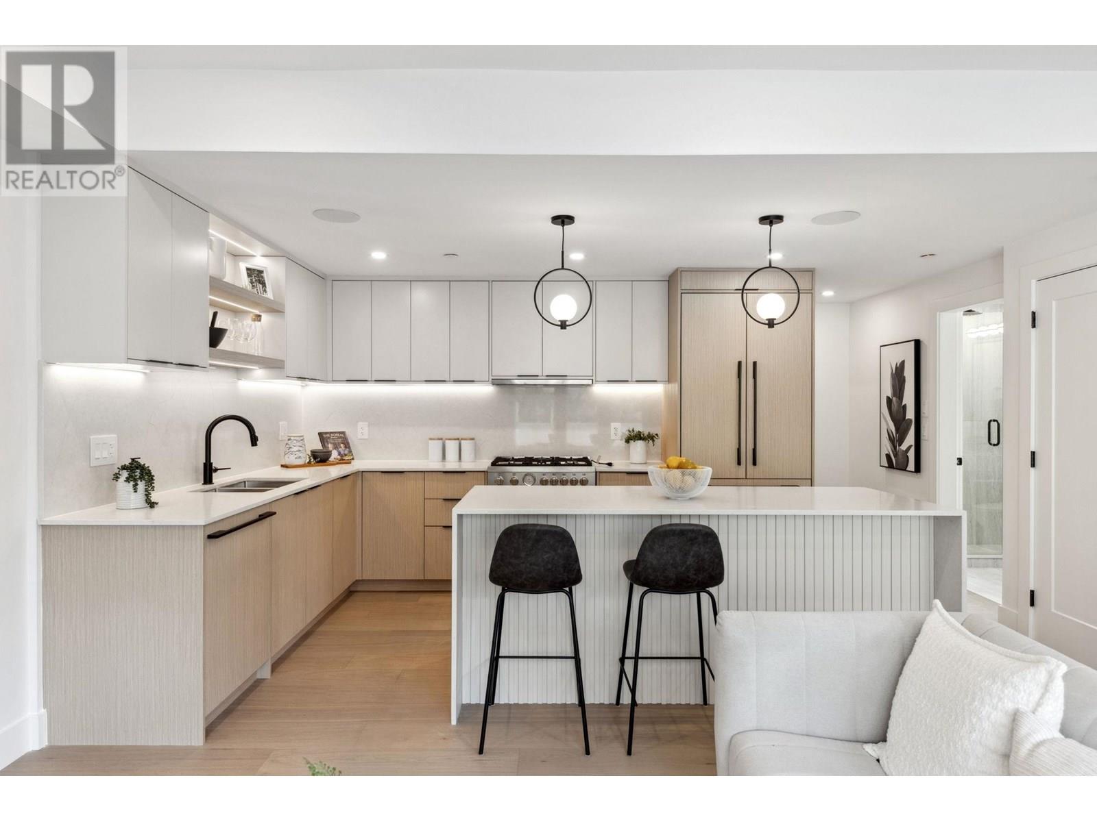 Contemporary living in this stunning newly built 3 bedroom, 4 bath plus den backside residence. Rare, private garden patio equipped with wrap around bench seating adjacent to your main floor/kitchen area is ideal for family gatherings and entertaining. Features include: top of the line Bertazzoni appliances, quartz countertops/backsplash, custom cabinetry/millwork, modern lighting and covered parking. Proudly built by Georgie + Havan Award finalist By Design Construction, you won´t want to miss this special offering. Nestled within the vibrant neighbourhood surrounding John Henry Park, steps from community centre, farmer's market, schools, shops & cafes on the Drive. Open Sat/Sun 2-4 (id:48970) Show More