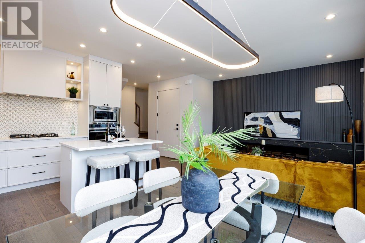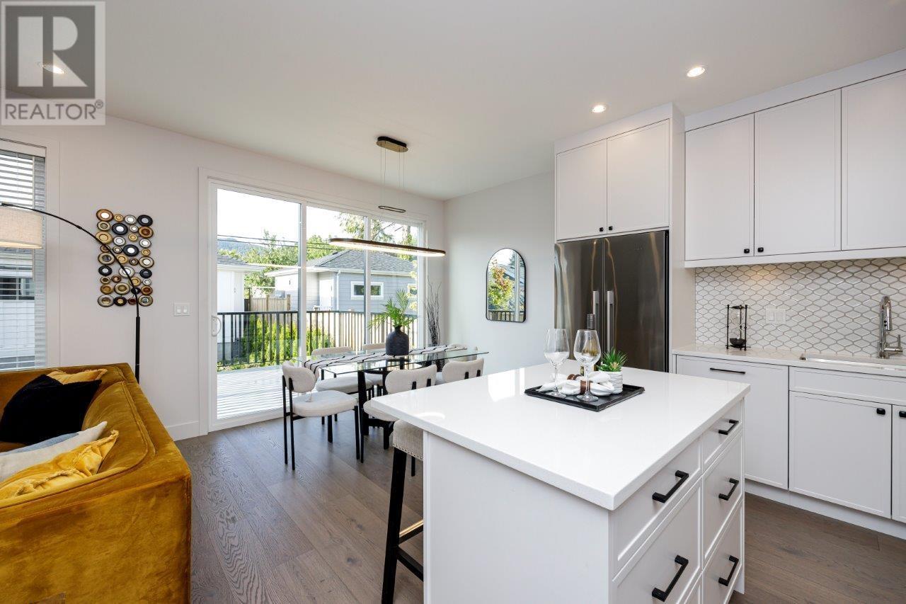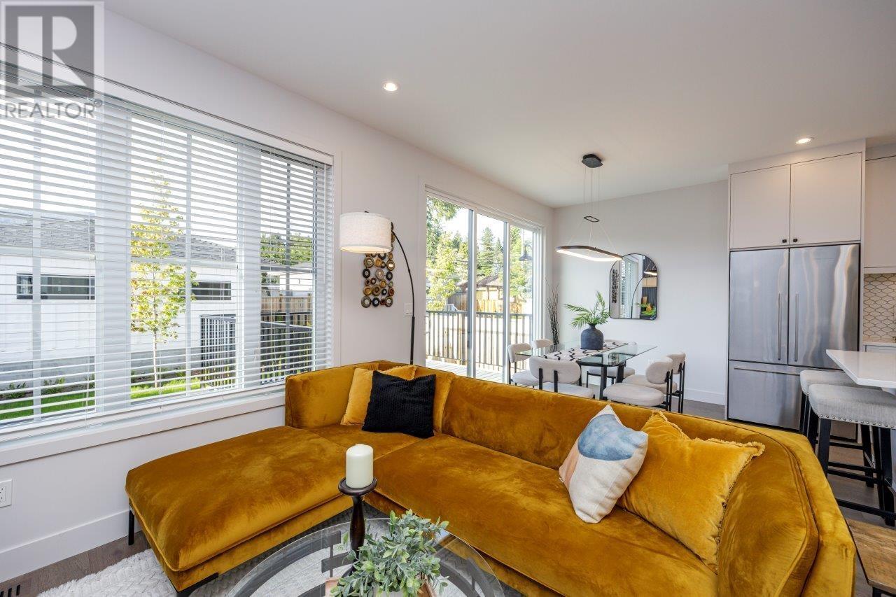 BOLDER HOMES award winning team presents these new exceptional duplexes in Central Lonsdale. These residences boast 4 bdrms,4 baths,featuring a main floor with a living and dining area,a large balcony with a triple slider and a linear fireplace,all designed with an open concept and high ceilings. The designer kitchen is equipped with Fisher Paykel appliances and elegant quartz countertops. The upper level offers 3 bdrms,2 baths,primary bdrm and ensuite,complemented by hardwood flooring and A/C throughout. The lower level includes a rec room with a private entry patio,bedroom,bath,bar. Oversized garage,back lane access with New Home Warranty,no maintenance fees or restrictions. Close to Lonsdale embracing a lifestyle of comfort and convenience. ONLY 2 REMAINING OPEN SAT/SUN 2-4PM. (id:48970) Show More