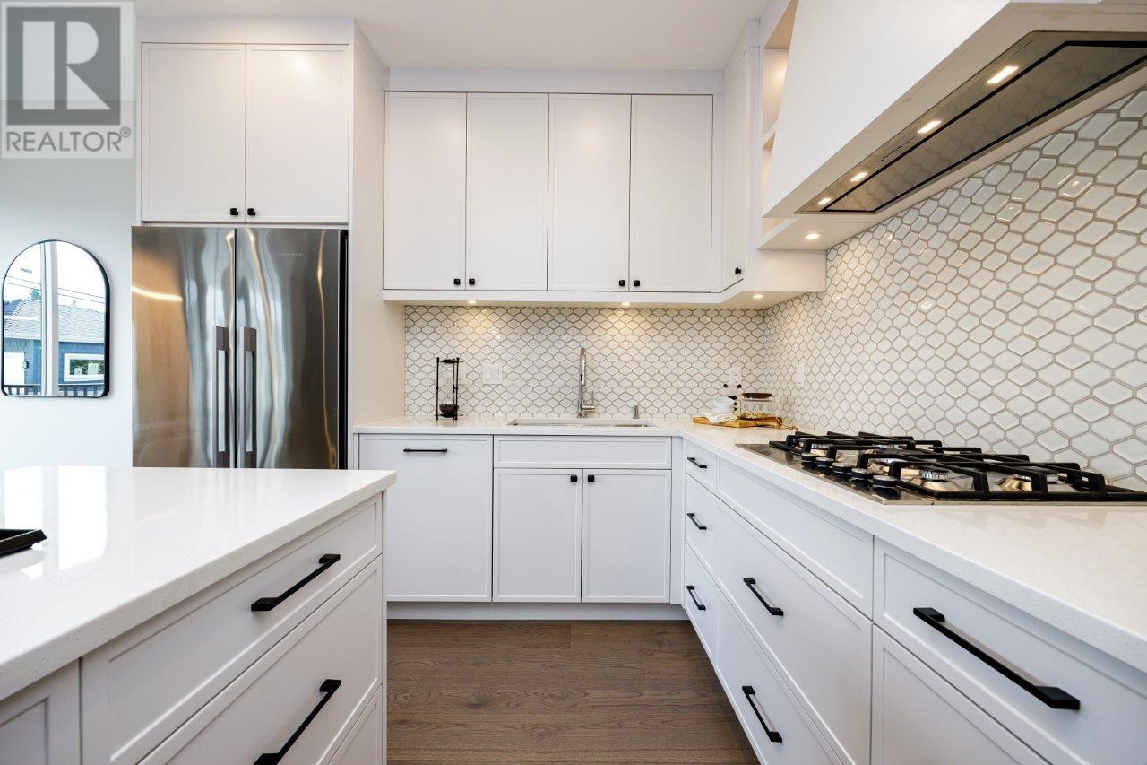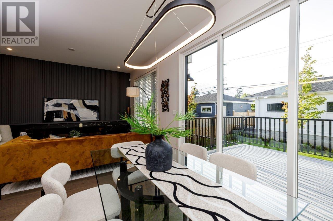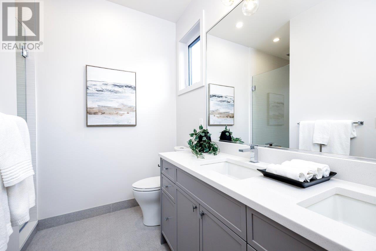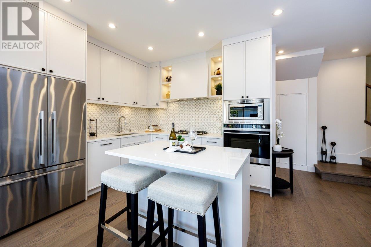 BOLDER HOMES award winning team presents these new exceptional duplexes in Central Lonsdale. These residences boast 4 bdrms,4 baths,featuring a main floor with a living and dining area,a large balcony with a triple slider and a linear fireplace,all designed with an open concept and high ceilings. The designer kitchen is equipped with Fisher Paykel appliances and elegant quartz countertops. The upper level offers 3 bdrms,2 baths,primary bdrm and ensuite,complemented by hardwood flooring and A/C throughout. The lower level includes a rec room with a private entry patio,bedroom,bath,bar. Oversized garage,back lane access with New Home Warranty,no maintenance fees or restrictions. Close to Lonsdale embracing a lifestyle of comfort and convenience. ONLY 2 REMAINING OPEN SAT/SUN 2-4PM. (id:48970) Show More