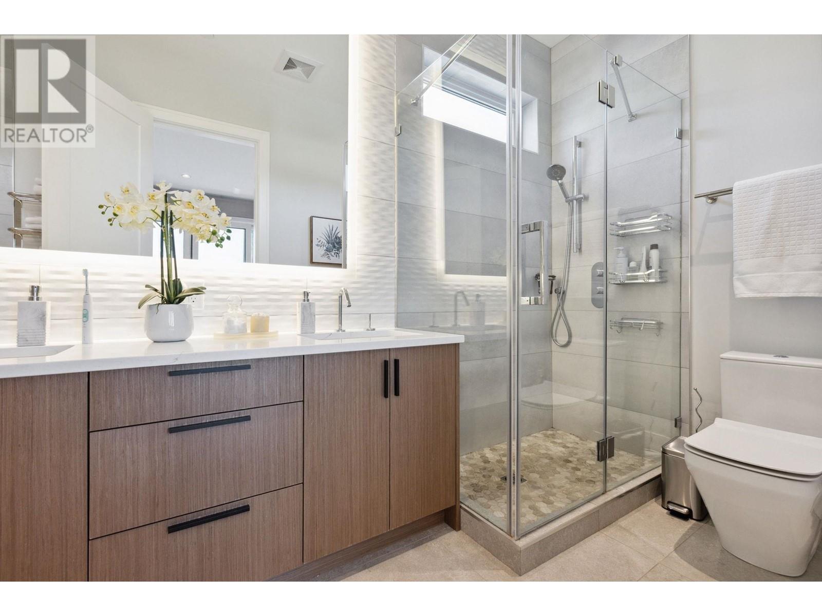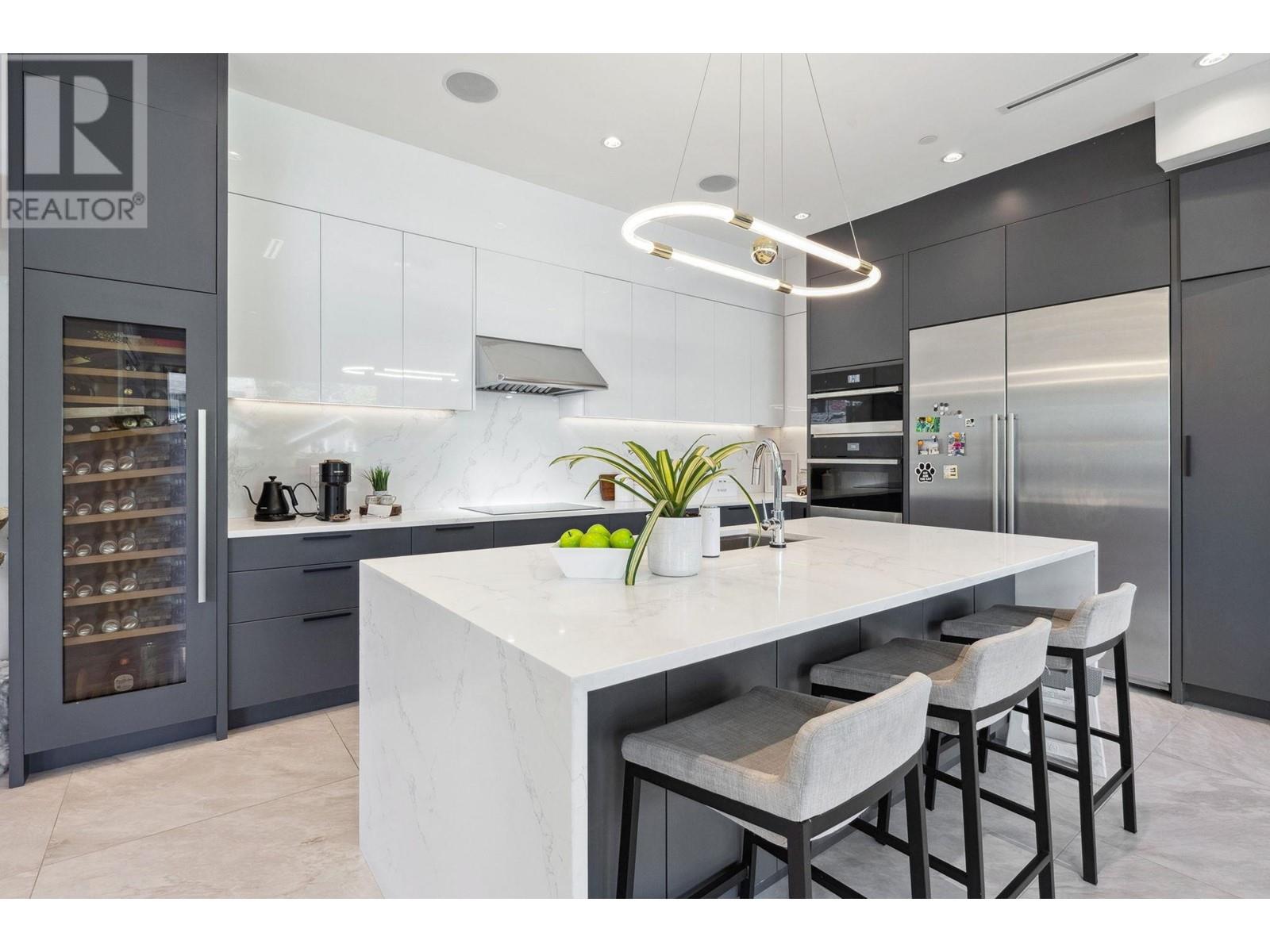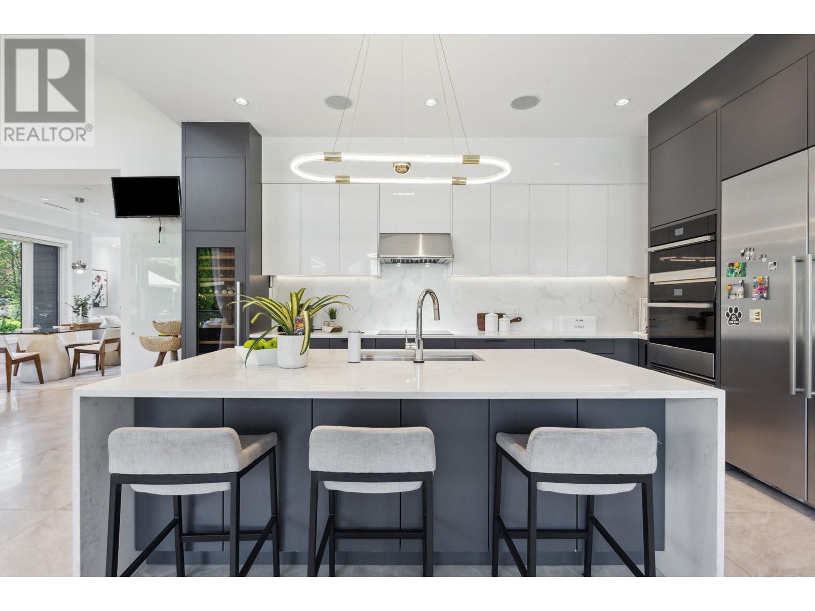 Unbeatable Central Lonsdale Location. This stunning 8 B/R, 5 bath family home has been built to the highest standards. Main floor offers a chef's kitchen equipped with top of the line appliances, a separate prep-kitchen and seamless flow into the expansive living and dining areas plus eclipse doors leading out to your covered deck, perfect for entertaining. 4 bedrooms & 3 bath upstairs including a generous primary with private deck to take in the gorgeous city views. Lower level consists of a beautiful bright 2 B/R legal suite, theatre room, custom bar and amazing gym or guest accommodation. Additional features: fully fenced yard, triple garage, RV parking and is steps to all amenities Central Lonsdale has to offer! This one is special! HOT NEW PRICE!! Open Sun 2-4 (id:48970) Show More