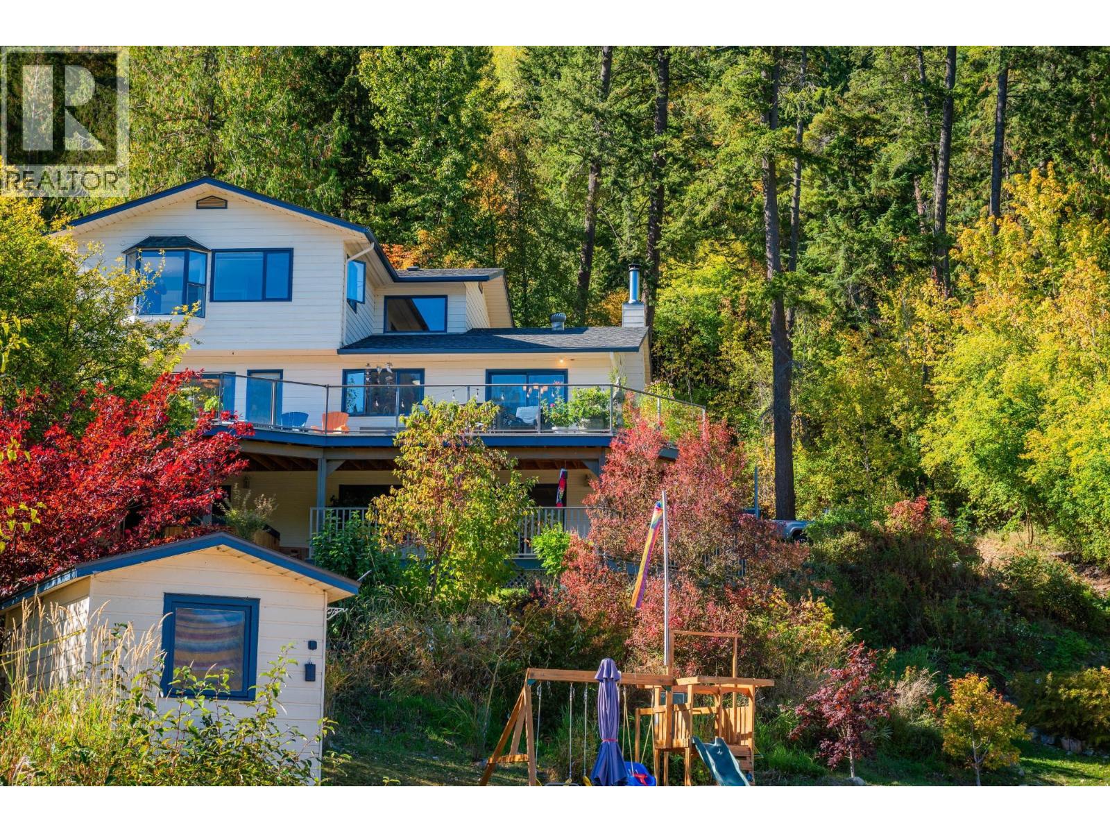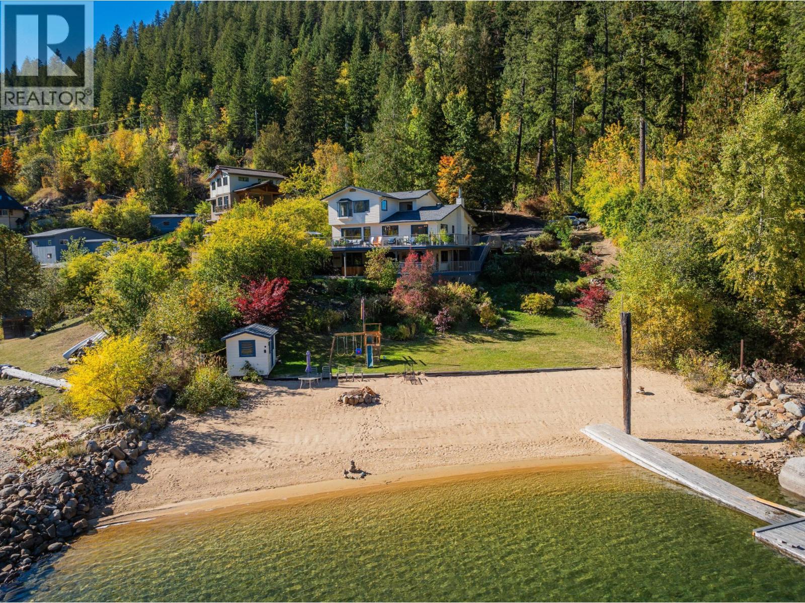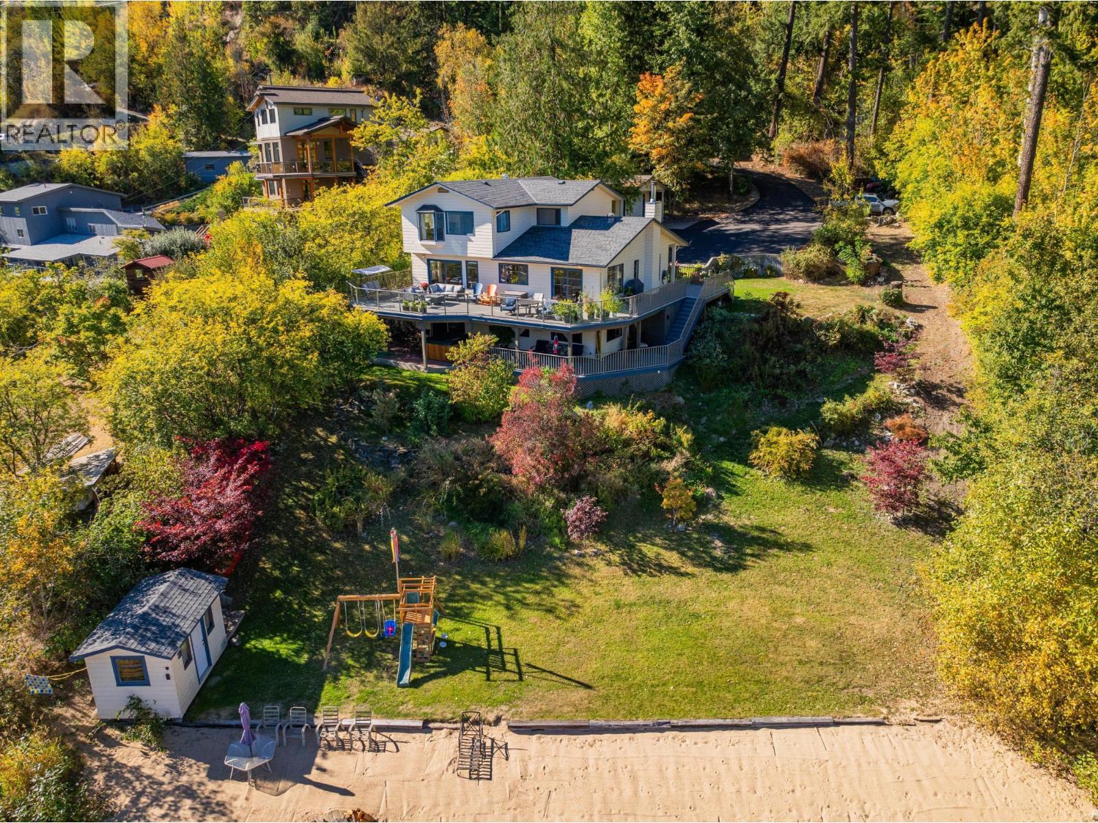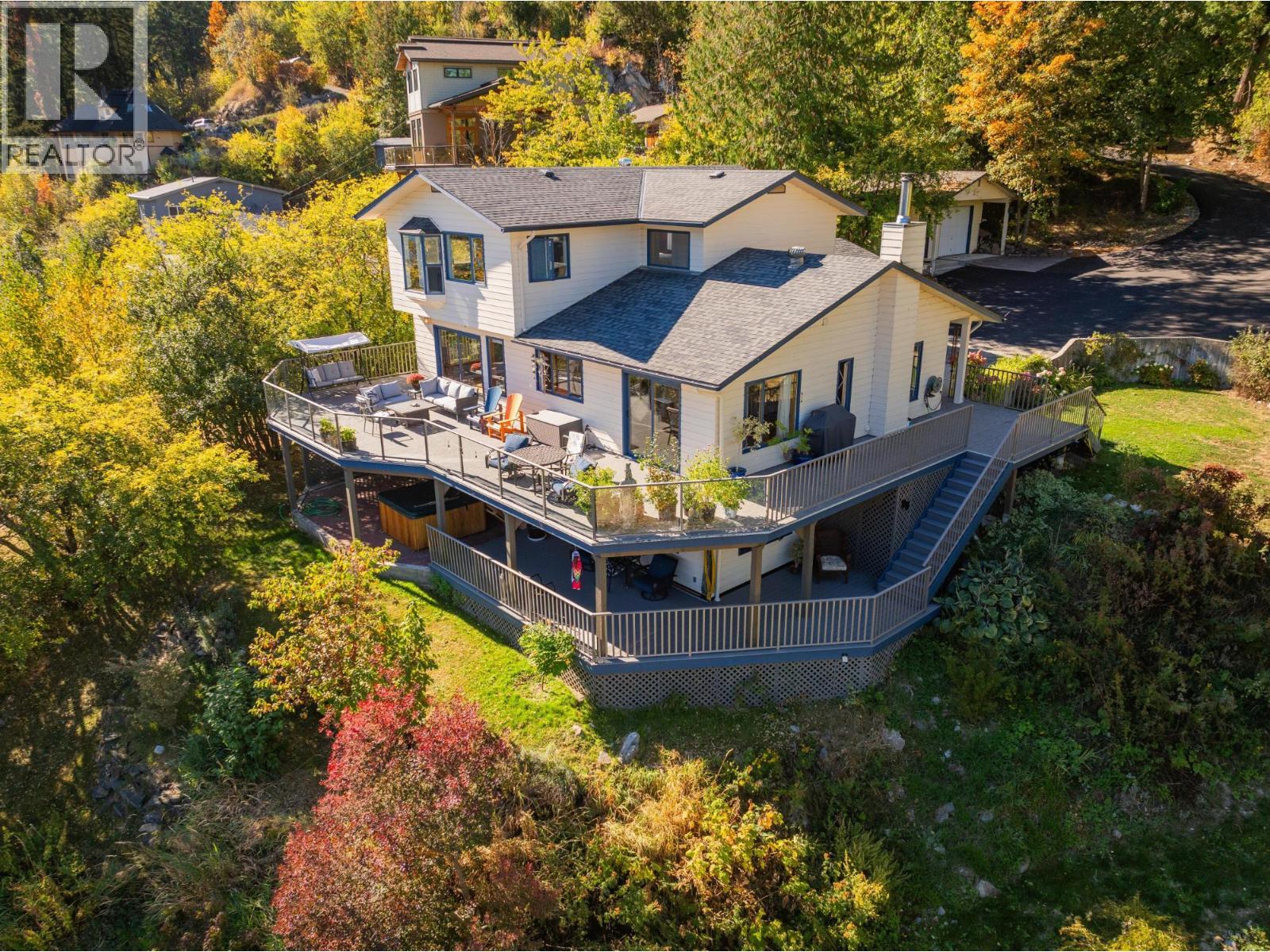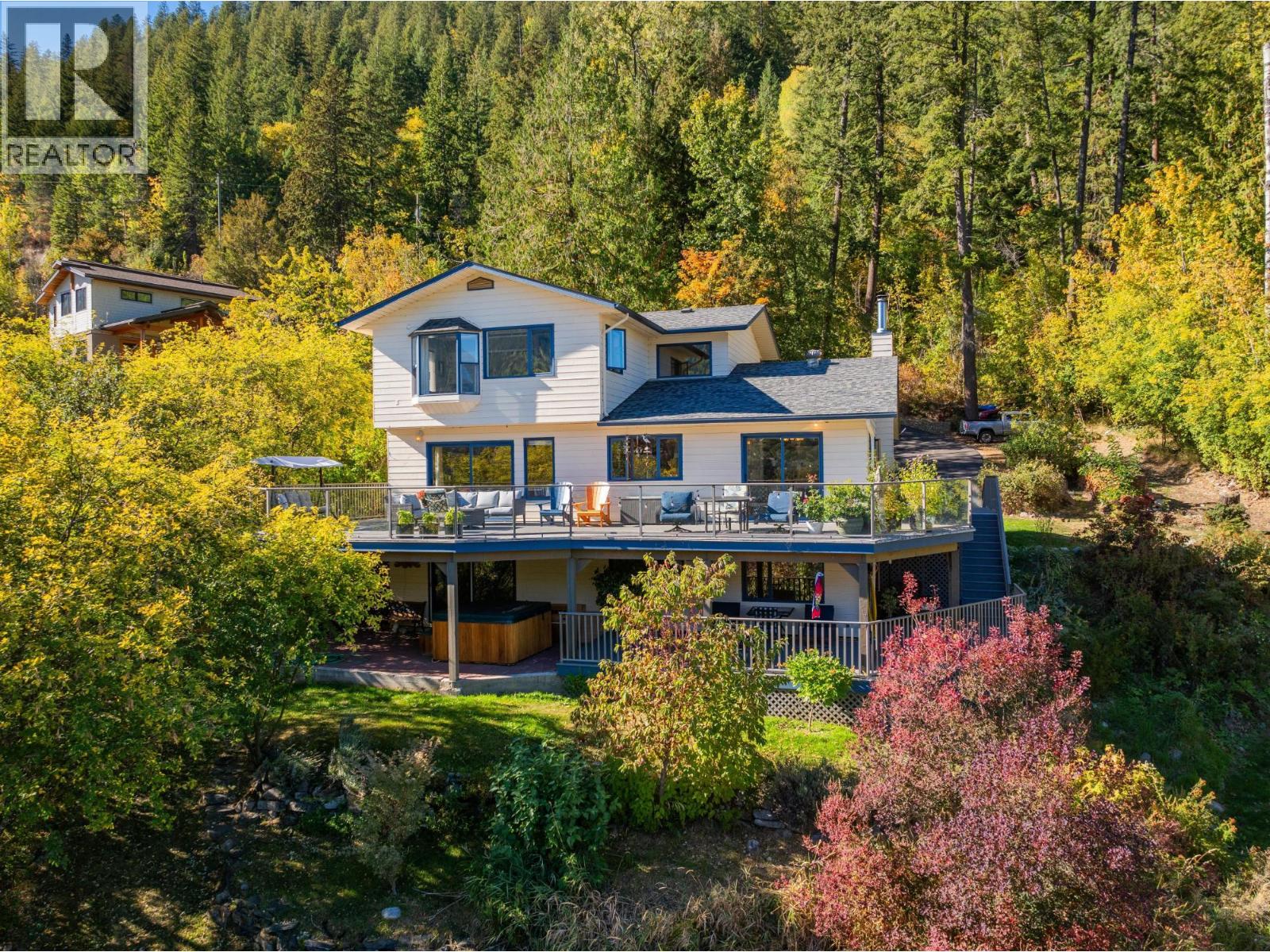 Welcome to your dream waterfront home, a stunning retreat that seamlessly blends luxury living with breathtaking views of the city, bridge, and mountains. This 5-bedroom, 3-bathroom residence offers the perfect mix of privacy and convenience, just 5 minutes from the charming town of Nelson. You'll be captivated by its serene surroundings and the tranquil sandy beach, perfect for enjoying sunny afternoons by the water. The home features a spacious two-level wrap-around deck, with a sunny upper section for soaking in the sun and a shady lower area for relaxation. There's also a convenient little beach cabin, ideal for storing your water toys or enjoying quiet moments by the shore. Abundant spring water enhances the property, ensuring a sustainable and refreshing source. Inside, you'll find recent flooring upgrades that elevate the home's modern appeal. The open-concept living spaces are designed for both relaxation and entertaining, with ample natural light streaming through large windows. The well-appointed kitchen flows seamlessly into the dining and living areas, making it perfect for family gatherings or entertaining friends. Additionally, the lower level has suite potential, offering flexibility for guests or rental income. The detached garage and carport provide plenty of storage for vehicles and all gear. This property is a rare find in one of the most desirable locations near town, allowing you to enjoy the beauty of nature without sacrificing access to urban amenities. (id:48970) Show More