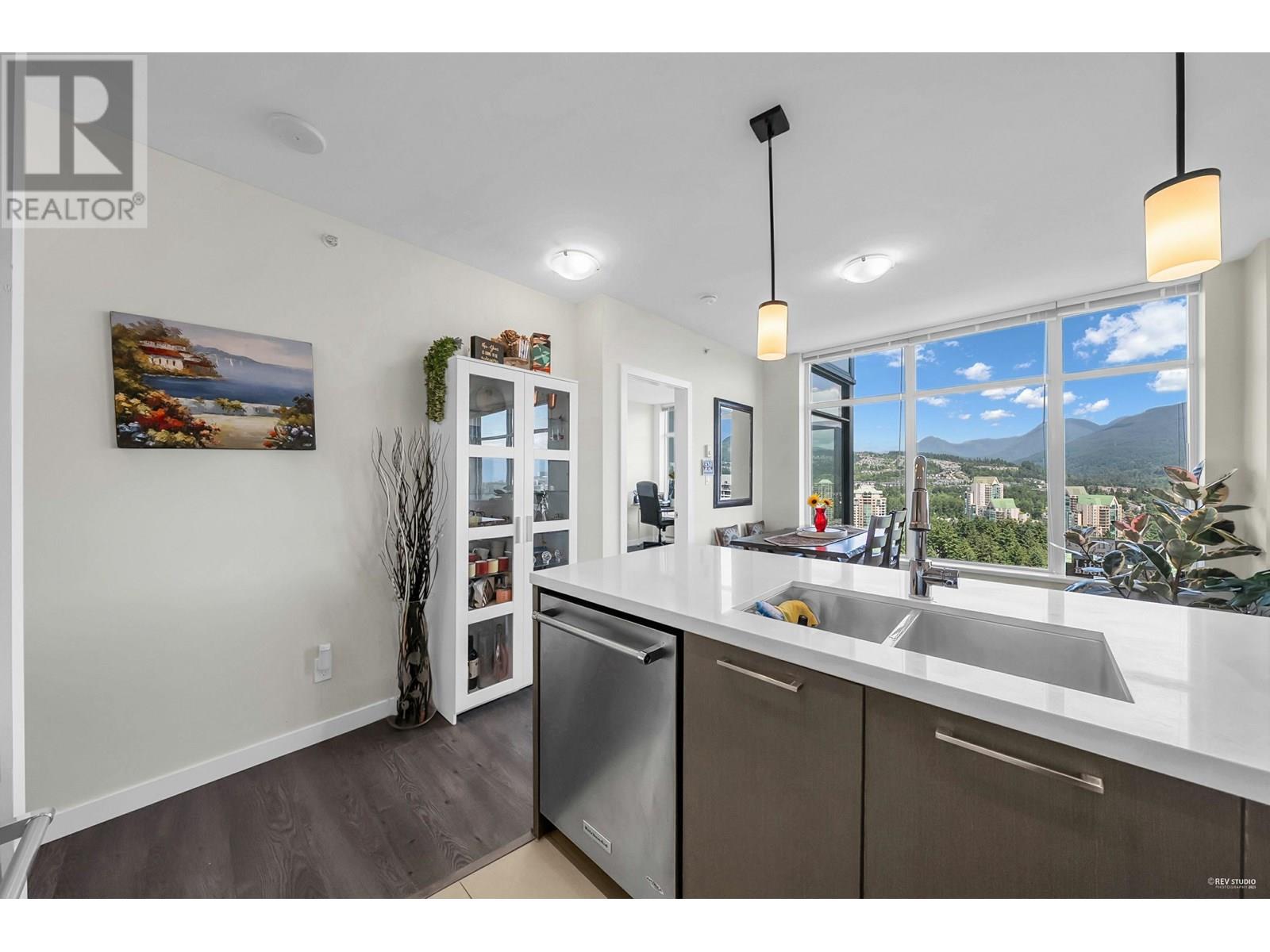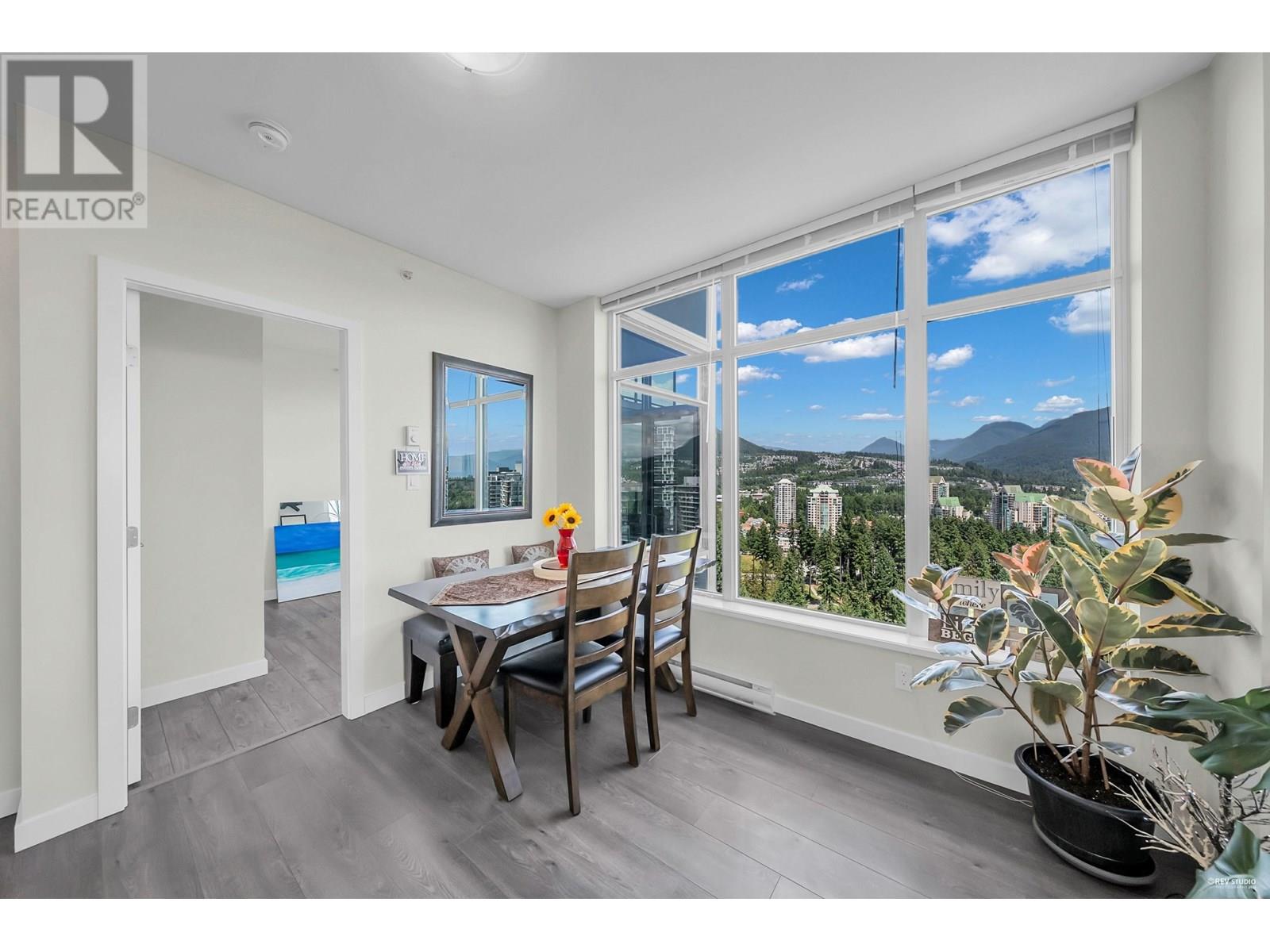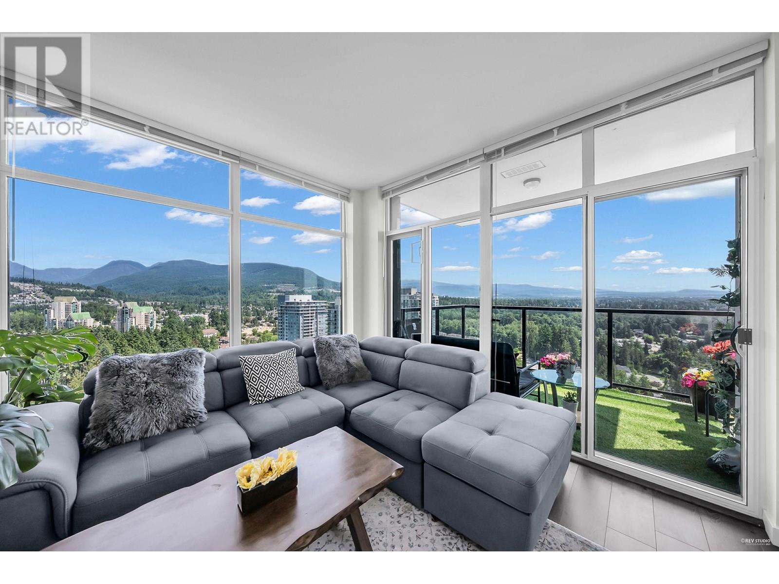Welcome to luxury on a high floor at Westwood by Onni! This bright NE-facing corner unit offers stunning UNOBSTRACTED views from almost every room. Enjoy your morning coffee on the large balcony with mountain and city views. 2 bedrooms, 2 bathrooms, heated floors, gas cooktop, granite counters, new laminate in both bedrooms and more. Steps to SkyTrain, Coquitlam Centre, Lafarge Lake, parks, and schools. Amenities: pool, gym, sauna, guest suite. 1 parking near elevator & 1 locker included. Open house Sat June 14 (11am to 1pm) and Sun June 15 (2-4pm) (id:48970) Show More