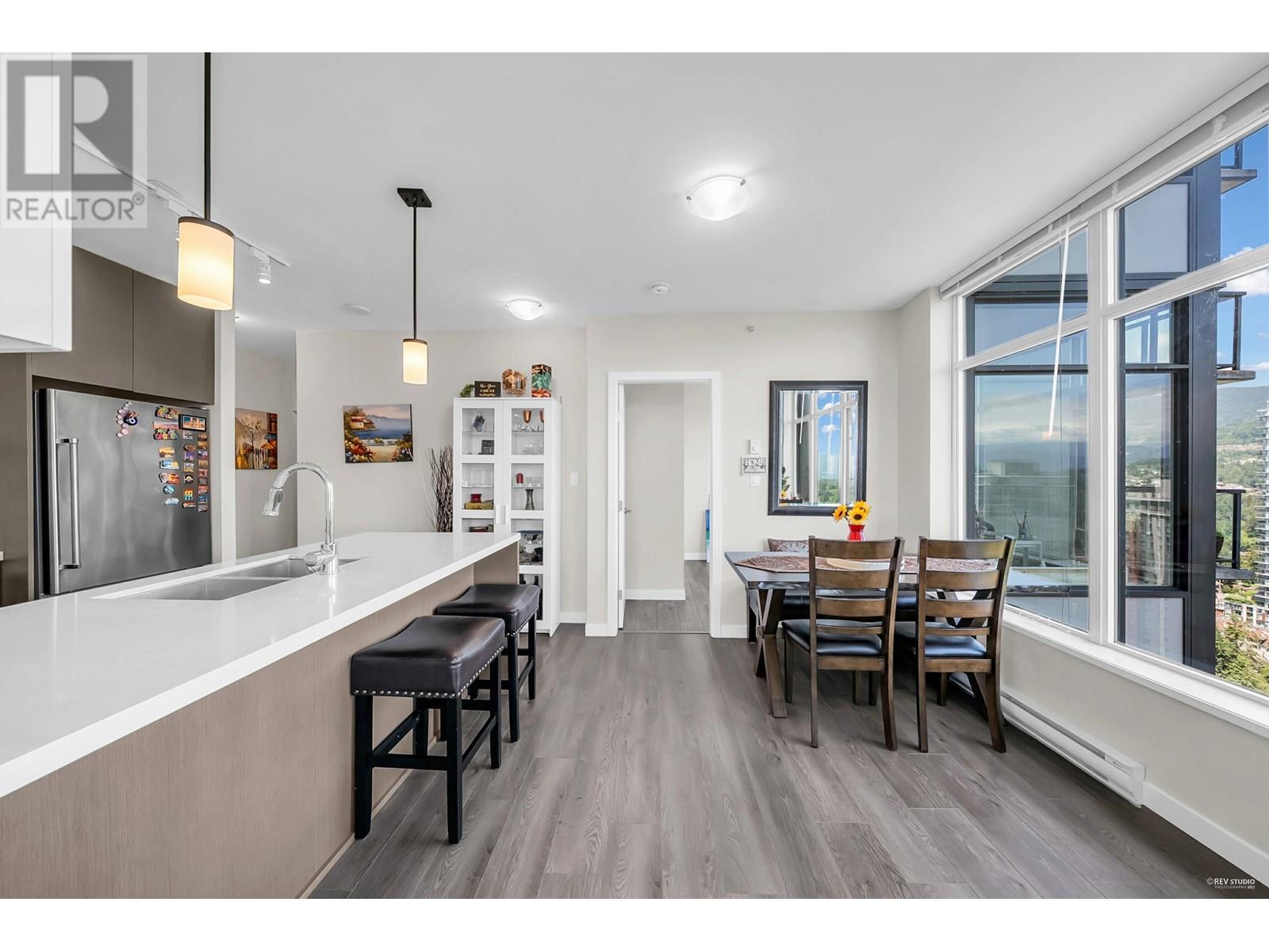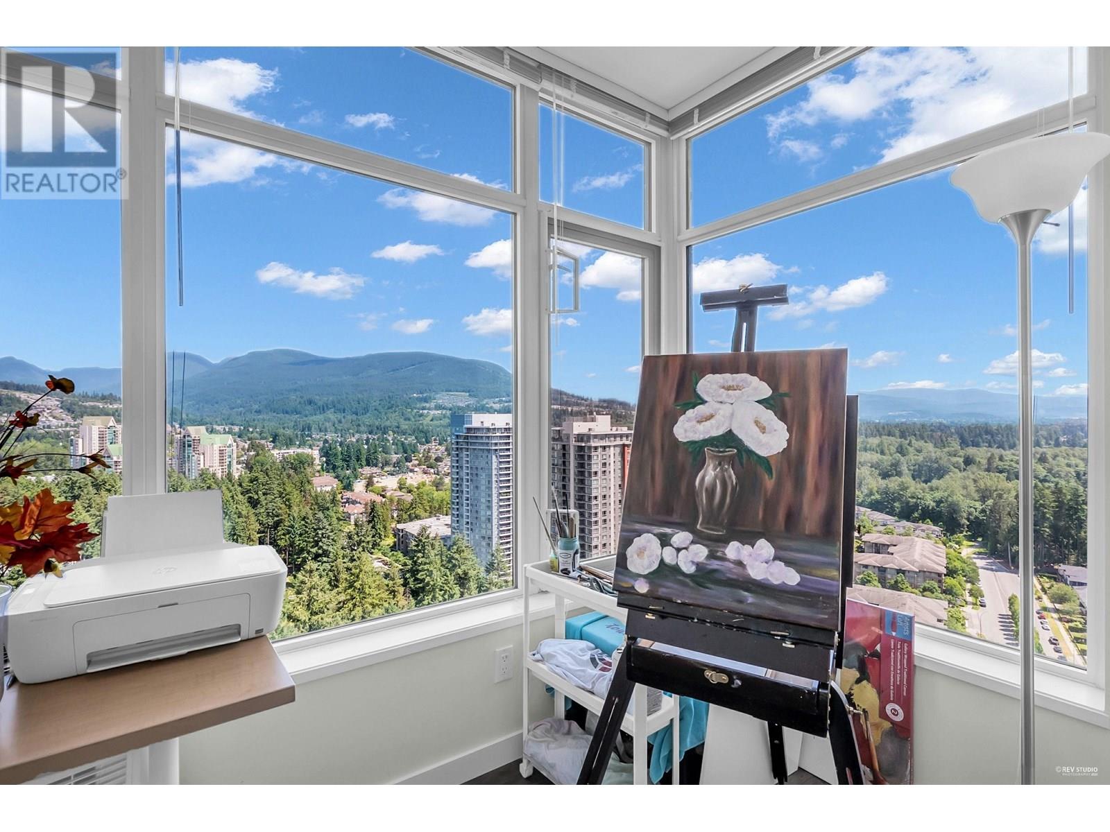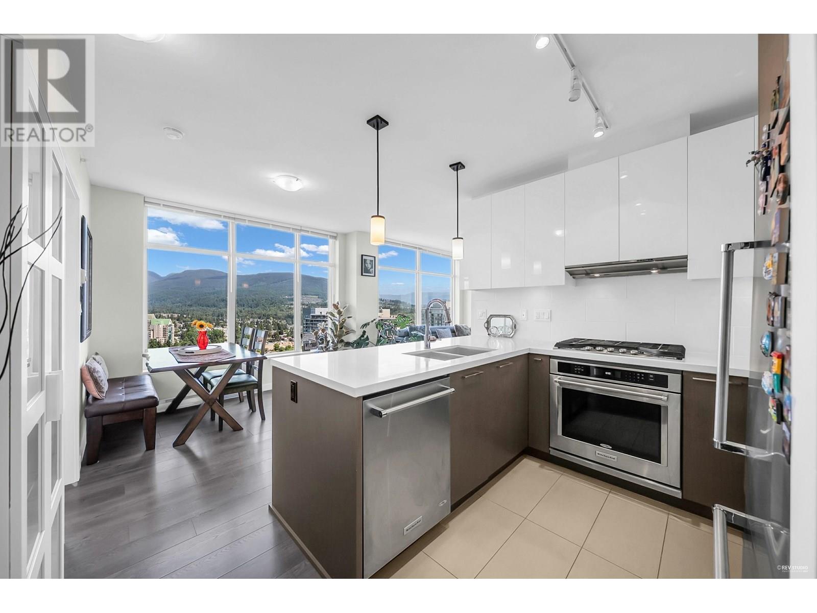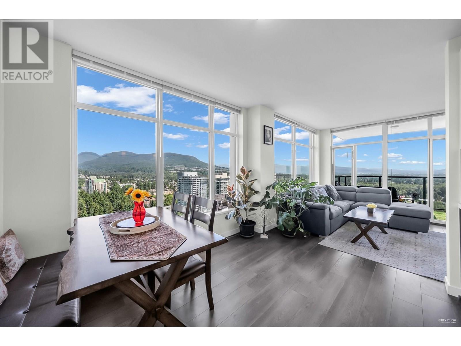 Welcome to luxury on a high floor at Westwood by Onni! This bright NE-facing corner unit offers stunning UNOBSTRACTED views from almost every room. Enjoy your morning coffee on the large balcony with mountain and city views. 2 bedrooms, 2 bathrooms, heated floors, gas cooktop, granite counters, new laminate in both bedrooms and more. Steps to SkyTrain, Coquitlam Centre, Lafarge Lake, parks, and schools. Amenities: pool, gym, sauna, guest suite. 1 parking near elevator & 1 locker included. Open house Sat June 14 (11am to 1pm) and Sun June 15 (2-4pm) (id:48970) Show More
