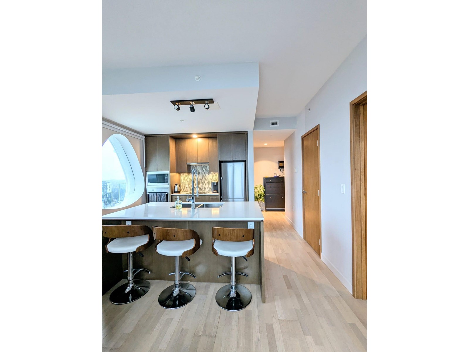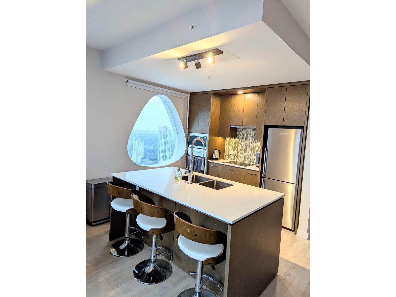 Stunning Corner Unit with Spectacular Views! Welcome to 3 Civic Plaza by Century Group in the heart of Surrey City! This bright and unique 1 bed + den, 1-bath corner unit offers a luxurious living experience with breathtaking southeast-facing views, right from your Livingroom and master bedroom. The open-concept design features a modern kitchen with quartz countertops, a spacious island, and stainless-steel appliances, perfect for cooking and entertaining. Enjoy the thoughtfully designed storage spaces, a spa-inspired bathroom, and the comfort of geothermal heating and cooling. This unit comes with the added convenience of 1 parking space and a secure storage locker, and the hotel amenities w/membership. Don't miss out on this incredible opportunity. (id:48970) Show More