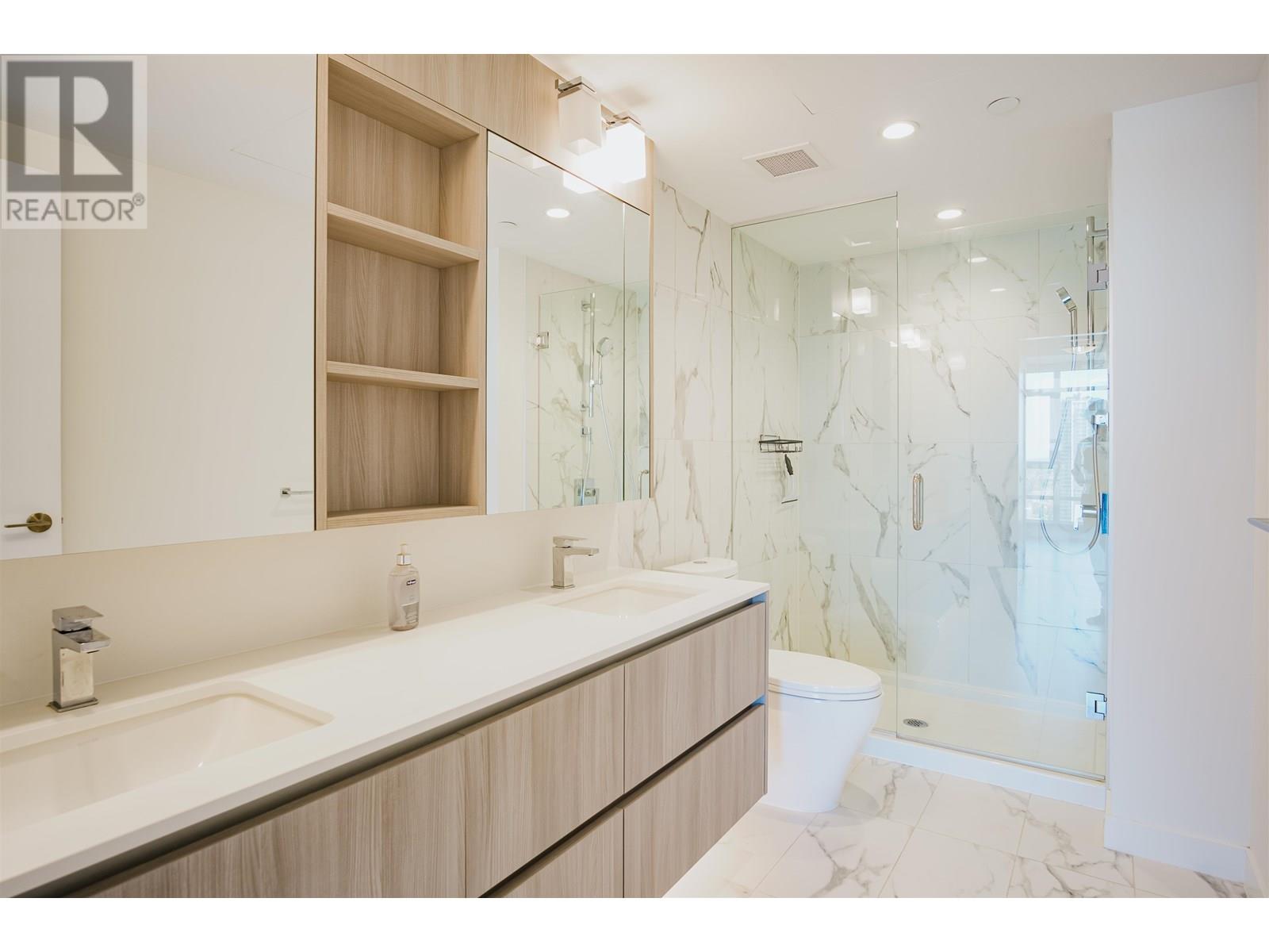 This stunning 2-bedroom, 2-bathroom condo offers bright, open-concept living with floor-to-ceiling windows showcasing panoramic city and mountain views. The modern kitchen features quartz countertops, a gas cooktop, built-in appliances, and a large island, while the spacious living and dining areas flow seamlessly for everyday comfort and entertaining. The primary includes a sleek ensuite with double sinks aland the second bedroom is perfect for guests or a home office. Additional highlights include central A/C and heating, two parking stalls, a storage locker, and resort-style amenities such as a gym, concierge, lounge, and rooftop terrace. Steps from the SkyTrain, shopping, dining, and parks, this home combines luxury, convenience, and an unbeatable Burnaby location. (id:48970) Show More