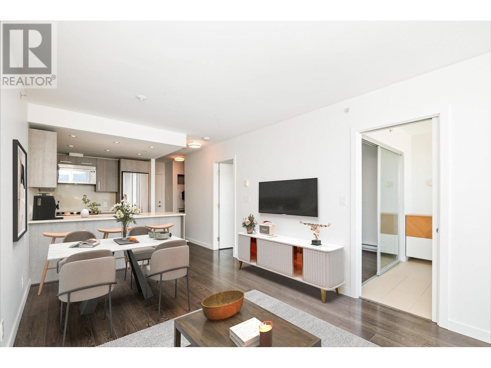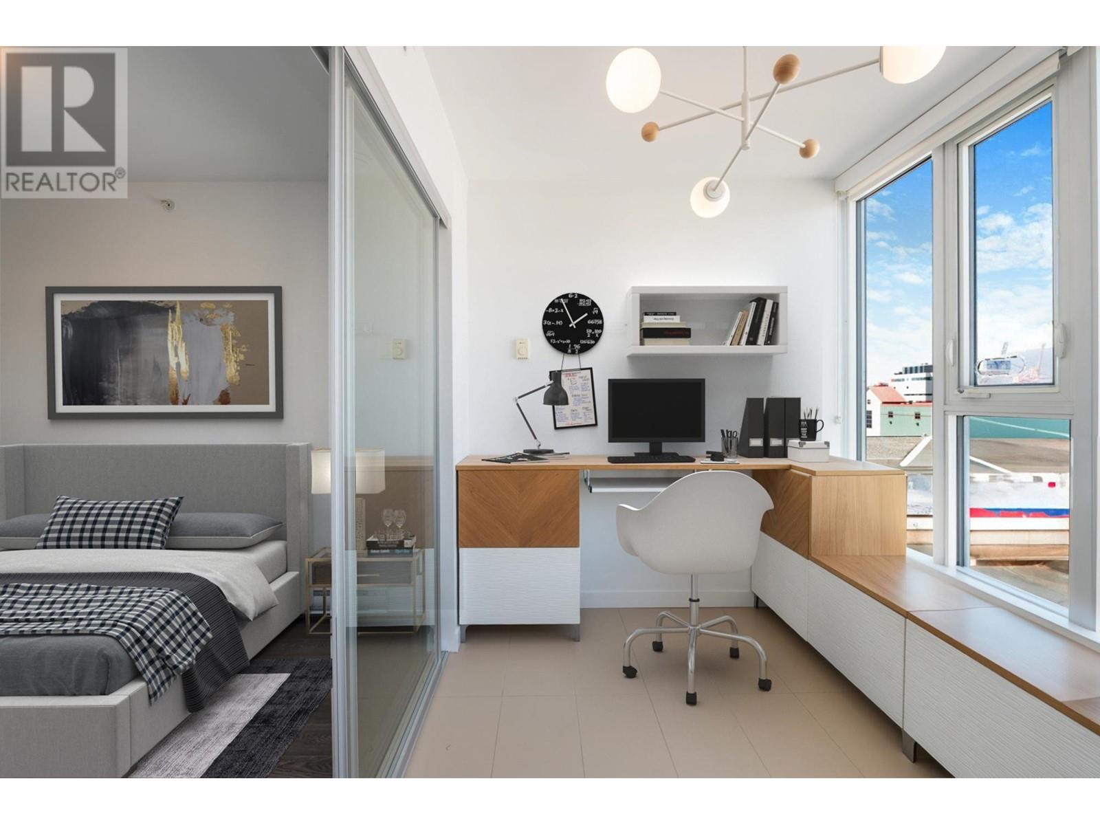 Lay your eyes on the BEST LAYOUT in the Strathcona Village complex PLUS PANORAMIC MOUNTAIN/OCEAN VIEWS! Rare 1B1B + LARGE OFFICE + DEN + BALCONY in 2018 concrete building. Sweeping views whether you´re cooking, working or lounging. Meticulously maintained, maximum functionality: built-in custom desk in office, built-in shelves in master closet & den. Home stacked with gourmet kitchen, breakfast bar, full size dishwasher/washer/dryer, bathroom with deep soaker tub. Enjoy best of both worlds where community crosses tranquility. Exclusive amenities: MULTIPLE gyms, meeting rooms, rooftop terraces with firepit/BBQs, garden plots, playgrounds. Steps from Downtown, Commercial Drive, breweries, cafes, transit, HWY1. EV ready parking, pets & Airbnb allowed. Perfect for homeowners & investors! (id:48970) Show More