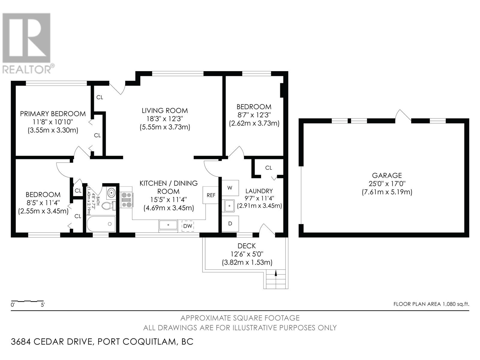 - Area 1080 sq ft