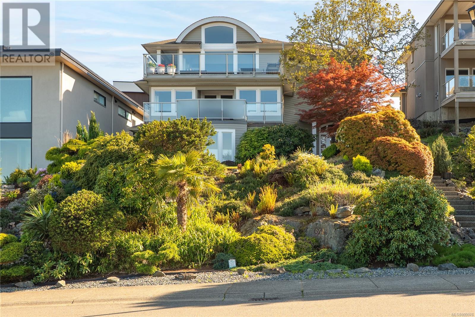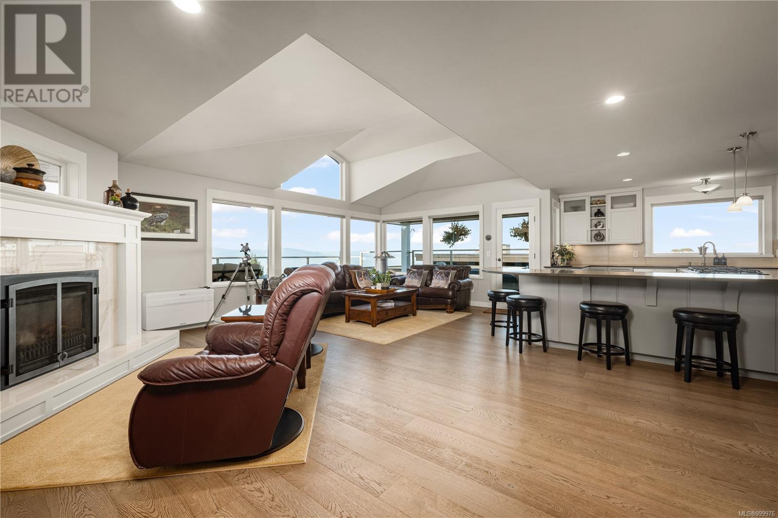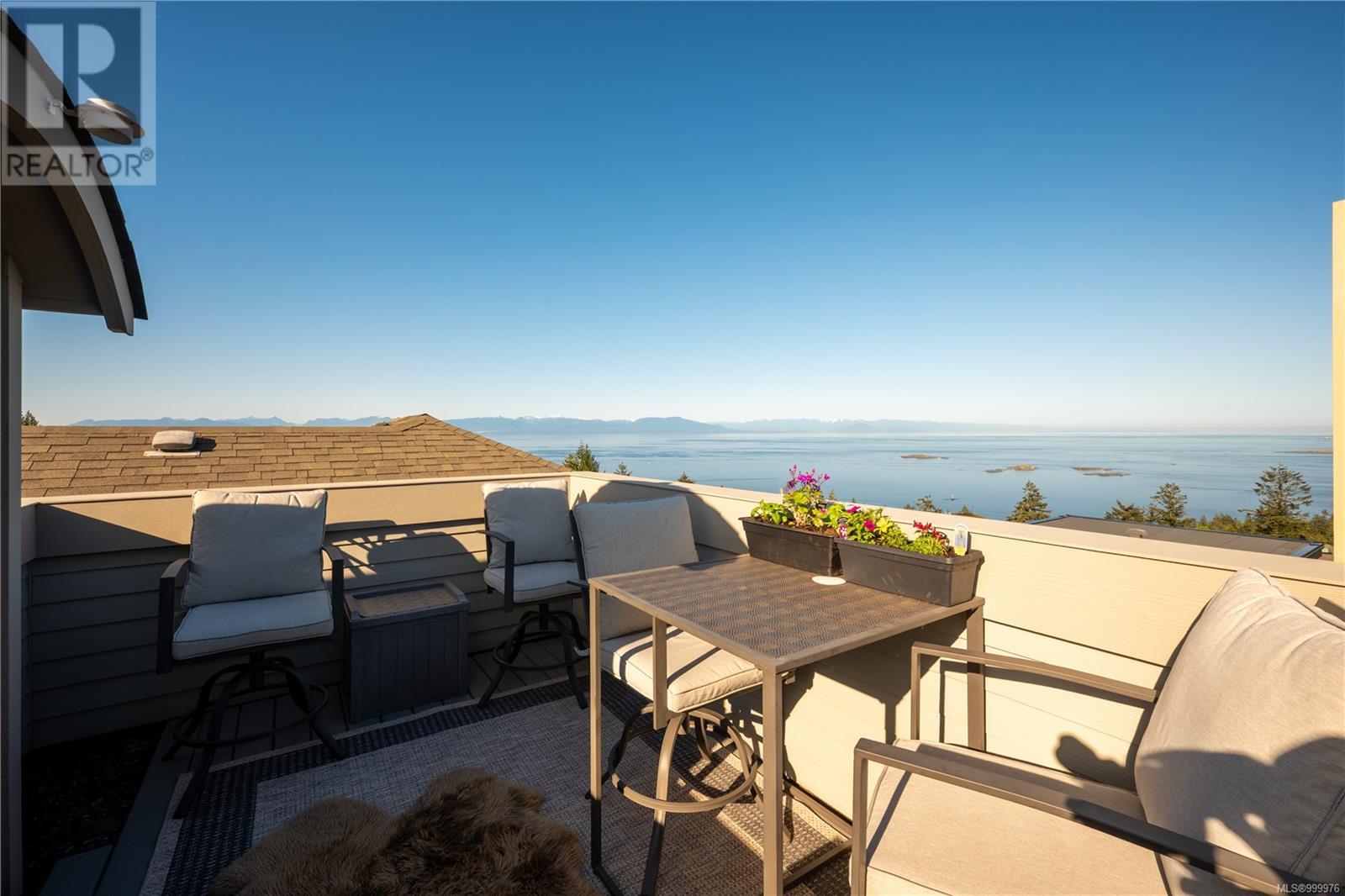 Welcome to 'The Nest' - a truly extraordinary custom-designed residence perched high atop Glen Oaks Drive in Nanaimo's prestigious Oakridge Estates. With commanding 360-degree views and an unrivaled vantage of the Salish Sea, Texada Island, Sunshine Coast, Gabriola, and Nanaimo Harbour, this is coastal living elevated to its highest form. Located in the sought-after Hammond Bay area, this estate was thoughtfully designed to harmonize with the natural landscape while maximizing privacy and view corridors. Every detail of this residence speaks to impeccable craftsmanship and refined taste. The open-concept main floor is bathed in natural light from expansive picture windows and boasts a chef's kitchen with stainless steel professional-grade appliances, wine storage, and bar fridge - perfect for entertaining. A cozy fireplace anchors the spacious living and dining areas, creating a warm yet sophisticated ambiance. The upper-level rec room opens to a sun-drenched rooftop patio offering unobstructed ocean views, ideal for entertaining or serene solitude. The lower levels host the exquisite primary suite complete with spa-like ensuite, walk-in closet with solid wood built-ins, and a tranquil sitting area. Two additional bedrooms, a second rec room, and multiple decks across four levels ensure flexible and functional living. Nestled on a private lane with minimal traffic, this home offers the ultimate in quiet luxury. Professionally landscaped gardens frame the property, creating a showpiece both inside and out. Designed for both grand entertaining and intimate relaxation, this home features the finest materials, built-in vacuum, and impeccable maintenance throughout. With potential for a private suite or office via separate entrance, this exclusive property offers endless possibilities. Homes of this caliber and location are rarely available-seize the opportunity to own a slice of Nanaimo's finest (id:48970) Show More