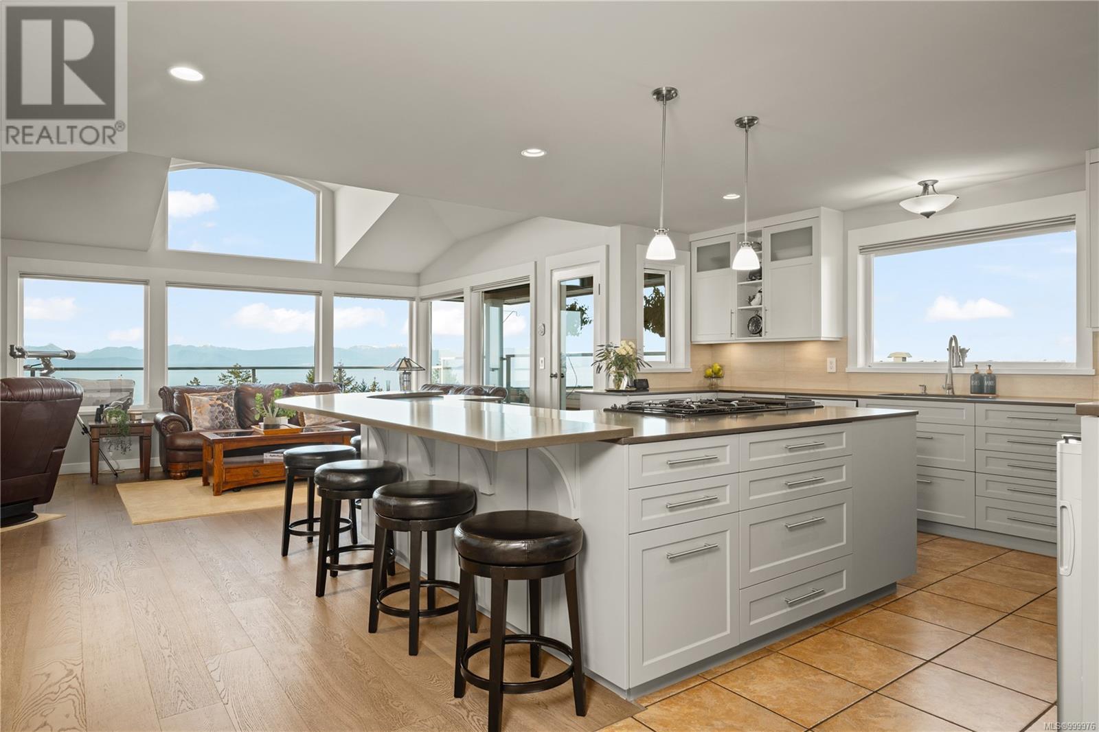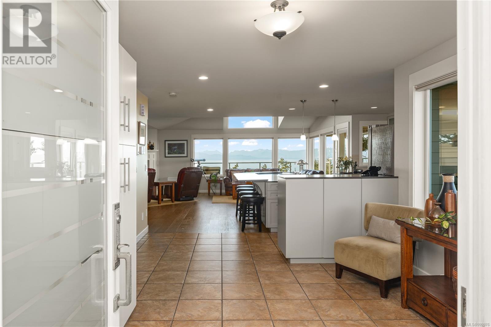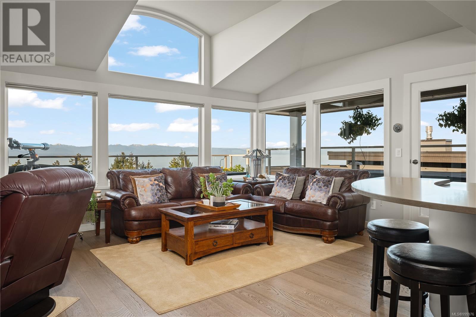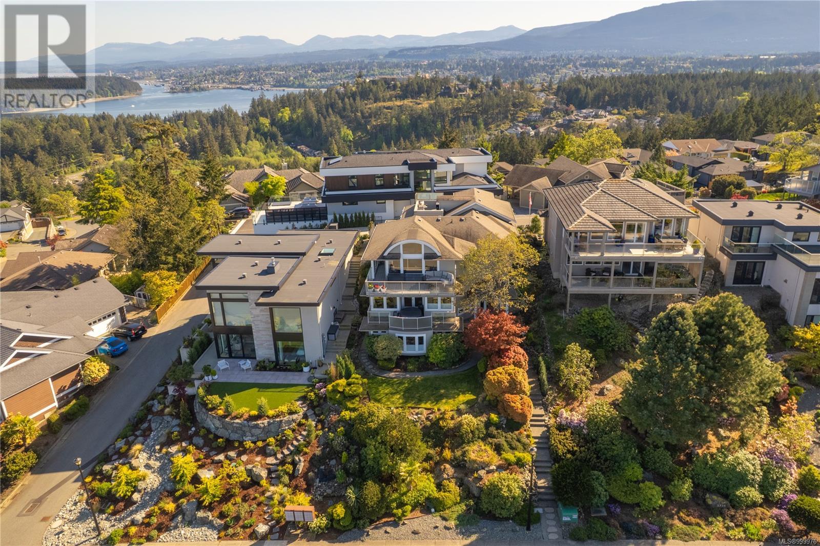 Welcome to 'The Nest' - a truly extraordinary custom-designed residence perched high atop Glen Oaks Drive in Nanaimo's prestigious Oakridge Estates. With commanding 360-degree views and an unrivaled vantage of the Salish Sea, Texada Island, Sunshine Coast, Gabriola, and Nanaimo Harbour, this is coastal living elevated to its highest form. Located in the sought-after Hammond Bay area, this estate was thoughtfully designed to harmonize with the natural landscape while maximizing privacy and view corridors. Every detail of this residence speaks to impeccable craftsmanship and refined taste. The open-concept main floor is bathed in natural light from expansive picture windows and boasts a chef's kitchen with stainless steel professional-grade appliances, wine storage, and bar fridge - perfect for entertaining. A cozy fireplace anchors the spacious living and dining areas, creating a warm yet sophisticated ambiance. The upper-level rec room opens to a sun-drenched rooftop patio offering unobstructed ocean views, ideal for entertaining or serene solitude. The lower levels host the exquisite primary suite complete with spa-like ensuite, walk-in closet with solid wood built-ins, and a tranquil sitting area. Two additional bedrooms, a second rec room, and multiple decks across four levels ensure flexible and functional living. Nestled on a private lane with minimal traffic, this home offers the ultimate in quiet luxury. Professionally landscaped gardens frame the property, creating a showpiece both inside and out. Designed for both grand entertaining and intimate relaxation, this home features the finest materials, built-in vacuum, and impeccable maintenance throughout. With potential for a private suite or office via separate entrance, this exclusive property offers endless possibilities. Homes of this caliber and location are rarely available-seize the opportunity to own a slice of Nanaimo's finest (id:48970) Show More