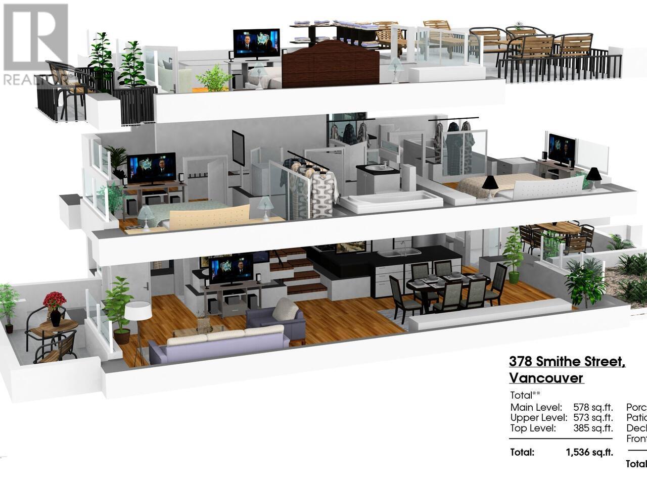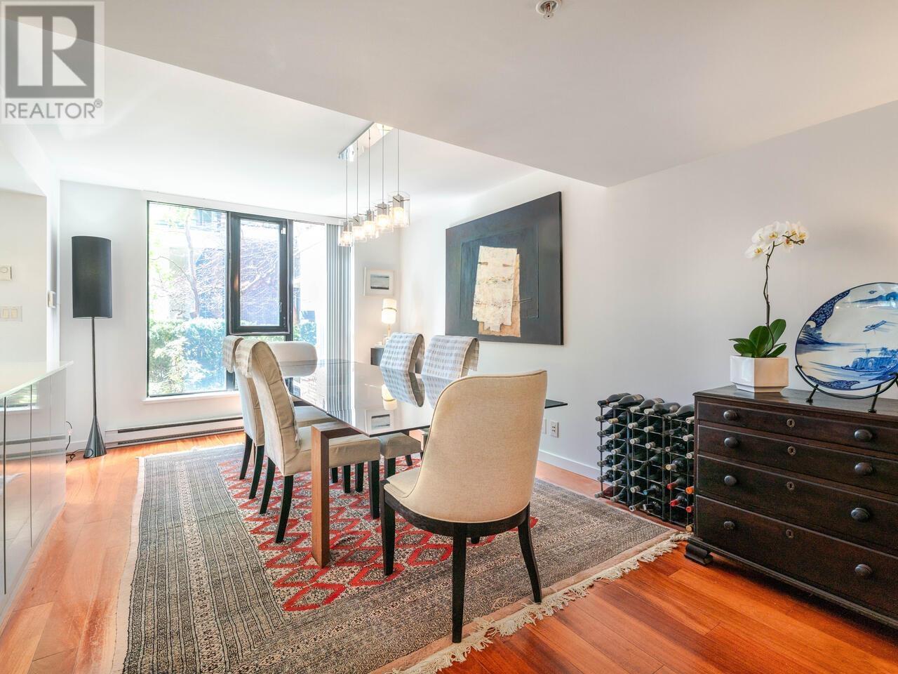 BRIGHT & STYLISH 3-BR/3-BA TOWNHOUSE in YALETOWN! Open-concept main floor is ideal for entertaining, with a welcoming Living Room, Dining area that seats ten guests, renovated Kitchen, and a patio for alfresco meals overlooking peaceful gardens. 2nd Floor: Primary bedroom w/custom California Closets & spacious 5-piece ensuite; a second bedroom, bathroom and laundry. Top floor has a versatile open-plan Family room + Office (easily reverts to original 3rd Bedroom), a large Sundeck, ideal for soaking up the sun, gardening & relaxing with a cocktail. Plus a GYM & Pet-friendly too! 2024 building envelope renewal adds peace of mind. In vibrant Yaletown near the Seawall, it's a short walk to Canada Line, shops, restaurants, and a new children's park a block away. This is urban living at its best! (id:48970) Show More