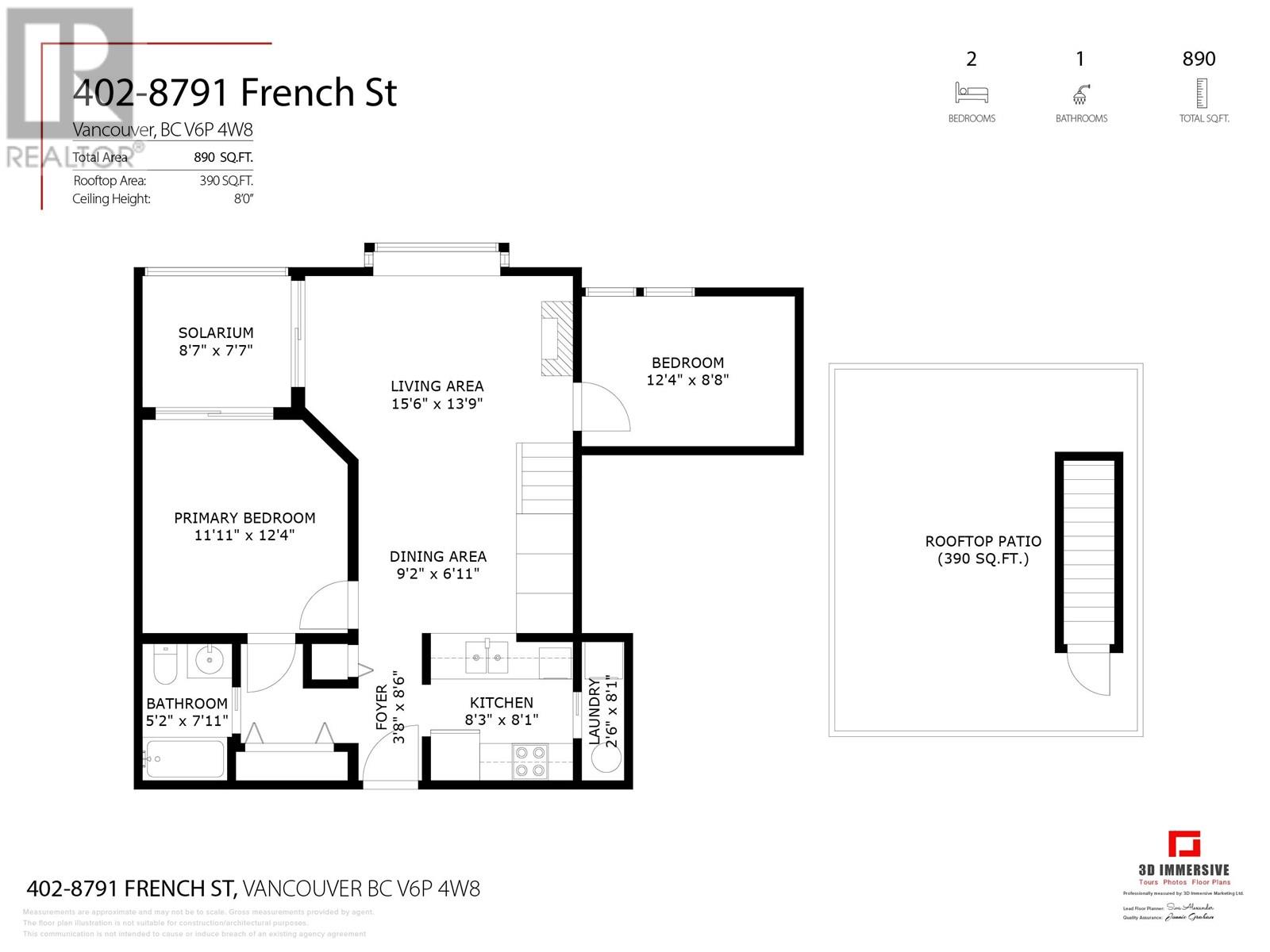- Area 890 sq ft