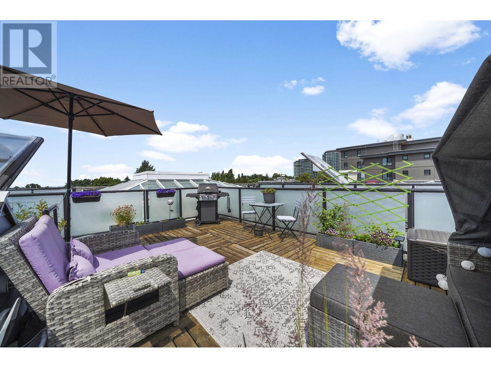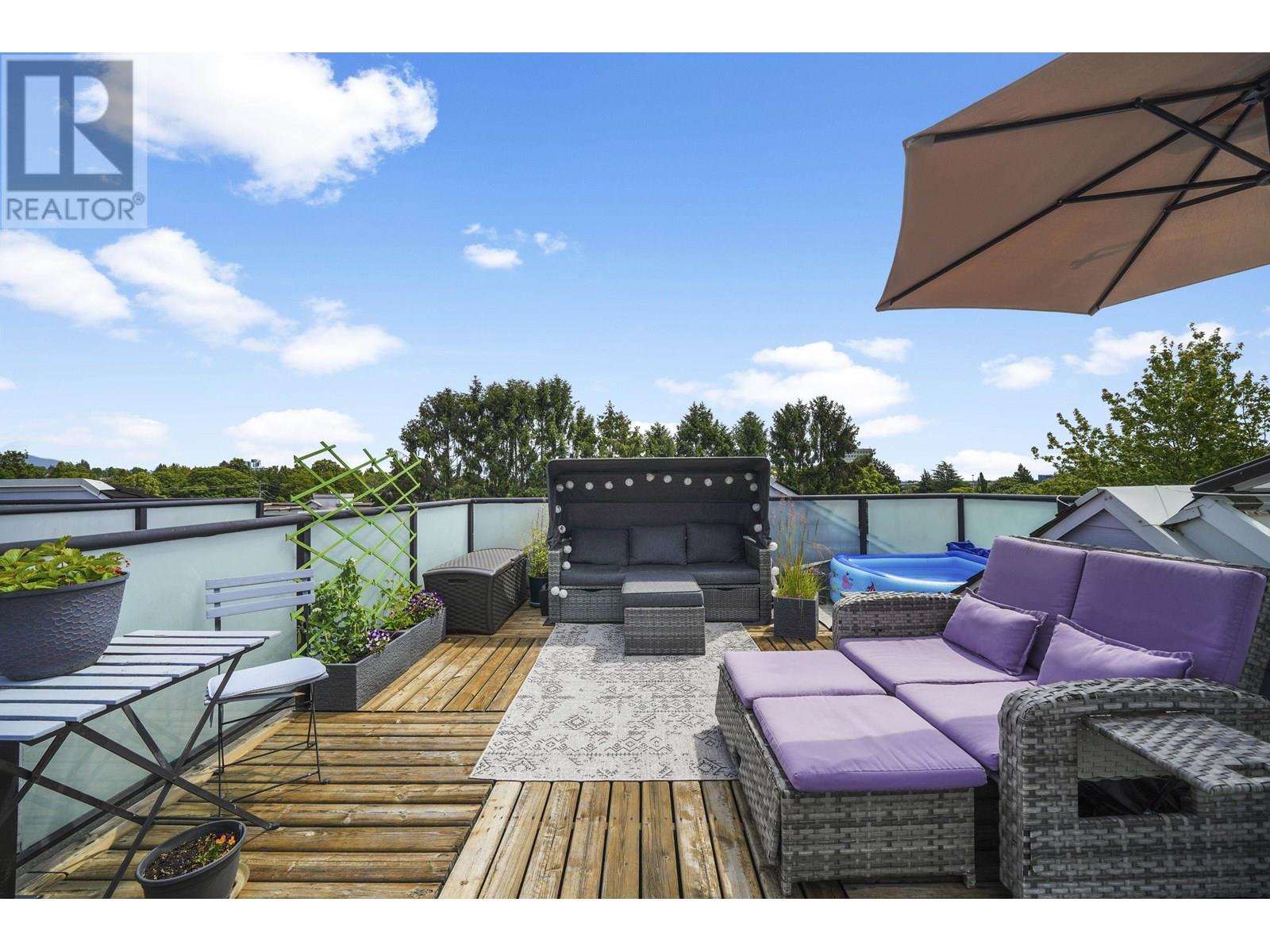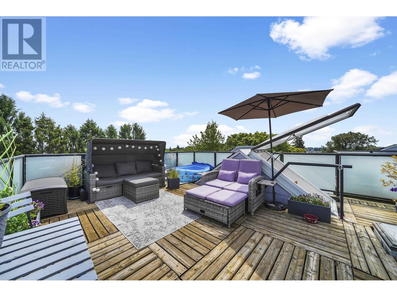 This top floor, 2-bedroom, 1-bathroom home is an urban oasis located near 70th & Granville. With nearly 900 Sq Ft, this open-plan layout is the perfect blend of comfort and style. Enjoy the ultimate city lifestyle with your very own 390 Sq Ft, sun-drenched, private rooftop patio, offering 360 degree views. Perfectly situated along a quiet, tree-lined street within walking distance to shops, groceries, cafes, restaurants and banks. Well run, pet friendly building that includes upgrades such as envelope/rainscreen, roof, parking membrane and exterior painting. Easy access to YVR and public transportation. Parking, storage, In-suite Laundry, Gas Fireplace and plenty of storage under the stairs all included. Open House Sat, July 5th, 2-4PM or book in your own private viewing! (id:48970) Show More