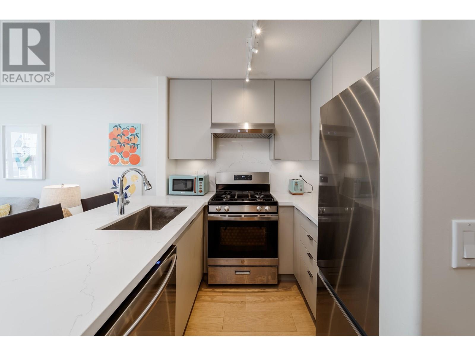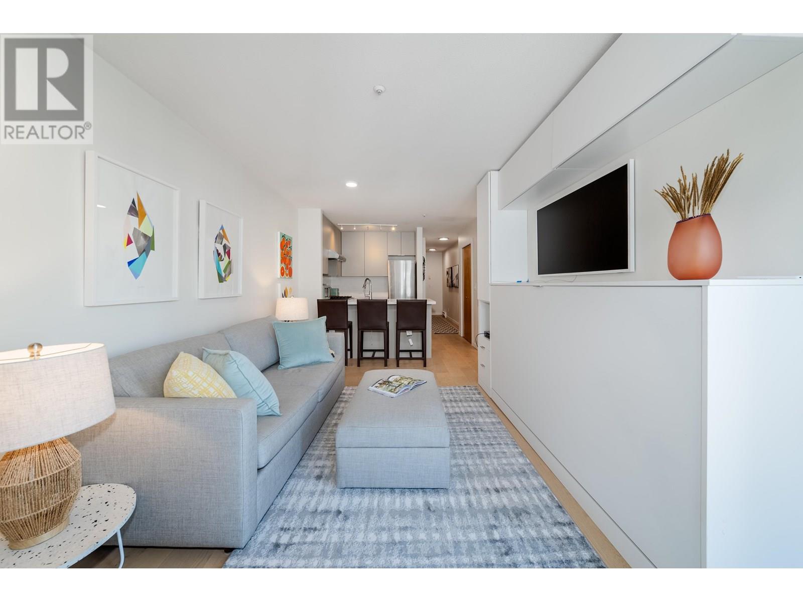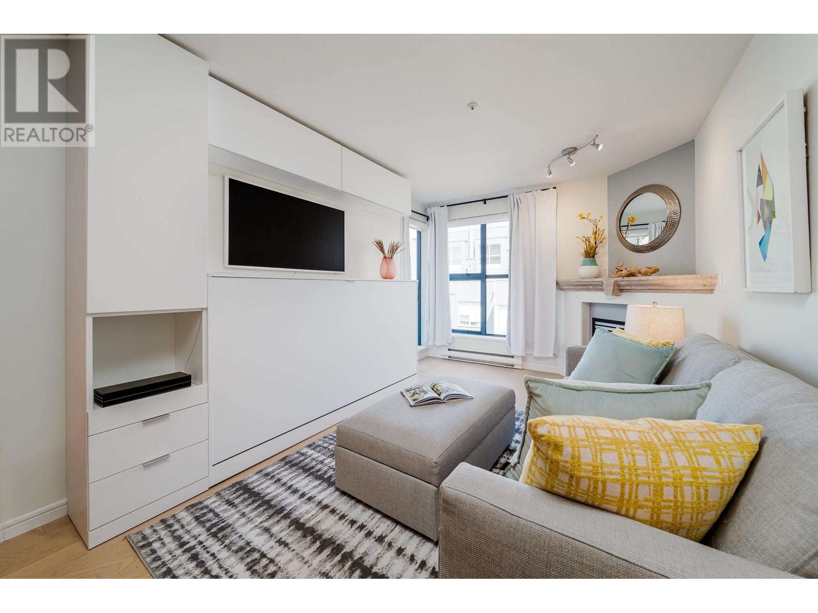 Top-floor 1 bed + den in sought-after Arbutus Walk, Kitsilano. Featuring a private balcony in this bright, quiet home with 9' ceilings, cozy gas fireplace & spacious layout. Kitchen boasts quartz countertops, gas stove, & stainless appliances. Custom wall bed, brand new bathroom renovation, and EV outlet in the parking spot add modern comfort and convenience. Ample storage, in-suite laundry & flex space make it ideal for work-from-home or lifestyle versatility. Located across from the Arbutus Greenway & steps to Kits Community Centre, cafes, shops, transit, & future SkyTrain. Includes 1 parking, bike locker, & access to gym/lounge. Rentals & pets allowed. A rare find in a prime location! Open House Sun Jul 13th 2:30-4pm. Sneak Peek Thurs Jul 10th 4:15-4:45pm (id:48970) Show More