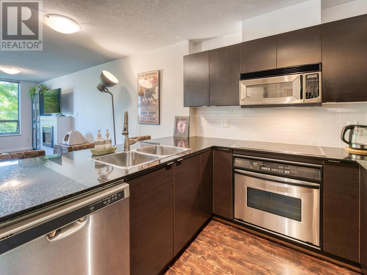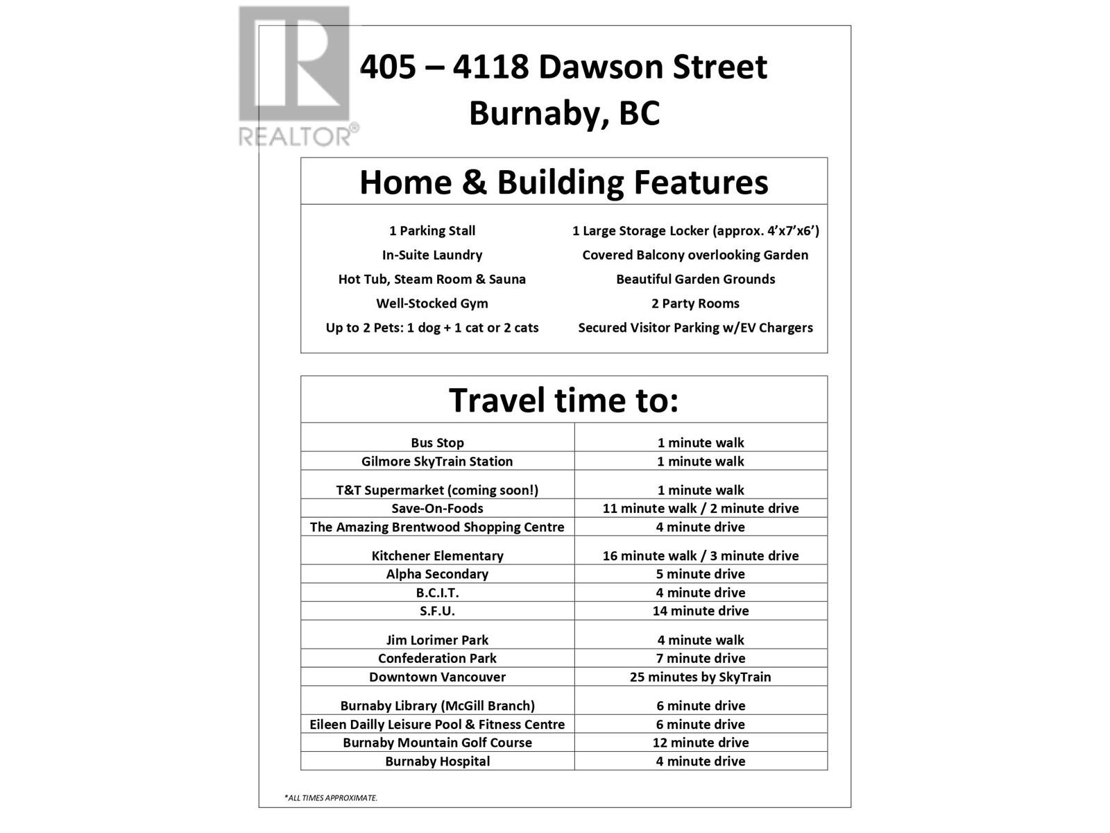 Welcome to your urban oasis! This is a centrally located 1-bedroom condo overlooking a beautiful terrace garden. And, the garden trees provide lots of privacy as a bonus! The condo features a spacious layout, laminate flooring, and a covered balcony. Gilmore Skytrain Station, shopping, and restaurants are just steps away. Building amenities include a well-stocked gym, hot tub, sauna, steam room, 2 party rooms & secured visitor parking with EV chargers. 1 parking stall & 1 storage locker included. Pets allowed, 1 dog & 1 cat or 2 cats. Quick possession possible! Video & 3D walkthrough in the VIRTUAL TOUR. ***SHOWINGS BY APPOINTMENT*** (id:48970) Show More