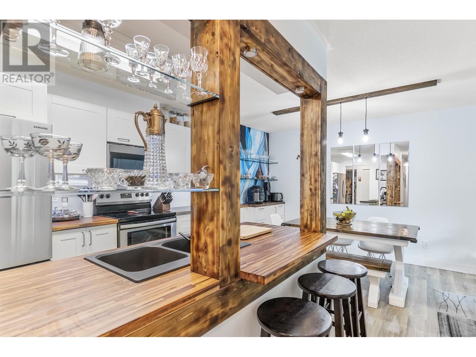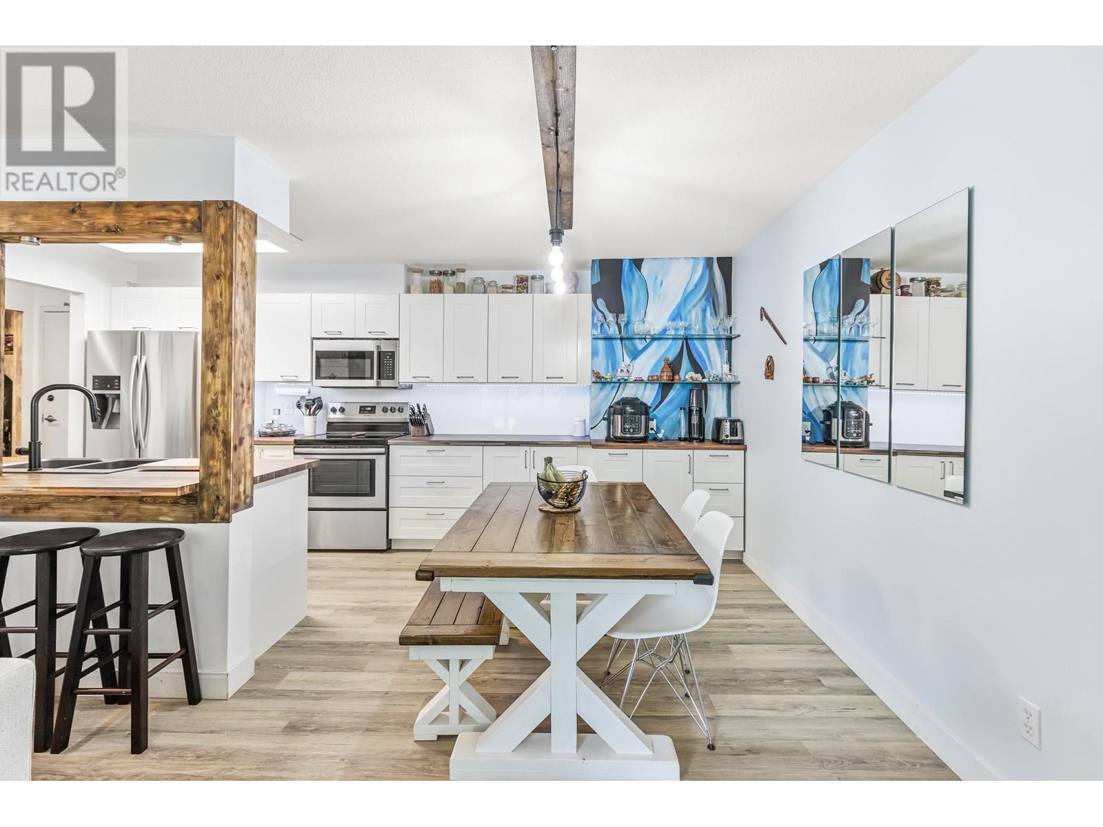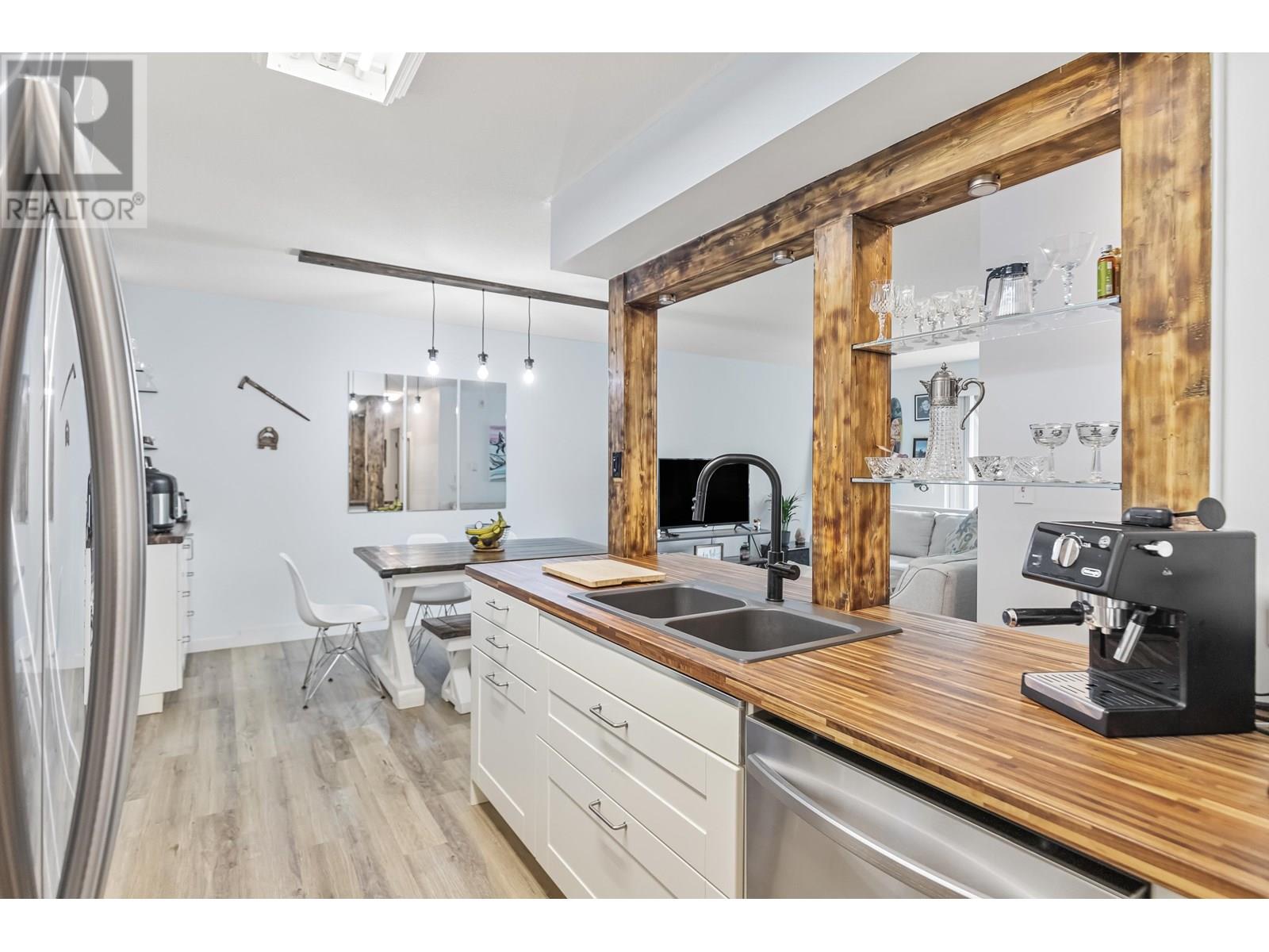 TOP FLOOR PENTHOUSE BEAUTY! This bright and creatively updated 2 bedroom, 1 bathroom home offering 982 square ft of open-concept living, plus a spacious 147 square ft patio with peaceful views overlooking a serene, mature treed greenspace. You´ll love the privacy! Featuring updated vinyl plank flooring, a charming rustic kitchen with open shelving, and a thoughtfully redesigned bathroom that ties beautifully into the home´s artistic vibe. A custom mural in the kitchen adds personality and flair. Generously sized bedrooms, excellent in-suite storage, and TWO side-by-side parking stalls complete the package. Just steps to Coquitlam Centre and the SkyTrain. Blocks to Douglas College and Lafarge lake. A FANTASTIC opportunity in an unbeatable location. Come take a look TODAY! O/H July 6, 2-4PM (id:48970) Show More