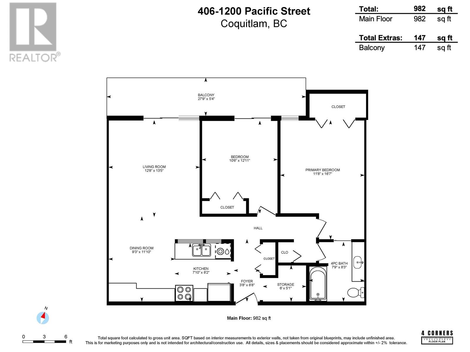 - Area 982 sq ft