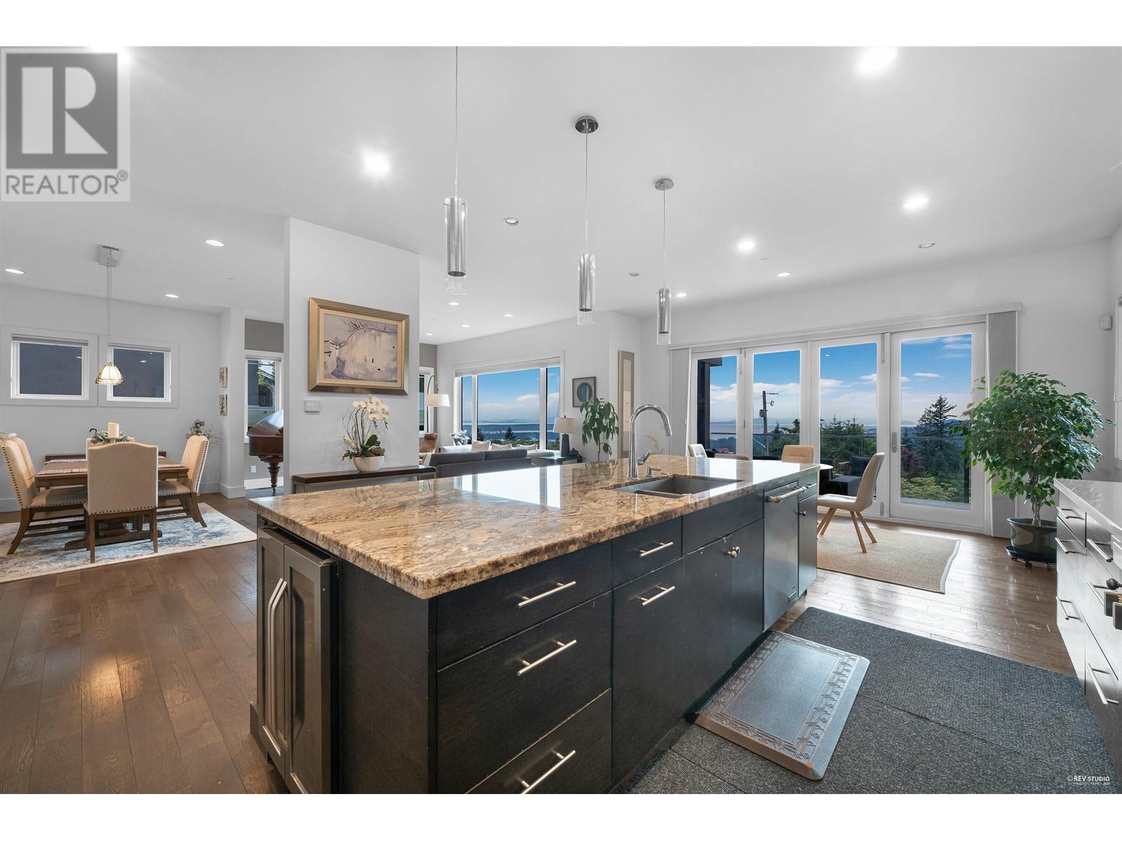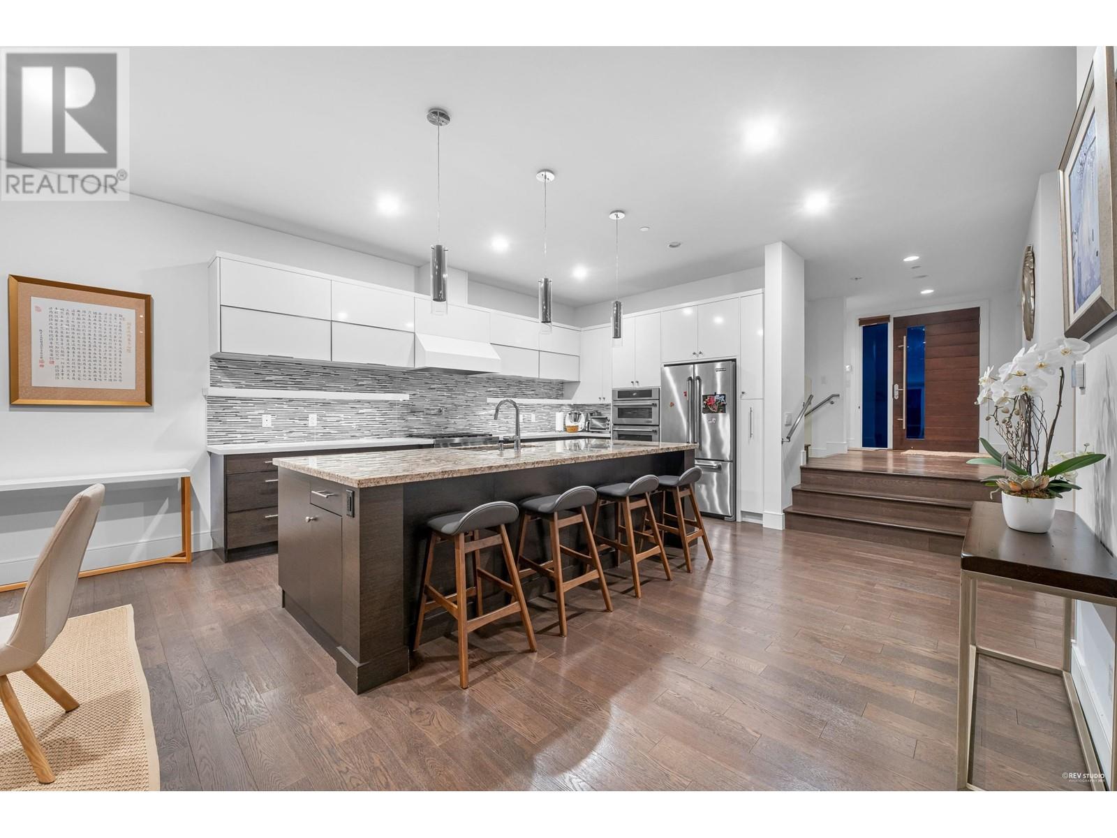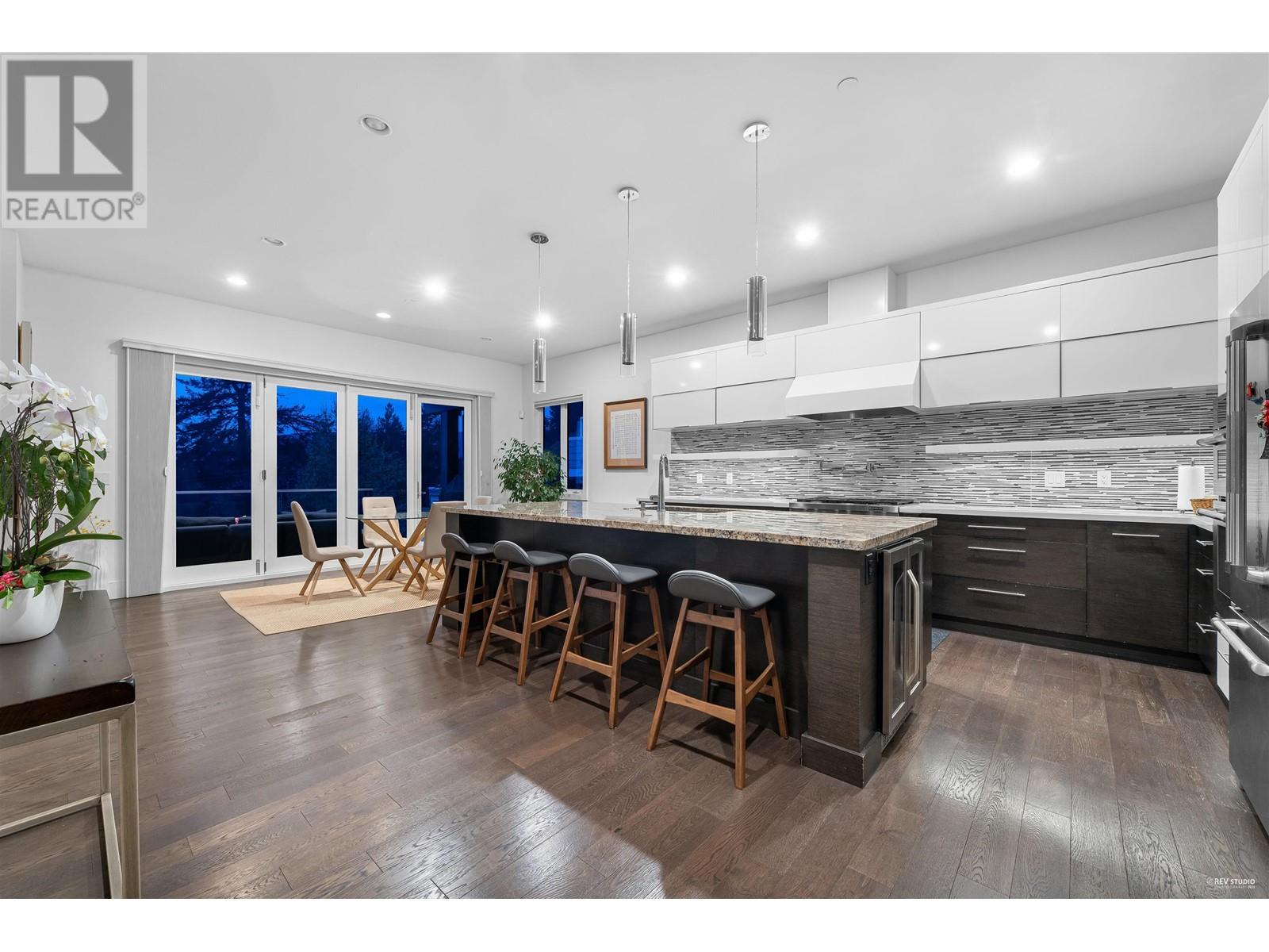 VIEW, LOCATION & QUALITY! Built in 2014, this stunning contemporary home showcases breathtaking southwest views of the ocean, Downtown Vancouver, Point Grey & Vancouver Island. The main floor features a spacious open-concept layout with 10ft ceilings, a designer kitchen with high-end appliances, & Eclipse doors that open to a large sun-drenched deck with built-in BBQ-part of over 900 sqft of deck & balcony space, ideal for seamless indoor-outdoor living & entertaining. Upstairs offers 3 generous bedrooms, each with its own ensuite & beautifully appointed finishes. The lower level includes a media room, 4th bedroom, full bathroom, & laundry, plus a self-contained 1-bedroom suite with full kitchen-perfect for in-laws, guests, or added income. Located in a quiet, family-friendly neighborhood close to top schools, parks, & amenities. (id:48970) Show More