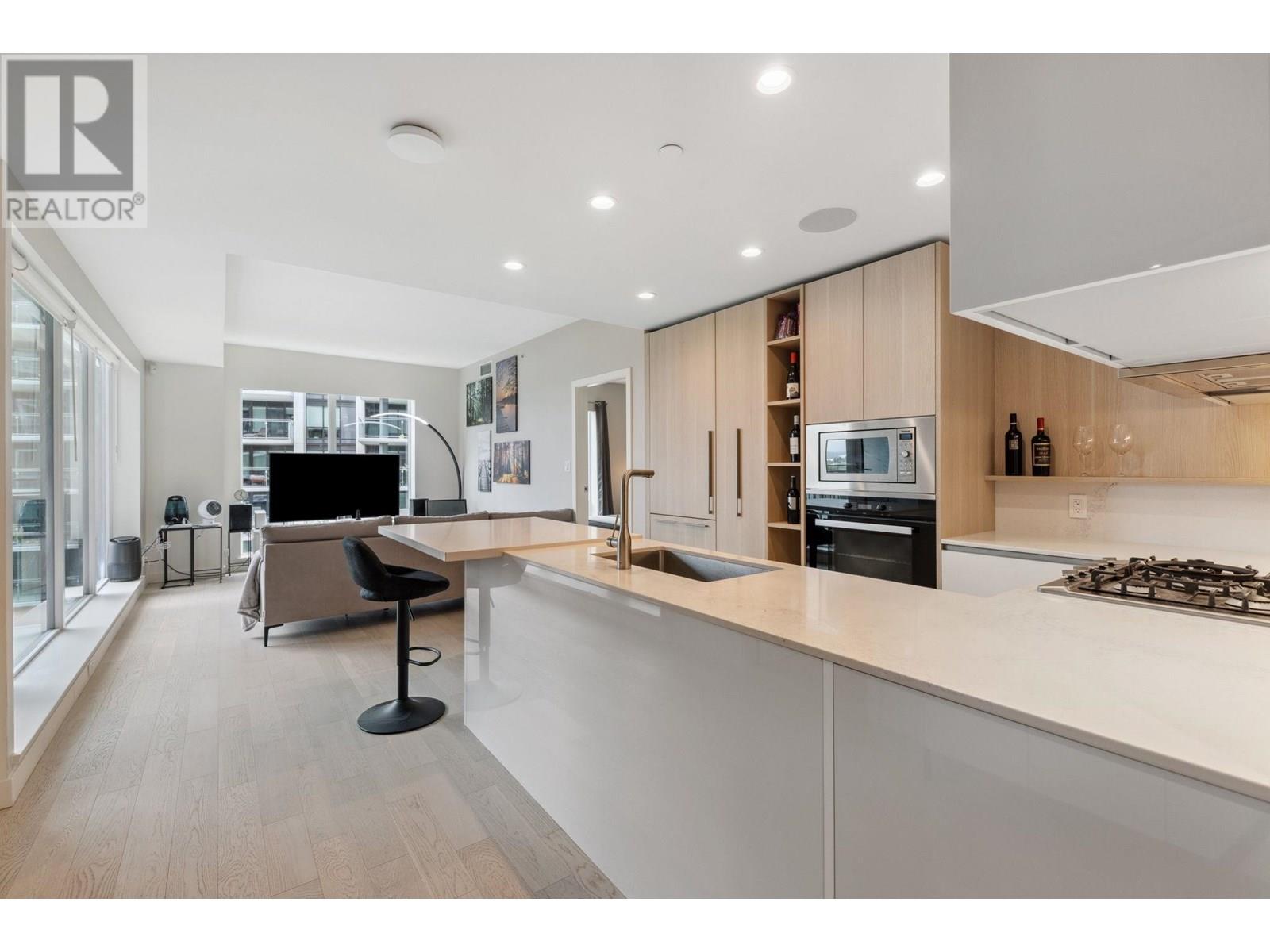 Welcome to Hollybridge at River Green by ASPAC. This stunning 2 bed + den home features a highly functional layout with luxurious finishes throughout. Enjoy panoramic views of the water, mountains, and gardens from your oversized balcony. Thoughtfully designed with 9' ceilings, floor-to-ceiling windows, smart home integration, and an Italian kitchen with Miele appliances. Bonus: custom headboard in the primary bedroom and built-in cabinets in the den for added storage. Amenities include 24-hr concierge, indoor pool, sauna/steam, gym, basketball court, karaoke room, co-working space & more. Steps to the Oval, dining & shops. OPEN HOUSE: Jul 5th & 6th, 2-4PM (id:48970) Show More