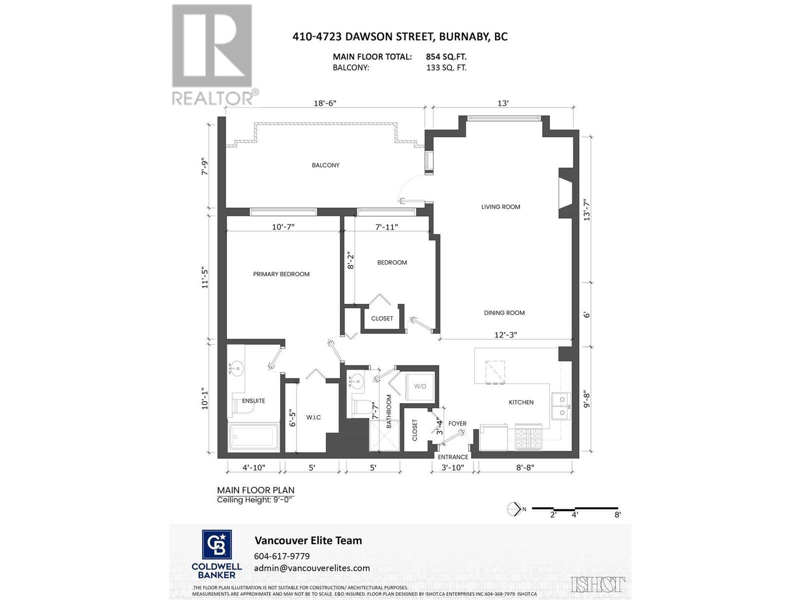 - Area 854 sq ft