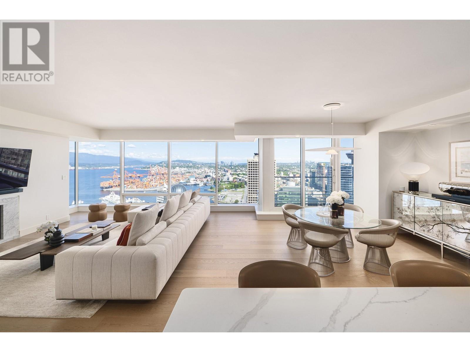 Rarely available, exquisite 02 home in the prestigious Fairmont Pacific Rim. Unobstructed, stunning views of ocean, harbour & northshore mountain from the 5th highest 02 plan. A remarkably expansive, light-filled living room that welcomes the morning sun and flows seamlessly into breathtaking panoramic views. Boasting luxury upgrades in 2020: solid hardwood floor, motorized blinds & blackout shades, marble countertop, the entire laundry room (Miele washer & dryer, countertop, cabinets, sink, faucet), Nest thermostats, all lighting fixtures, water filter, painting; dishwasher & hood fan upgraded in 2024. Boffi Italian kitchen, Miele & Sub-Zero appliances, spa ensuites. Meticulously maintained. Ready to move in. 2 parking. Open House: Sat & Sun, June 28 & 29: 2-4 (id:48970) Show More
