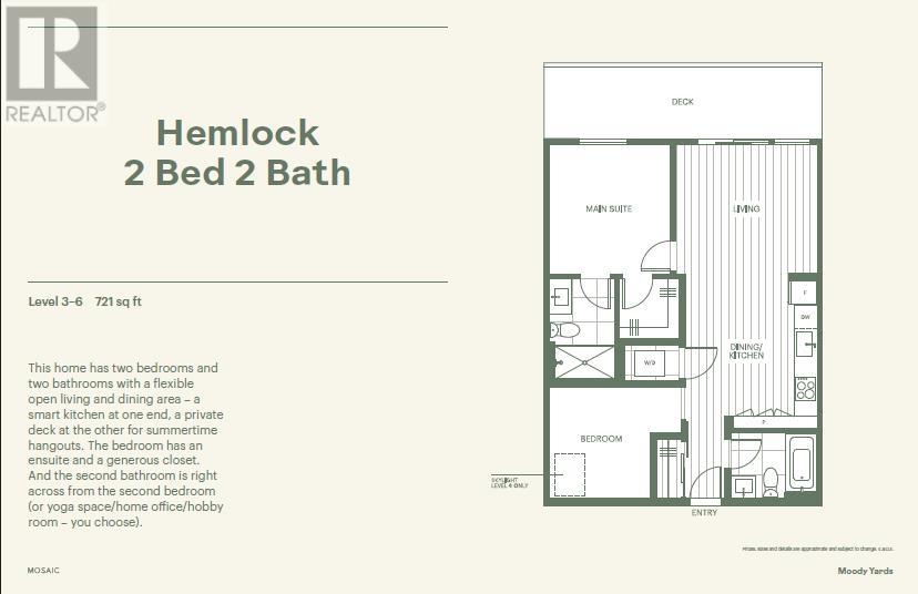 MOODY YARDS by Mosaic! ASSIGNMENT SALE with Completion Scheduled for Feb 2026. Smart 721 sq' 2 bedroom / 2 bathroom layout with 9' ceilings and oversized 7' tall windows. Spacious 138 sq' balcony with north facing views of Inlet Park & Rocky Point Park and Shoreline Trails across the street. Central location with transit, SKYTRAIN, Brewers Row, shopping and schools all within walking distance make living in PORT MOODY your place to call home. (id:48970) Show More
