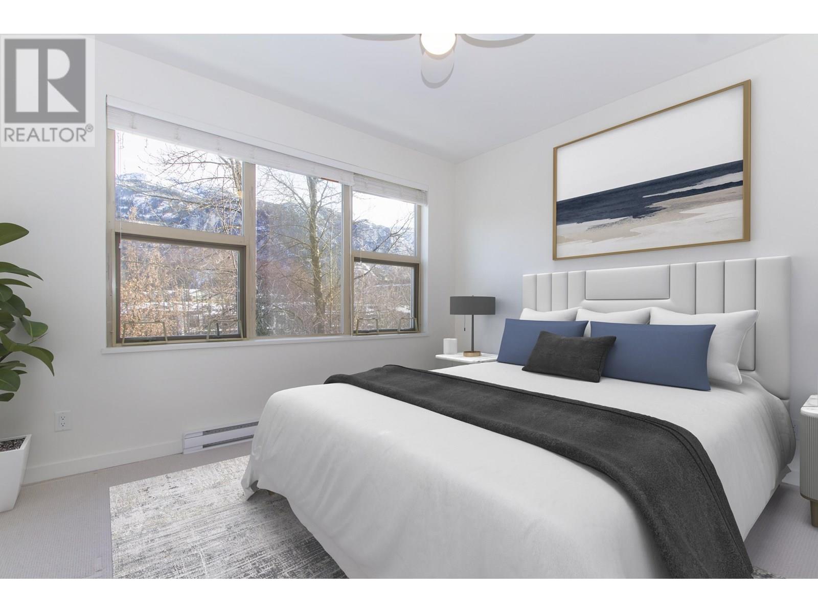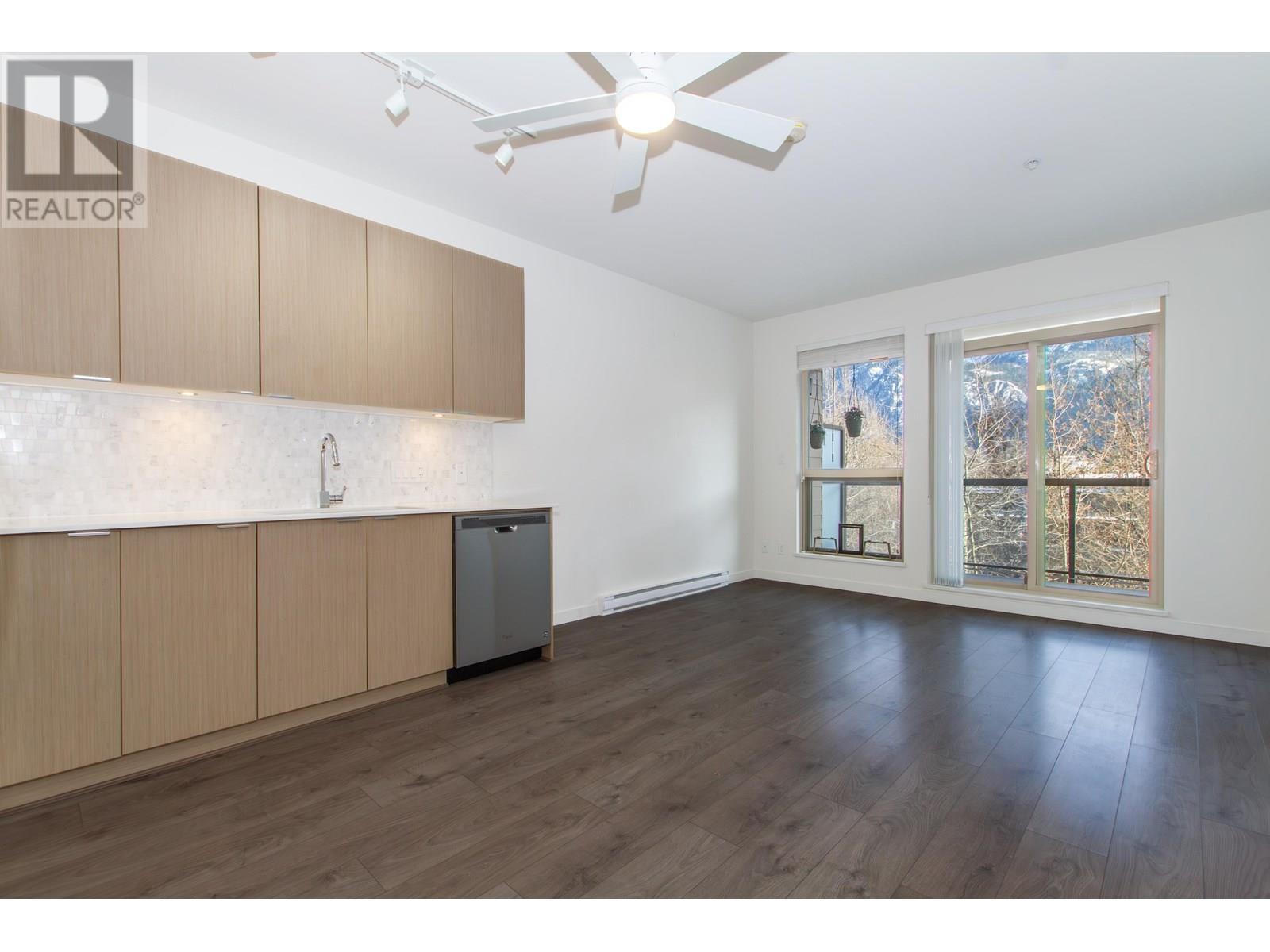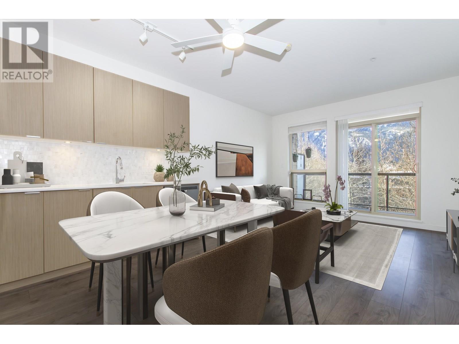 Breathtaking Views & Modern Comforts in the Heart of Squamish Enjoy stunning, unobstructed views of the surrounding mountains from this beautifully maintained 4th-floor Parkhouse unit. This 2-bedroom + den home features a modern, earthy 'Cheekeye' color scheme, quartz countertops, stainless steel appliances, soaker tub with rainhead, and front-loading laundry. Large windows fill the space with natural light and mountain views. Includes secure underground parking and storage locker. The building offers a shared patio with BBQ & gazebo, plus a games/amenity room with 84" TV-perfect for entertaining or working remotely. Steps from trails, shops, and all Squamish has to offer! (id:48970) Show More