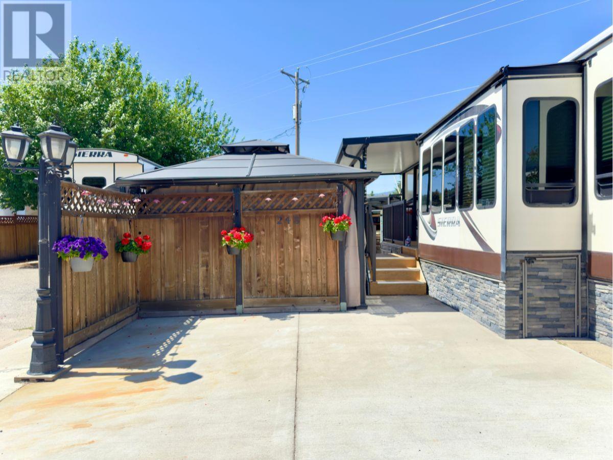 Enjoy low-maintenance living in the heart of the Okanagan! This park model designated site backs onto serene green space — offering the beauty of nature without the upkeep. Just minutes away, the Activity Centre includes an outdoor pool, hot tub, coin laundry, and the charming Blue Schooner Café. Perfect for entertaining, the site features a fully equipped outdoor kitchen, gazebo, and plenty of parking for two vehicles and a golf cart. A short stroll brings you to the Recreation Centre, where you'll find an indoor pool, hot tub, gym, hair salon, and a vibrant calendar of social events. Additional amenities include multiple pools and hot tubs, a pickleball court, woodworking shop, craft room, library, card games, and a fully fenced off-leash dog park. Short-term rentals are allowed, and there’s no Property Transfer Tax. The annual maintenance fee is due each January, and the lease extends to 2046 with leasehold interest registered federally. The included 2017 42' Sierra Park Model offers comfortable, year-round living with the Arctic Package and insulated skirting. Inside, enjoy a full kitchen with fridge, stove, and microwave, along with a fireplace, central vac, A/C, skylights, washer/dryer, water softener/filtration system, and window coverings. The gazebo, shed, and outdoor kitchen are all part of the package. Located just a short drive from Kelowna International Airport, UBCO, wineries, golf courses, ski hills, shopping, and entertainment! (id:48970) Show More